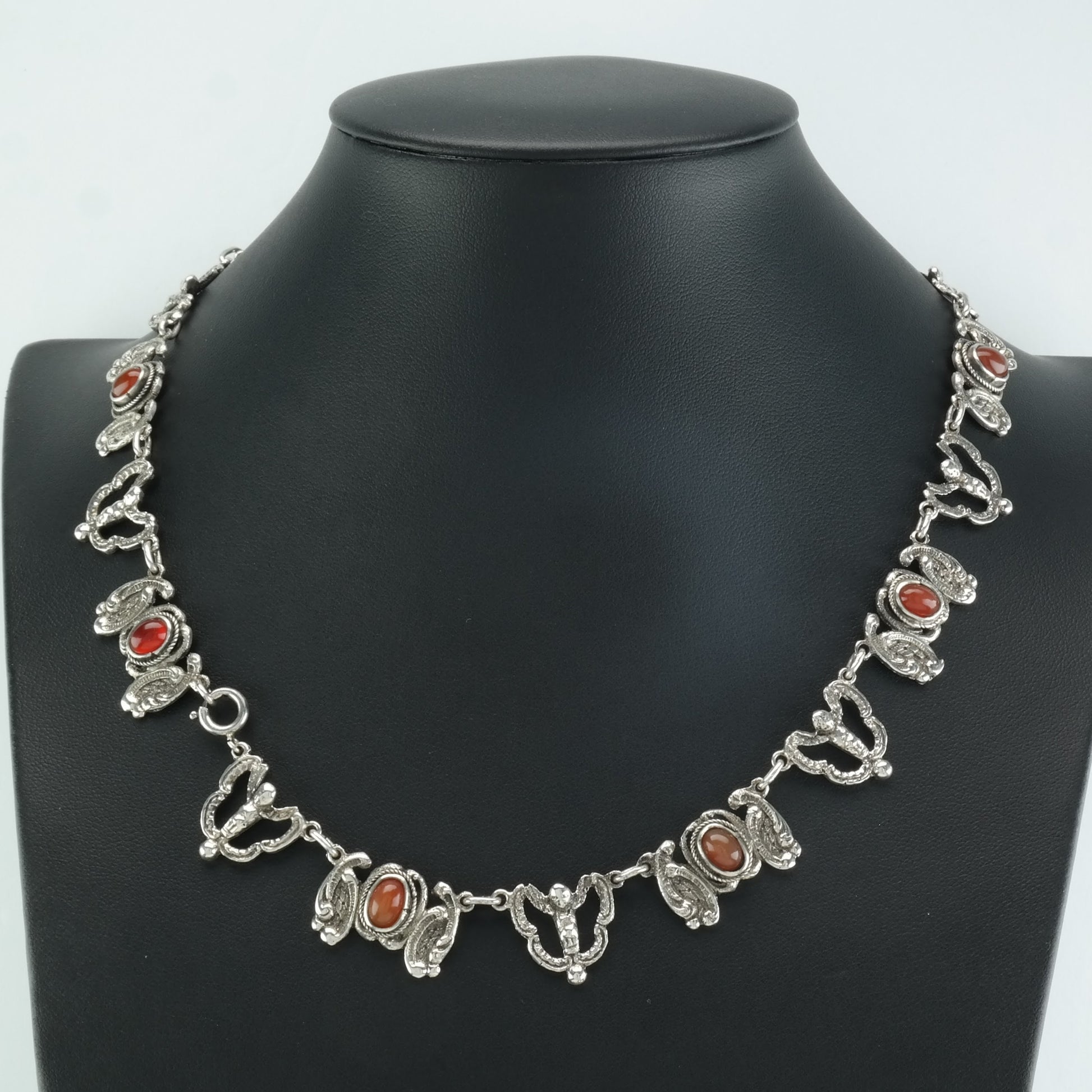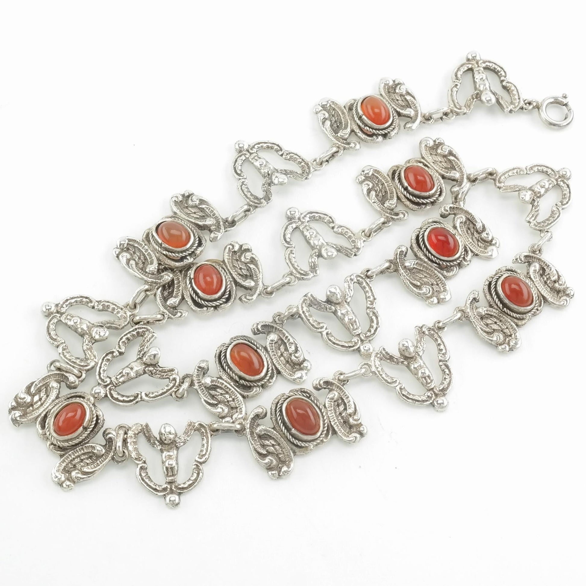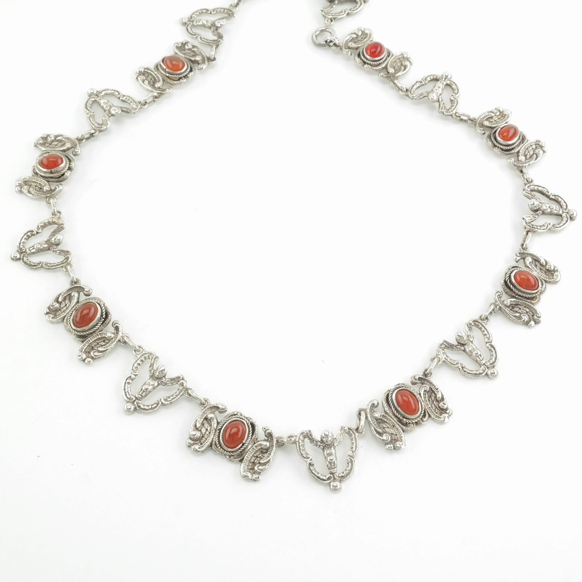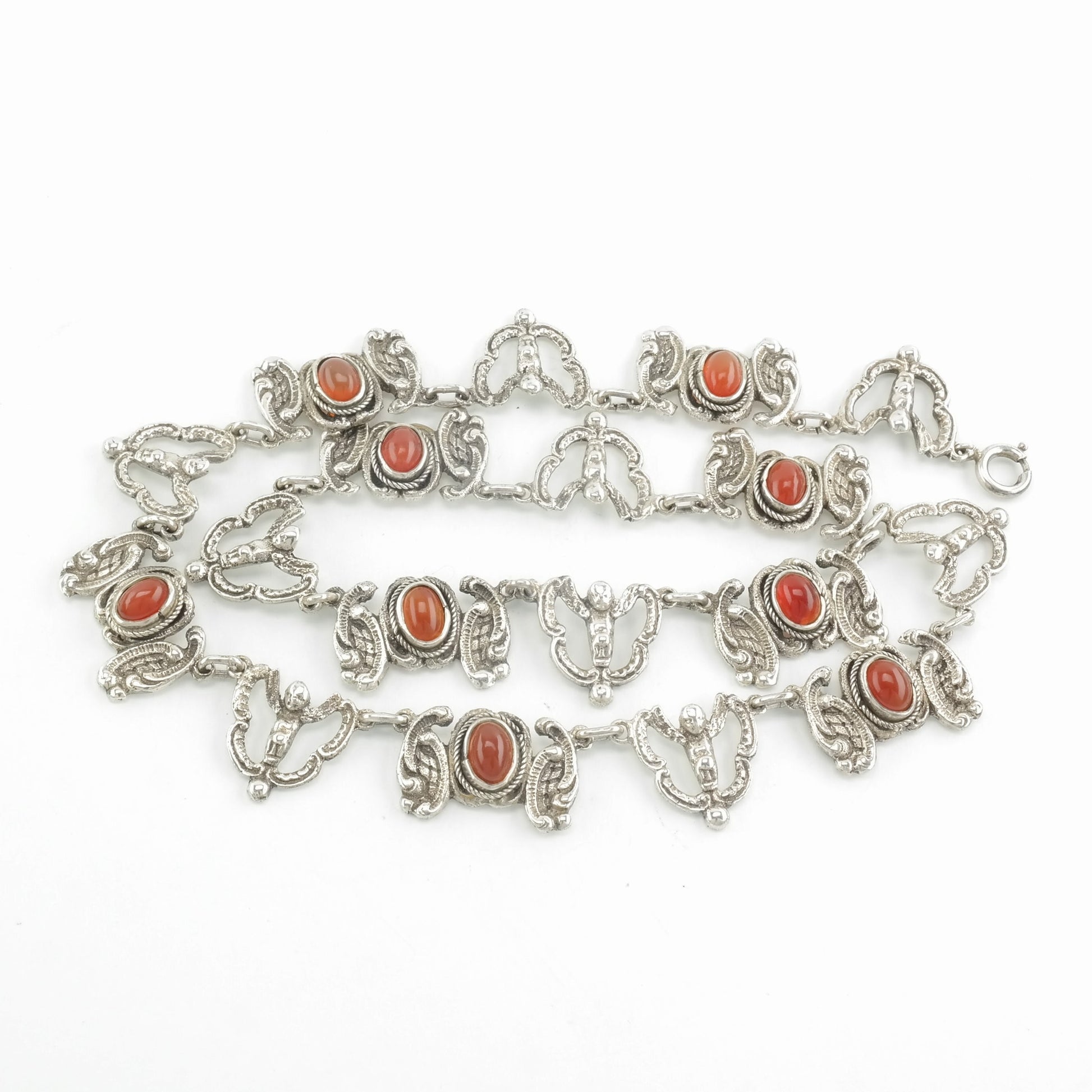 Vintage Peruzzi Sterling Silver Orange/Red Carnelian Angel Necklace