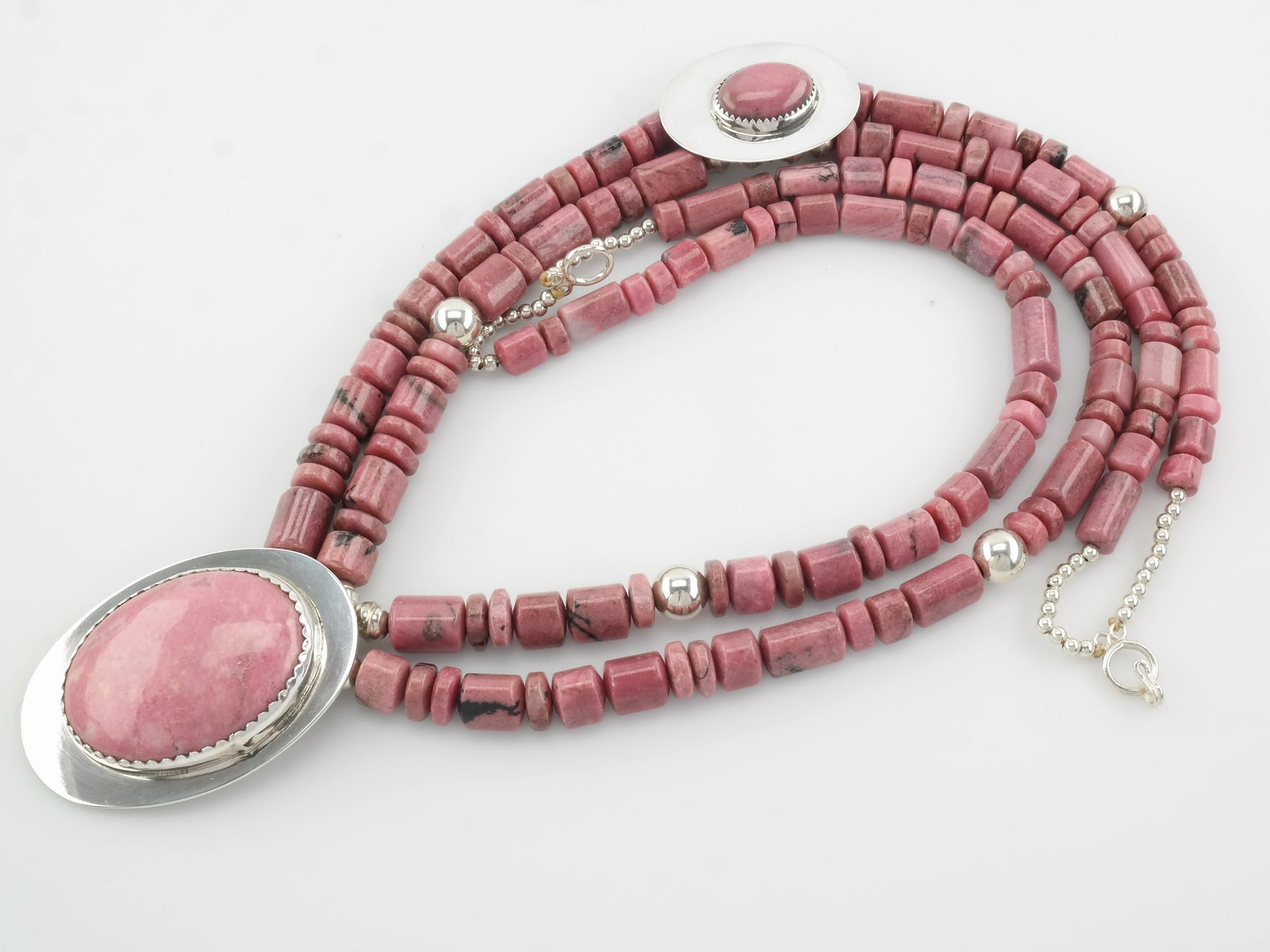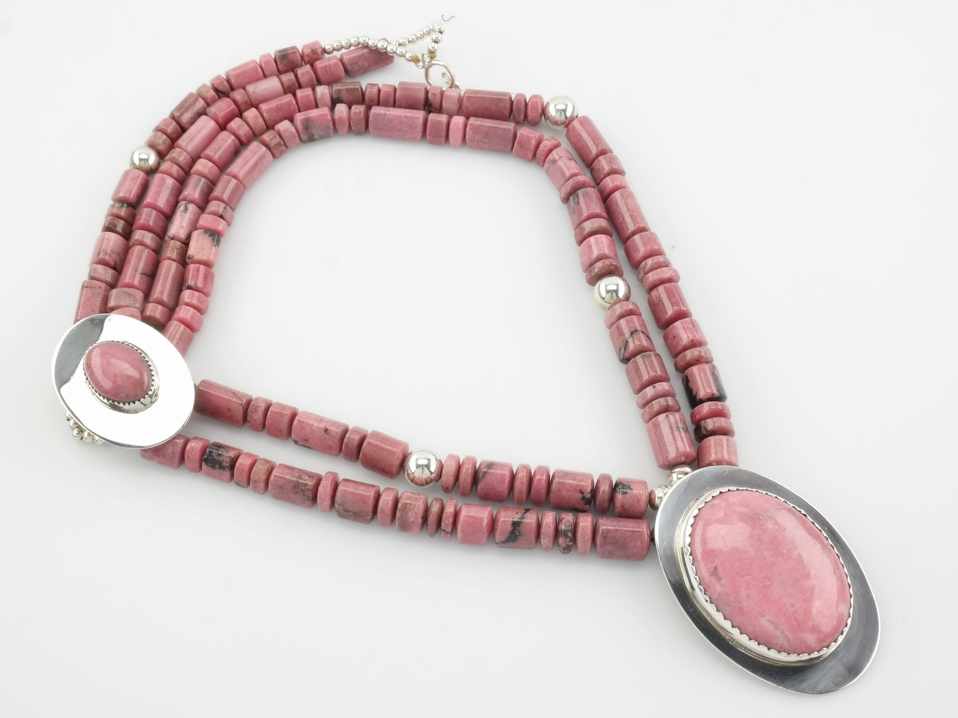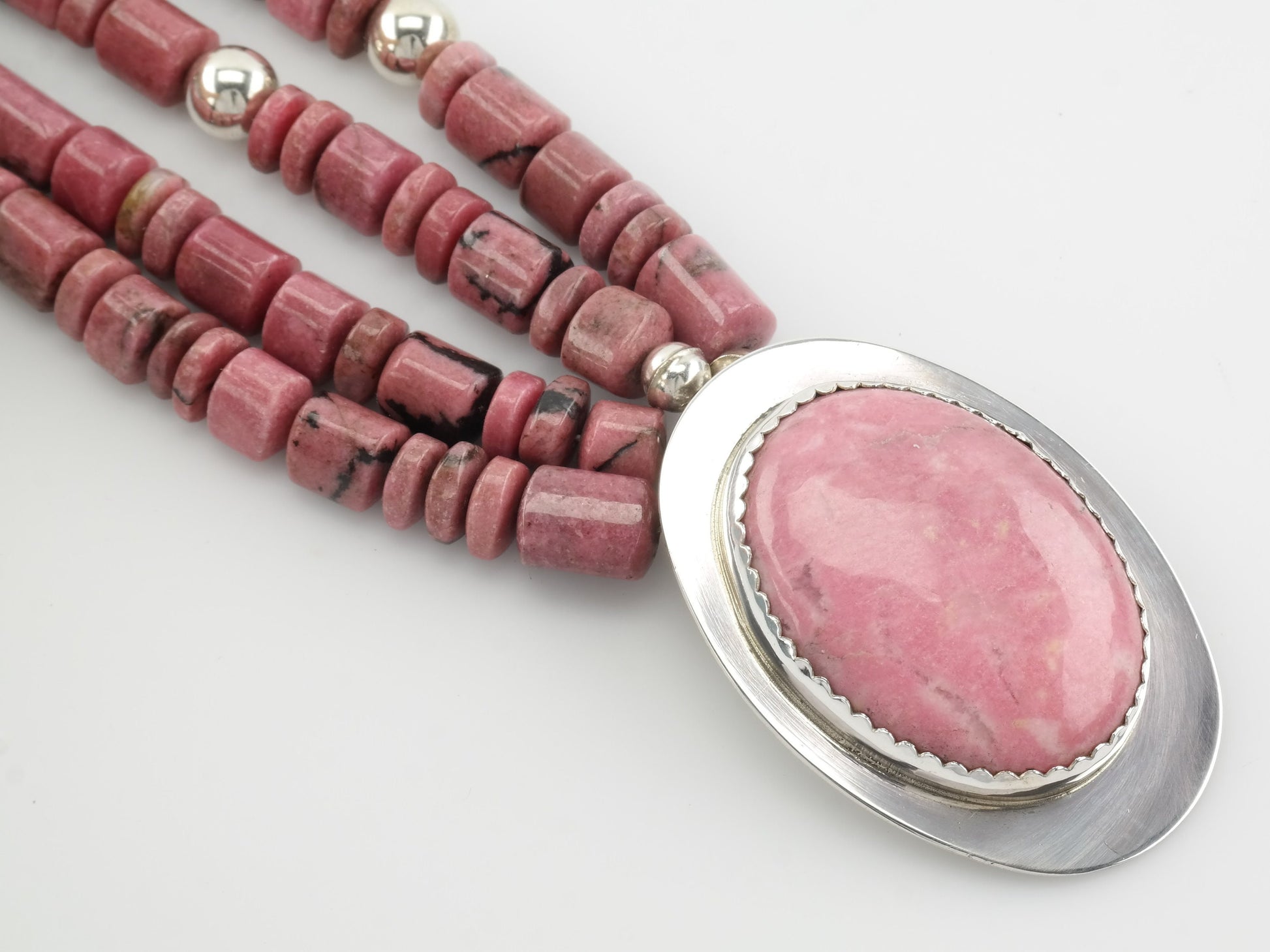 Pink Rhodonite Necklace | Sterling Silver & Rhodonite Bead Necklace | Southwestern Jewelry | Statement Necklace