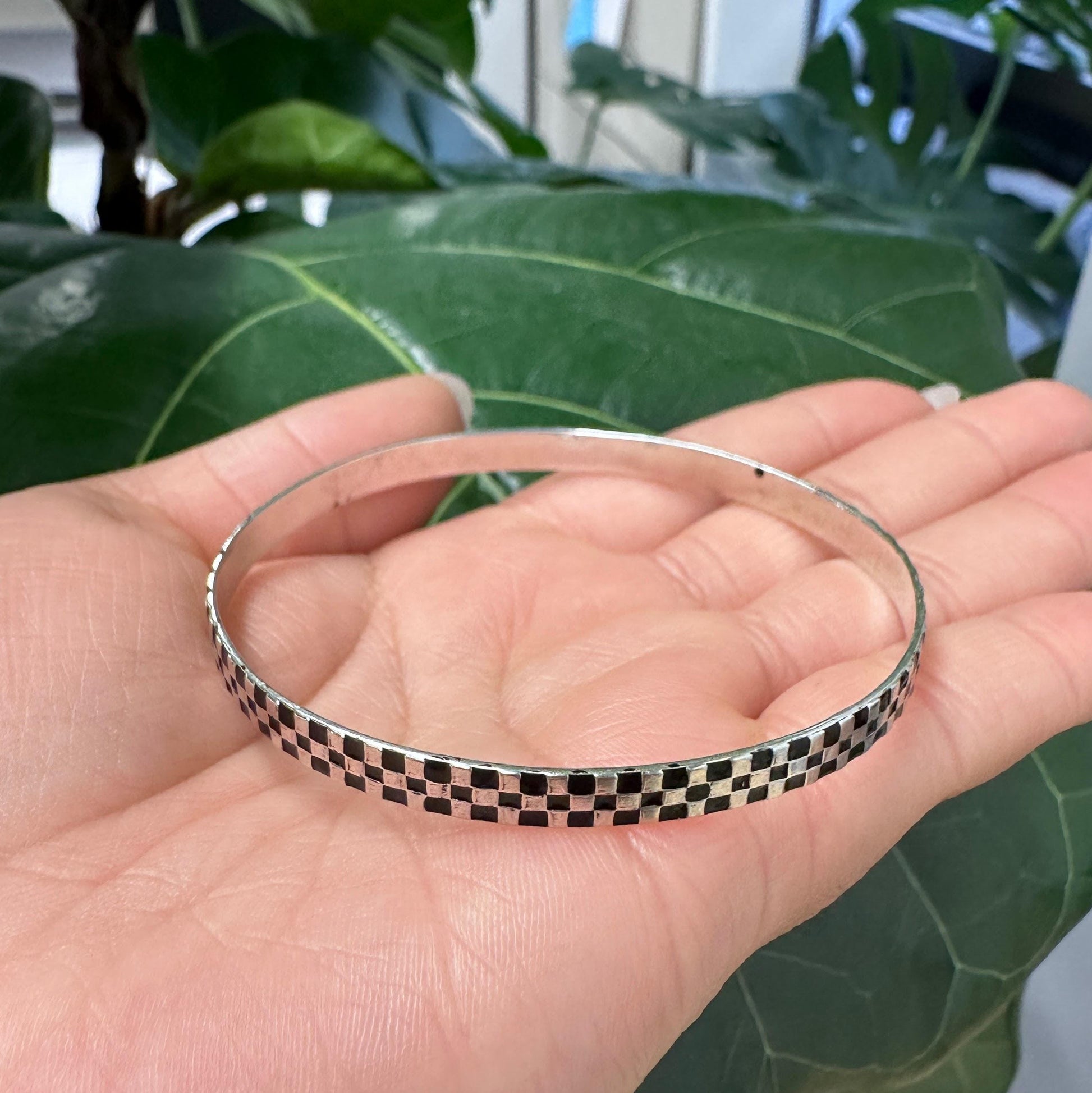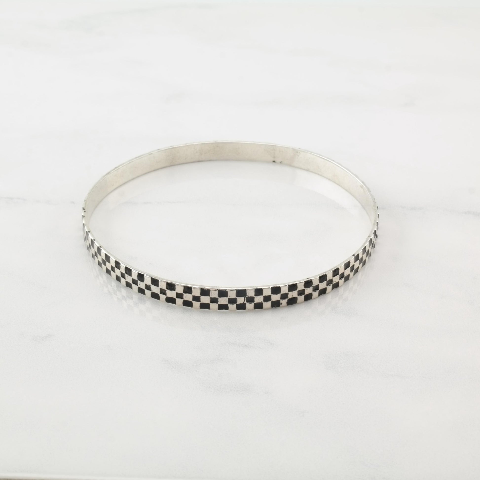 Poland 5mm Black Enamel, Sterling Silver Bangle Bracelet
