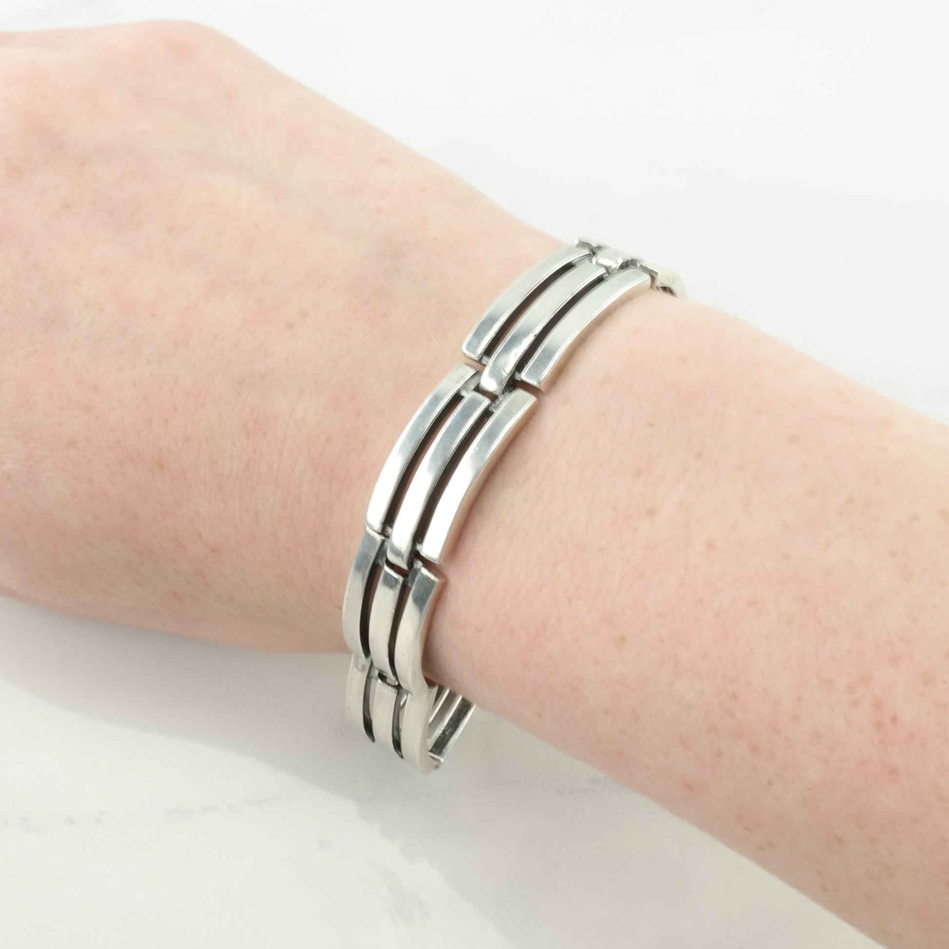 Poland Sterling Silver Link Bracelet Rectangular Links