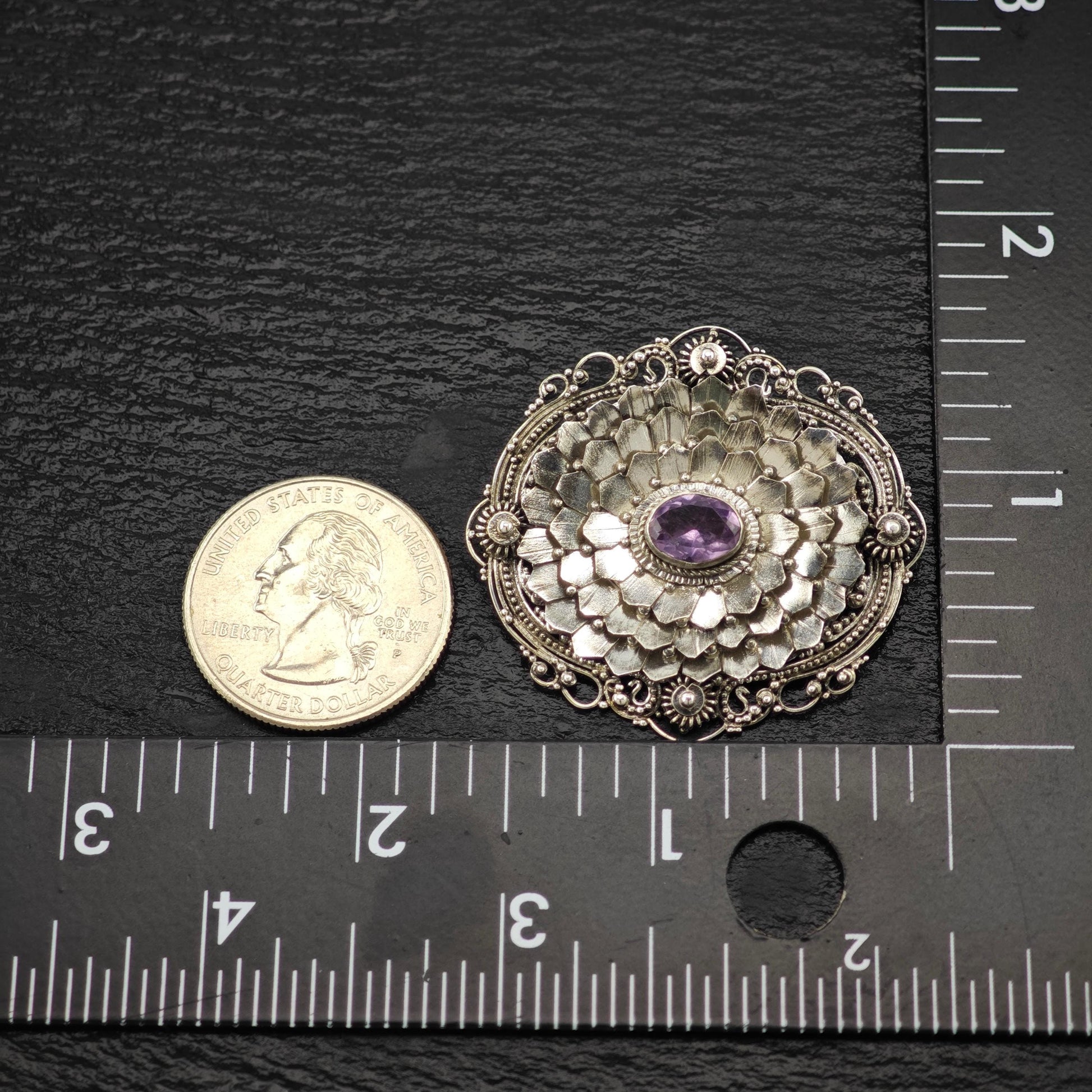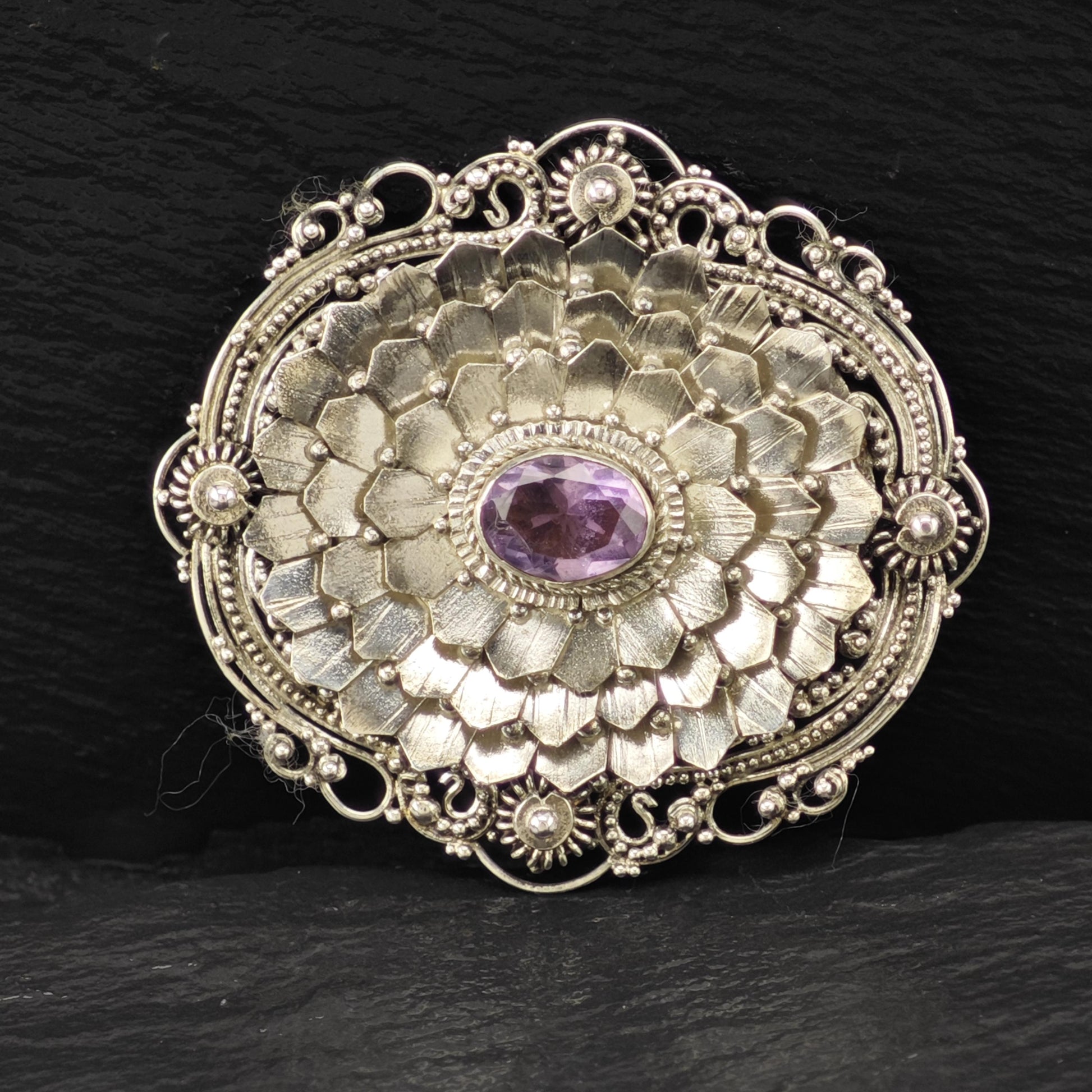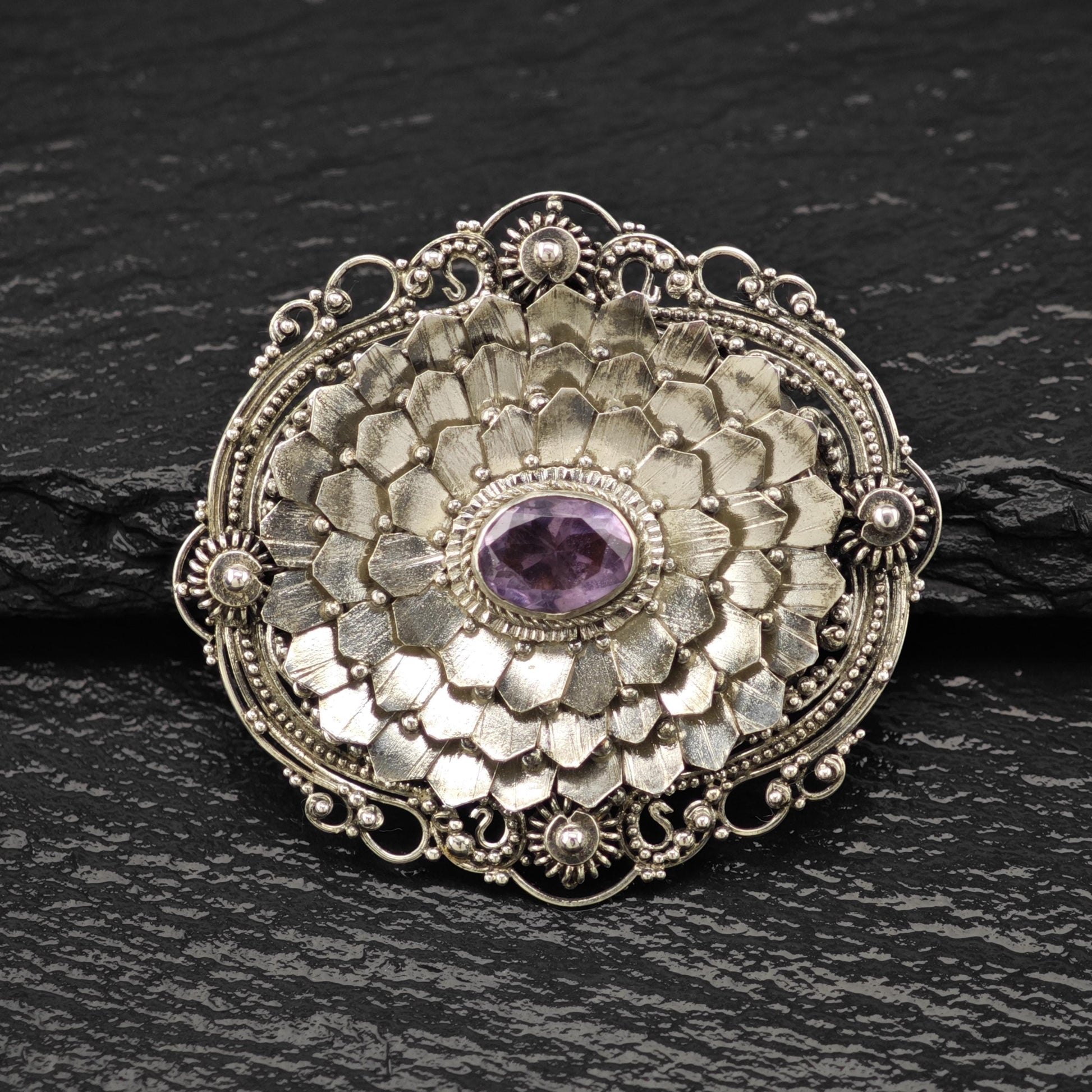 Purple Amethyst Brooch Floral Sterling Silver