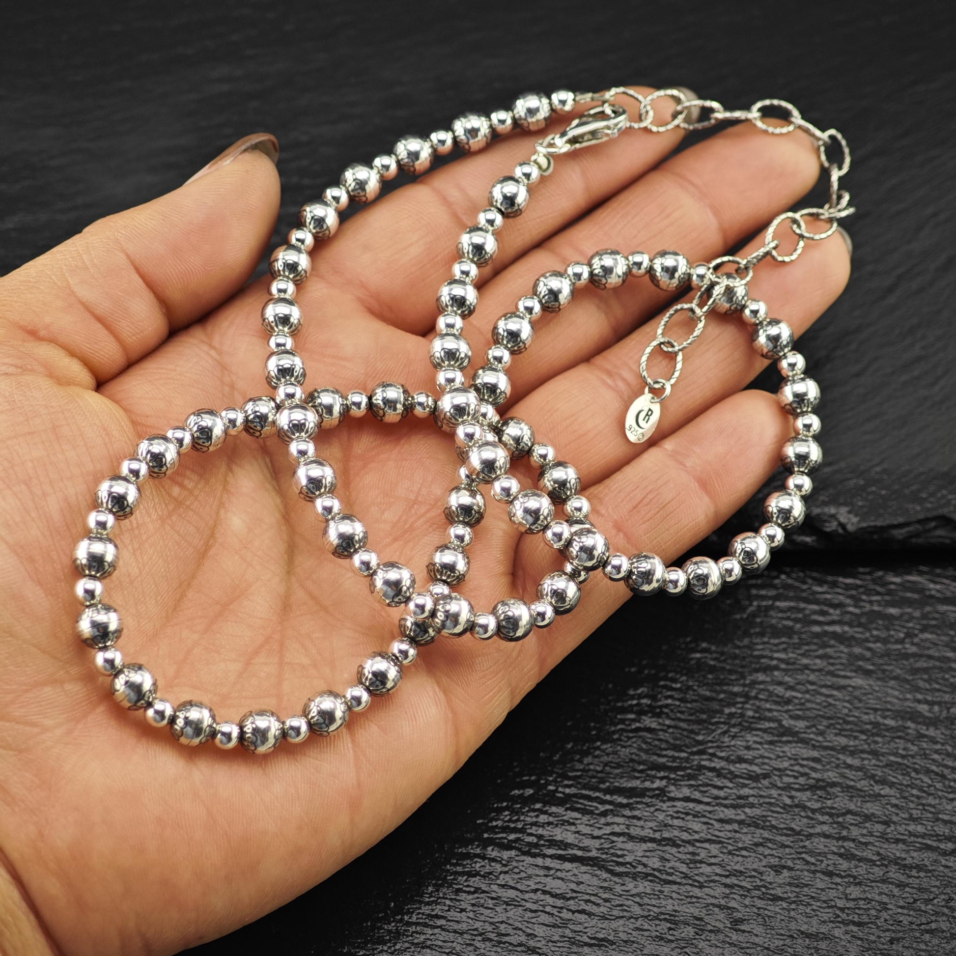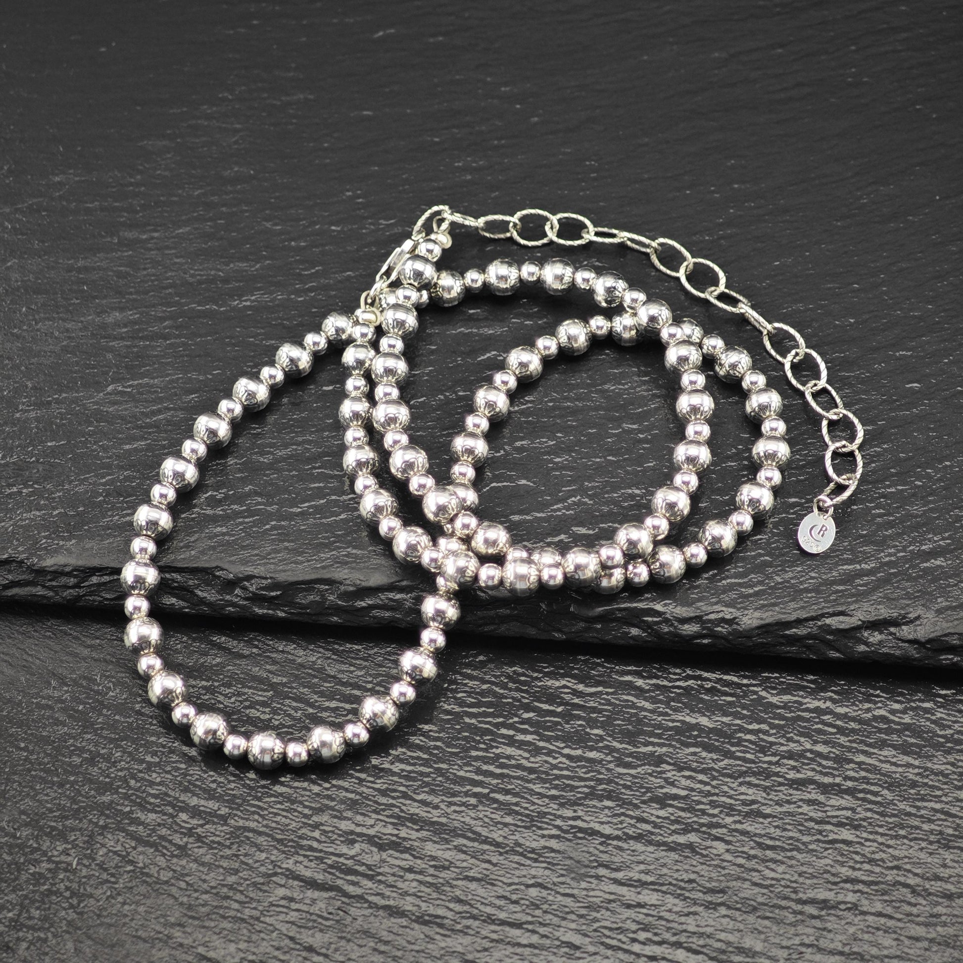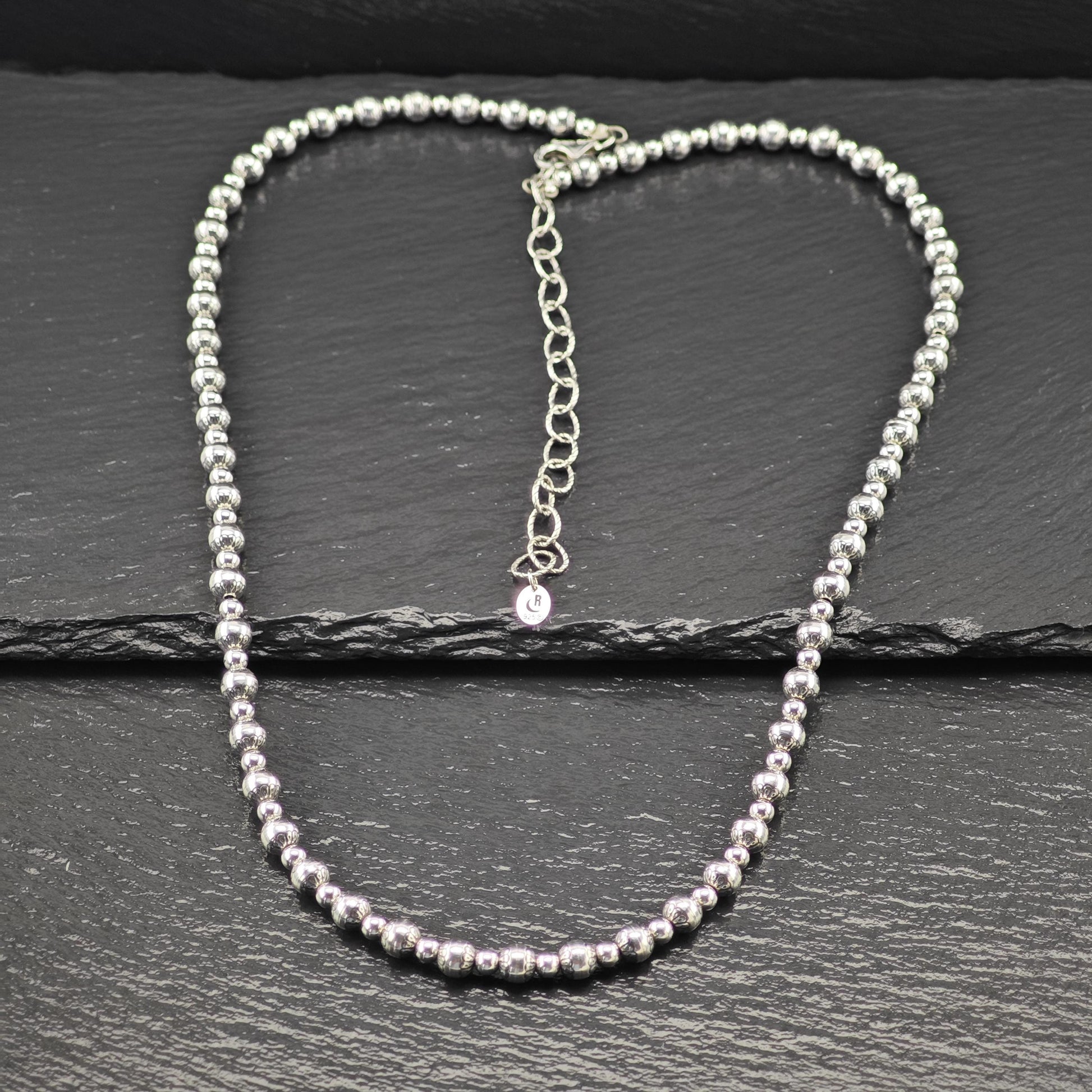 Please note: color variations in photos are due to reflections; the actual necklace displays an even, beautiful silver tone.