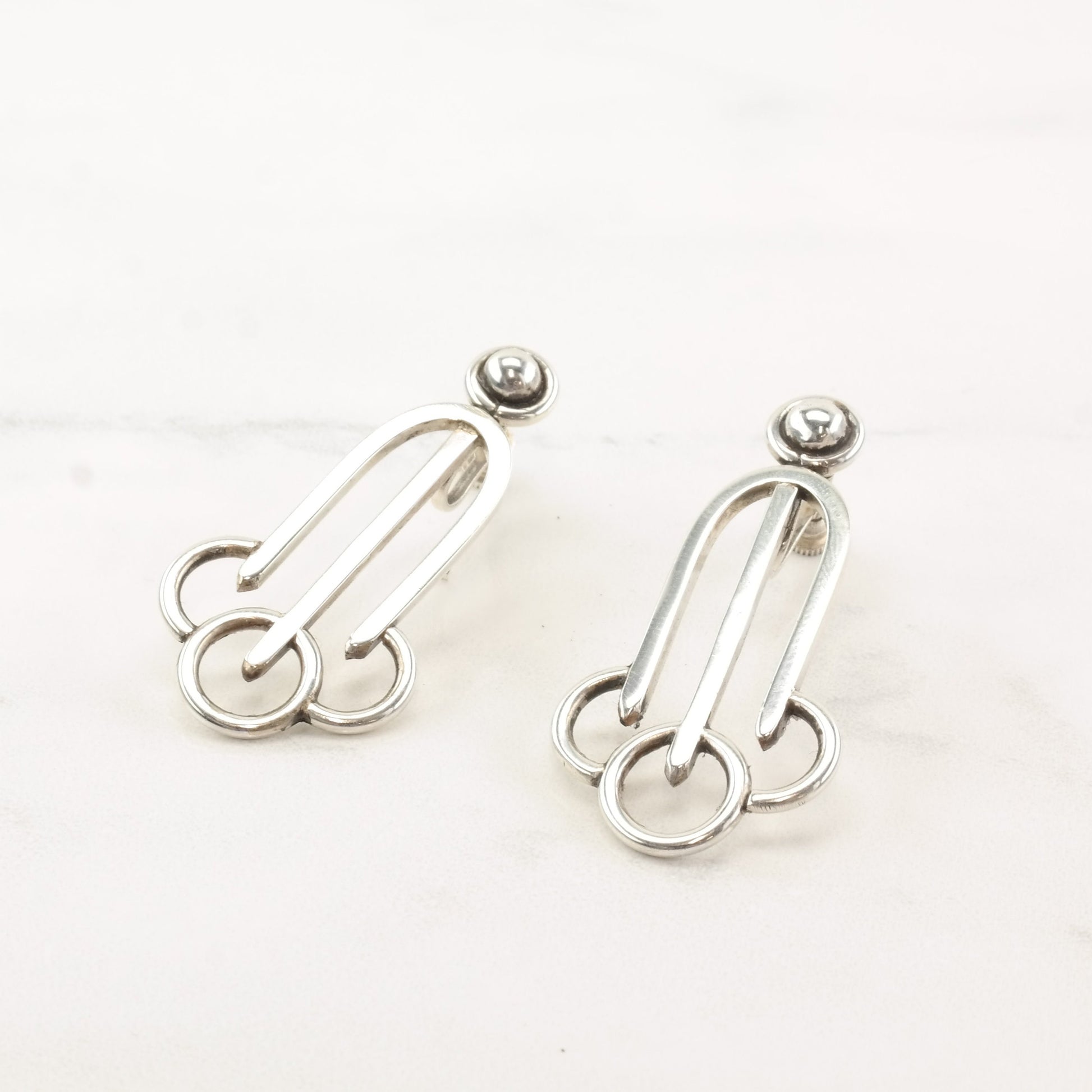 RWW Sterling Silver Abstract Modernist Earrings Screw back
