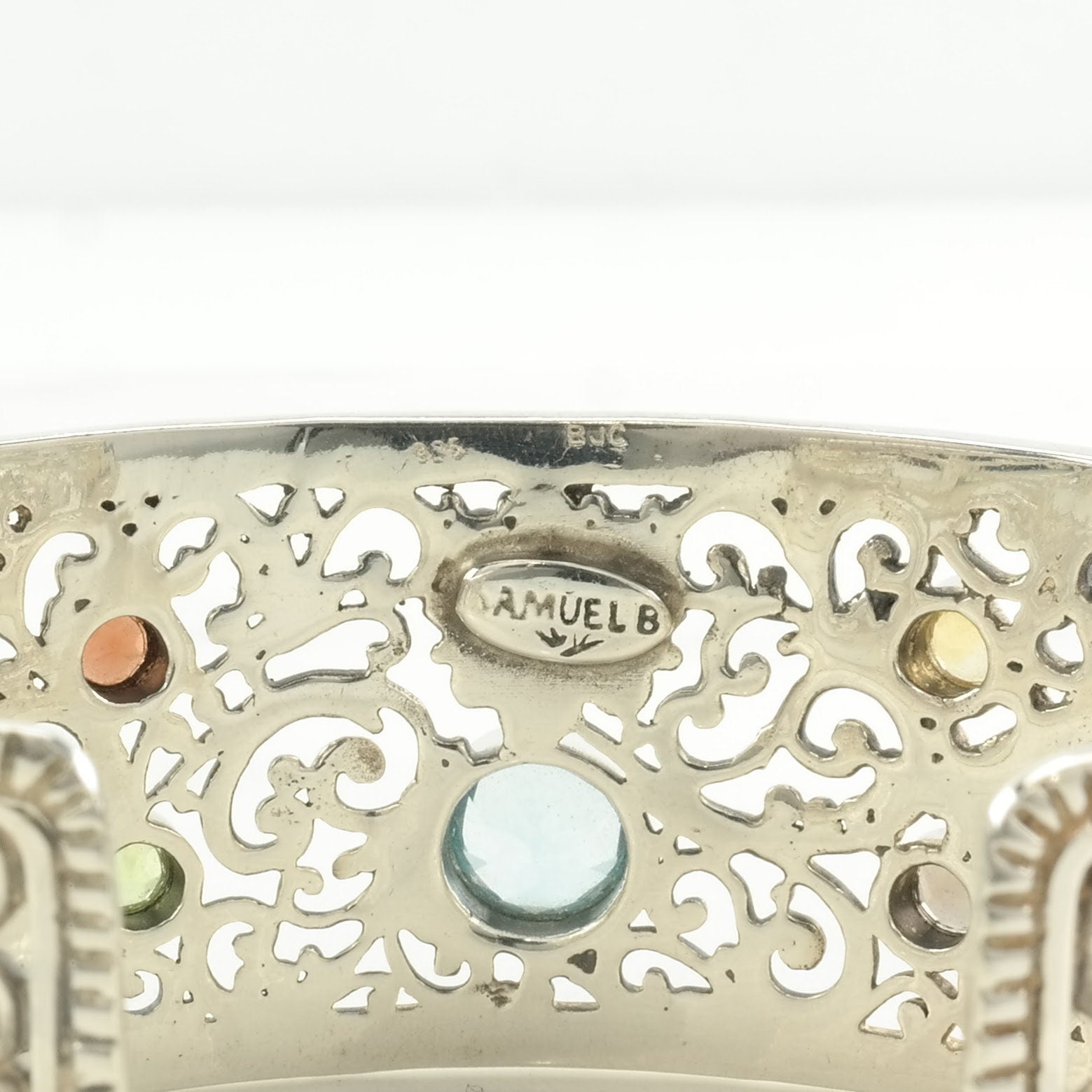 Samuel B Natural Gemstone Cuff Bracelet Open Filigree Sterling Silver