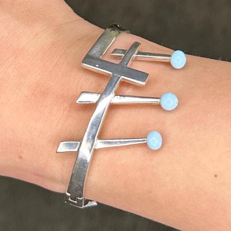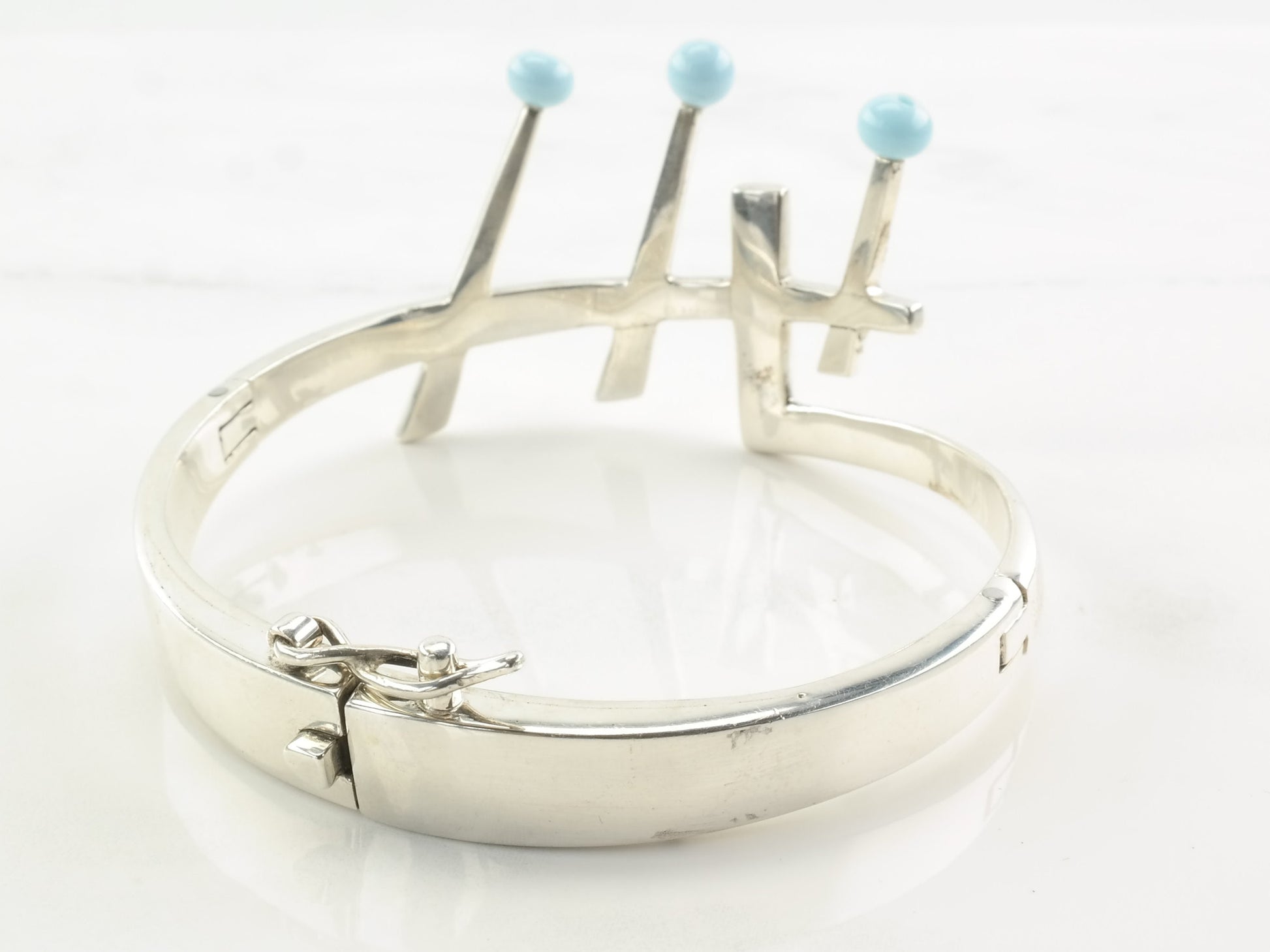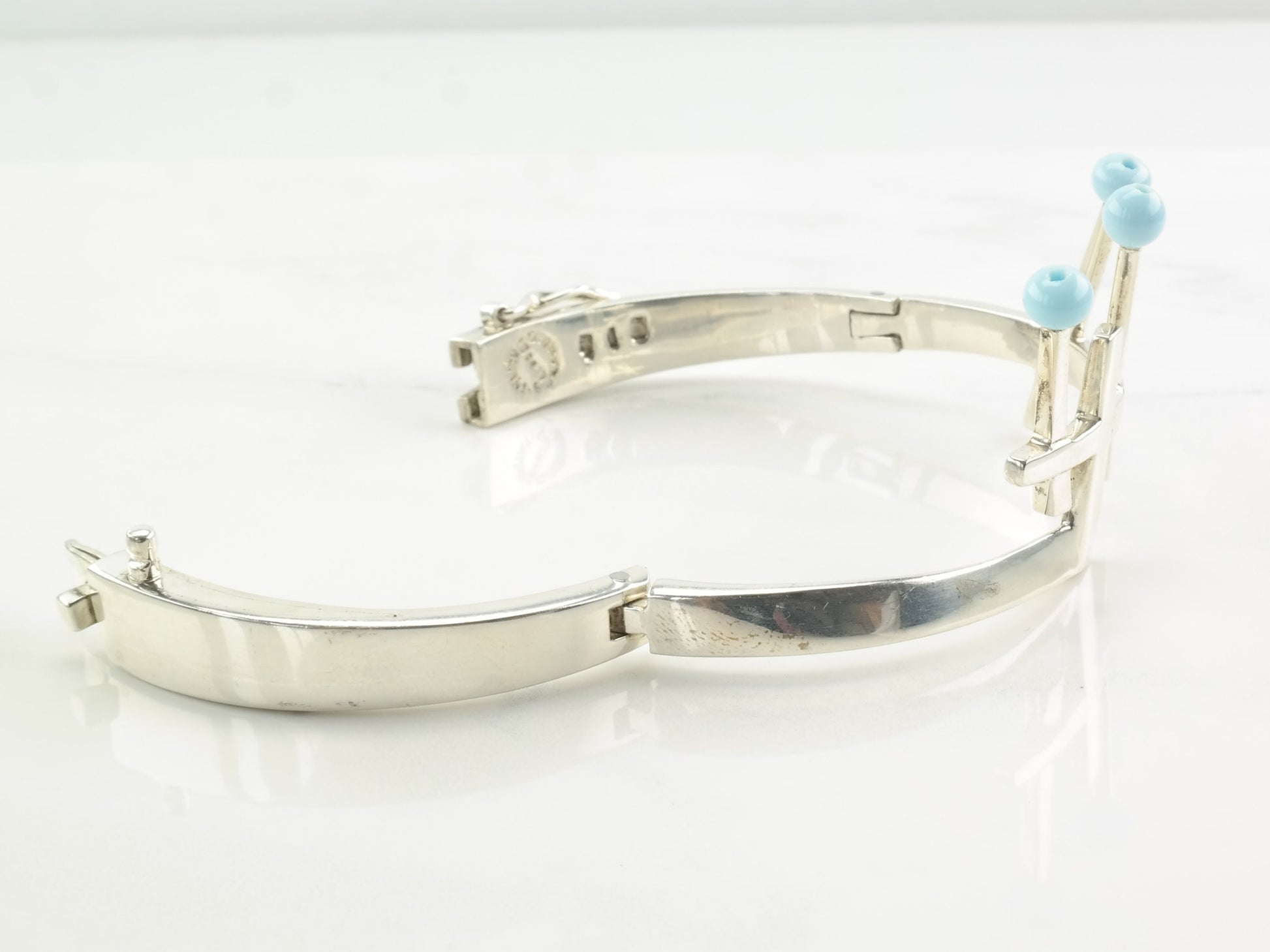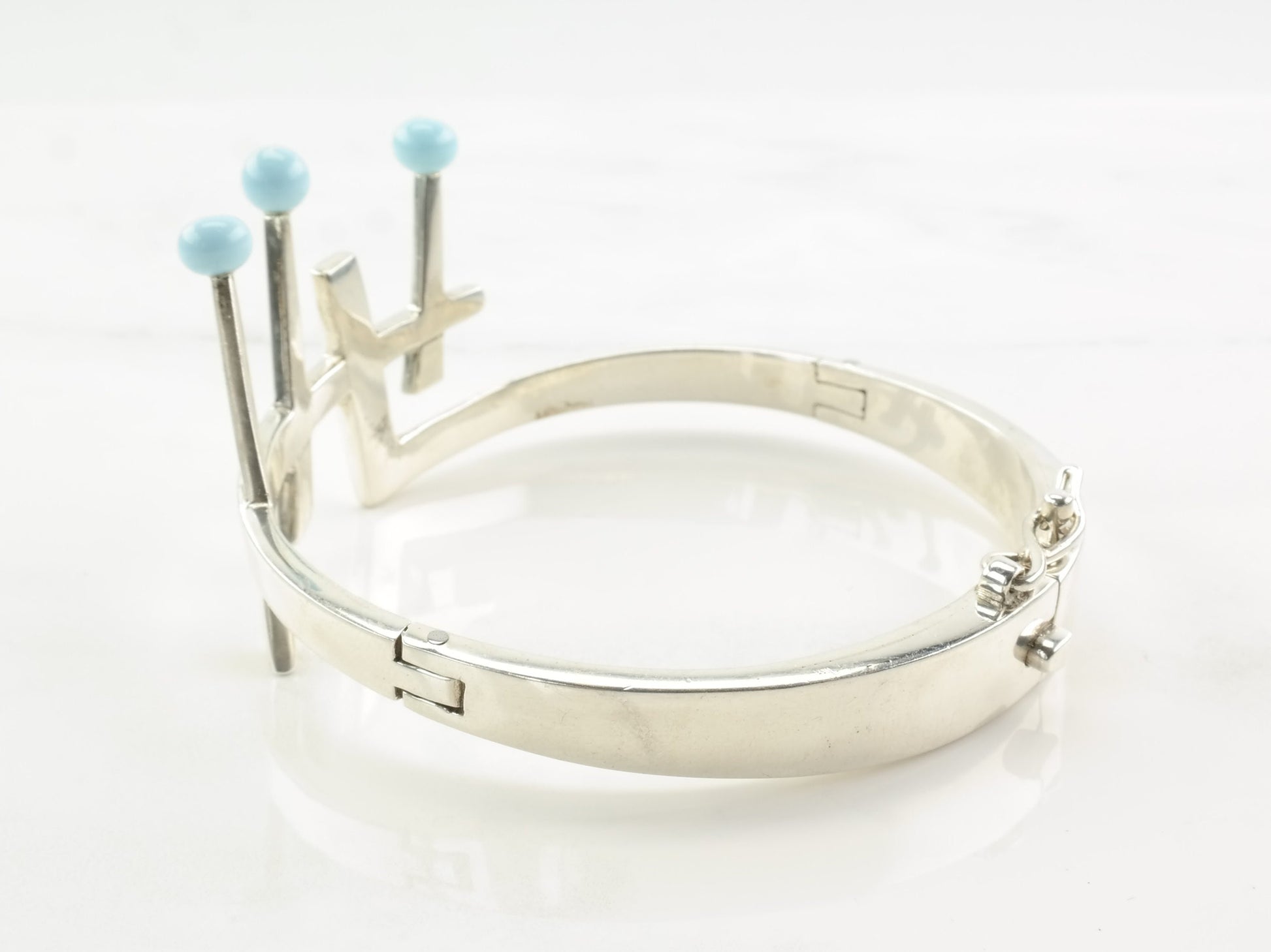 Sigi Taxco Sterling Silver Bracelet | Blue Crown Bracelet | Modernist Mexican Silver Jewelry | 1970s