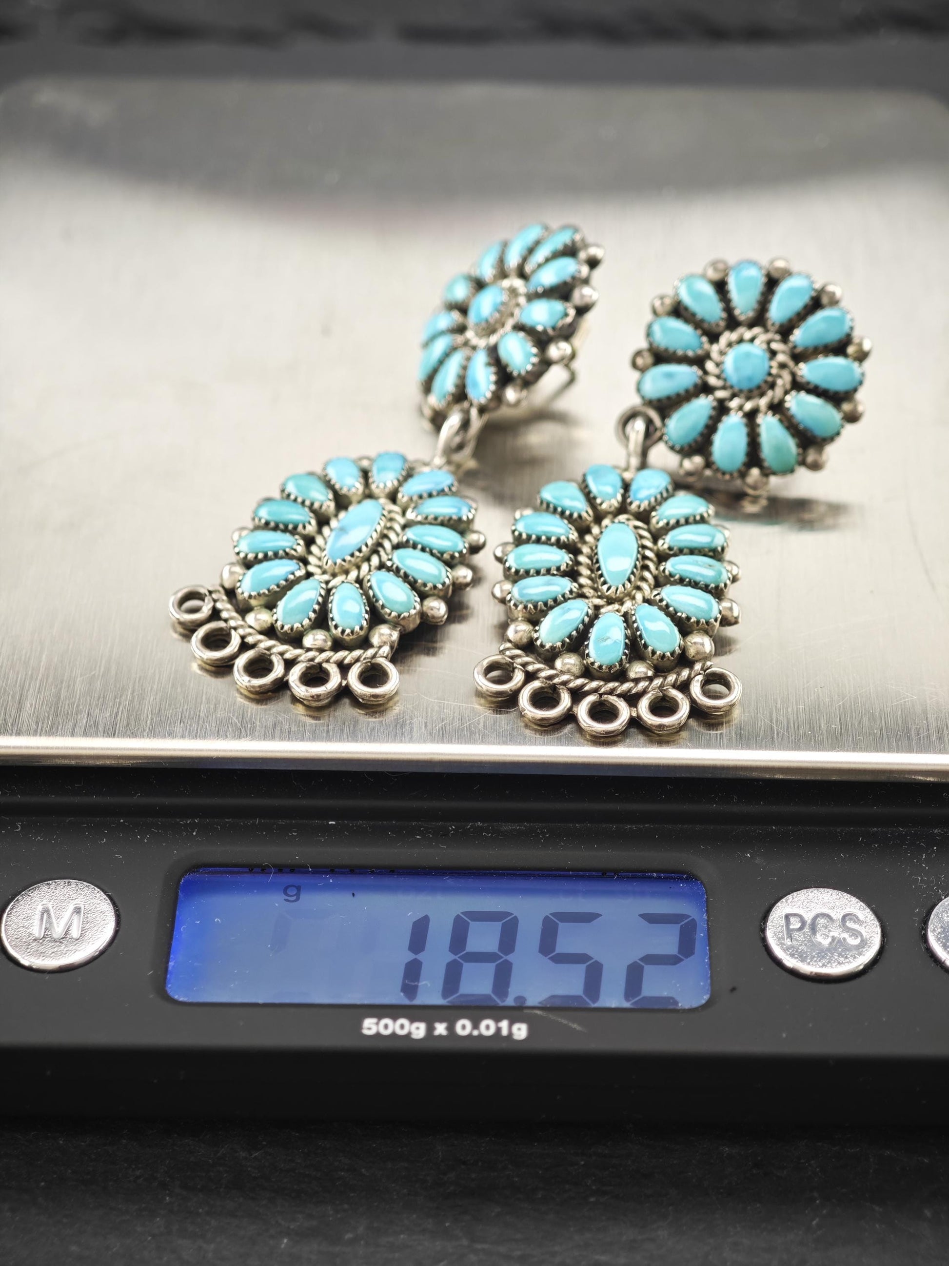 These vintage sterling silver earrings are 2 1/4" long, 7/8" wide