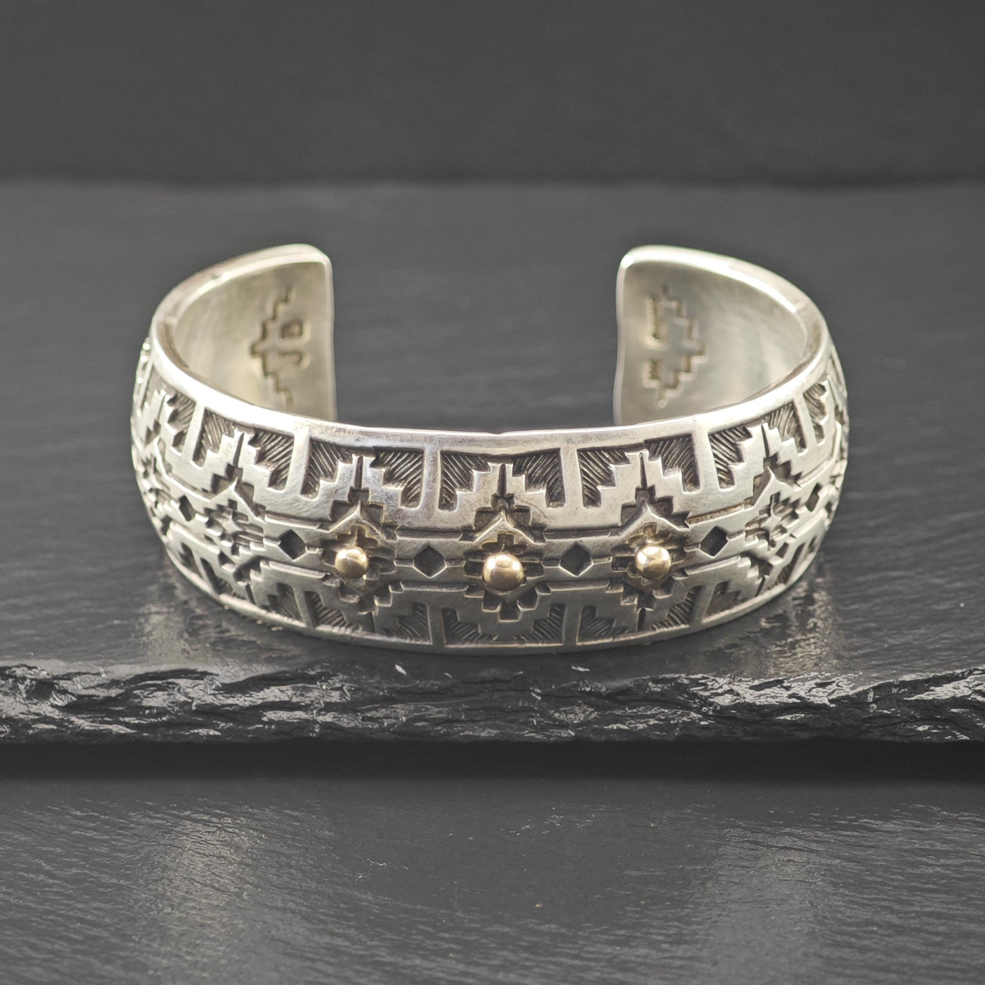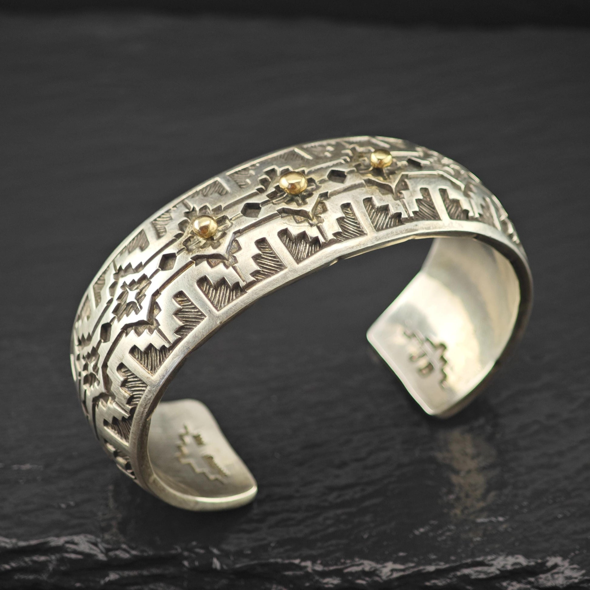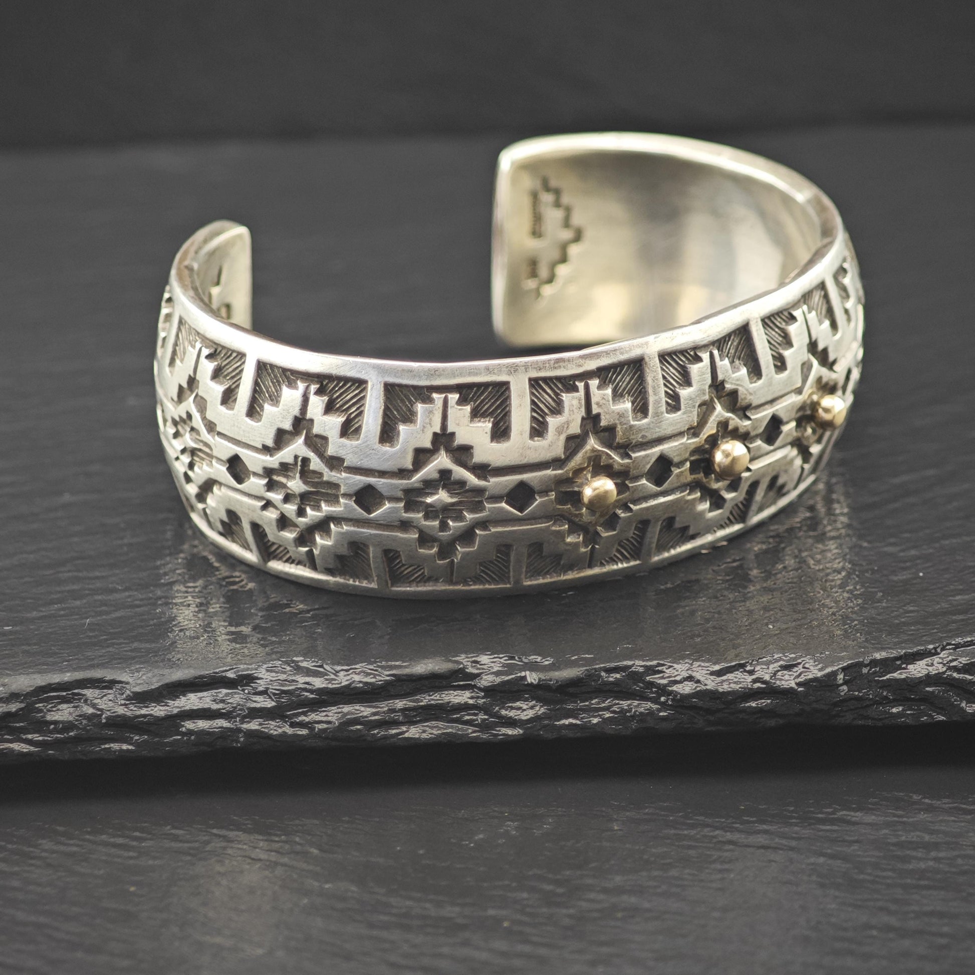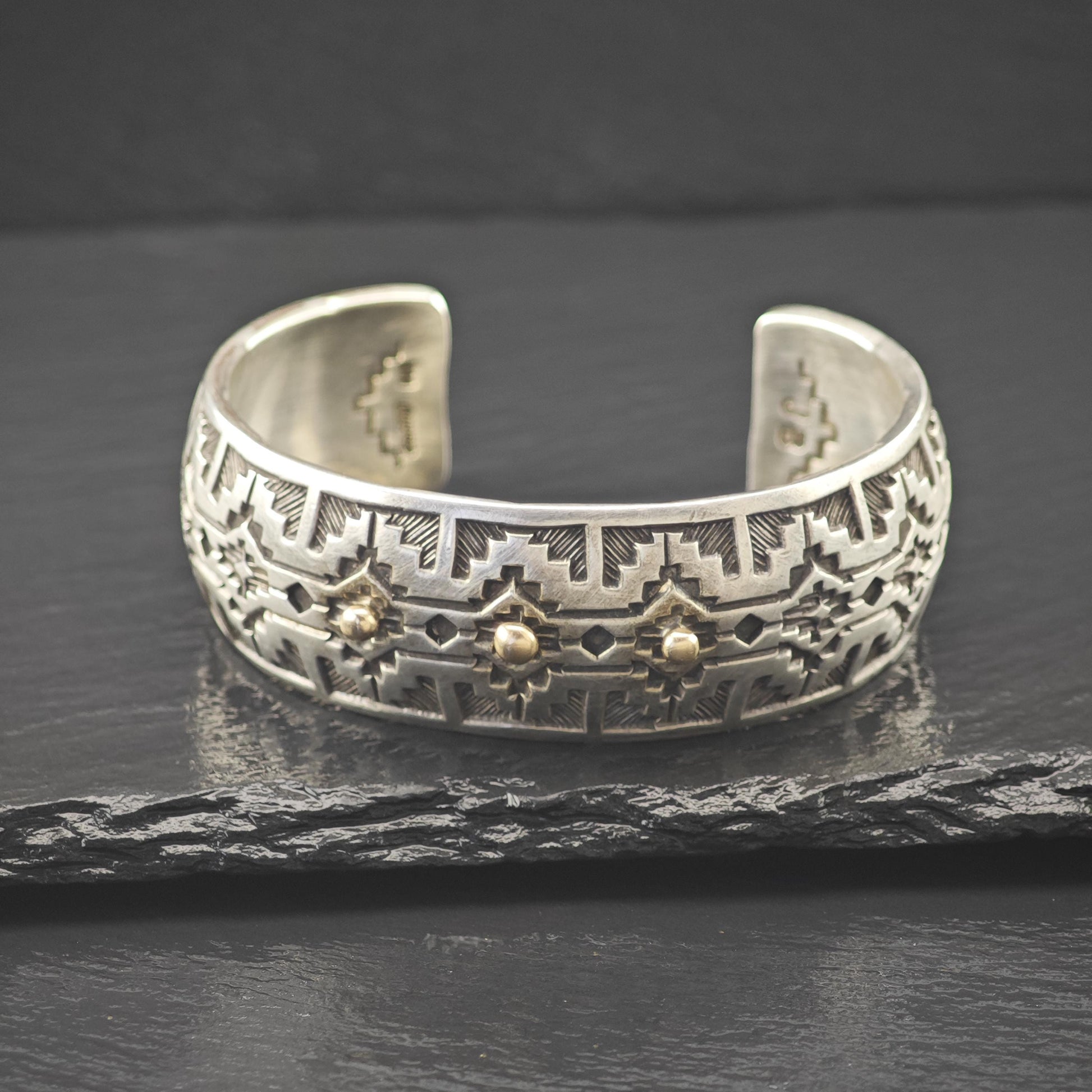 Silver Cuff Bracelet with 14k Gold Accents by Navajo, Native American Silversmith Sterling