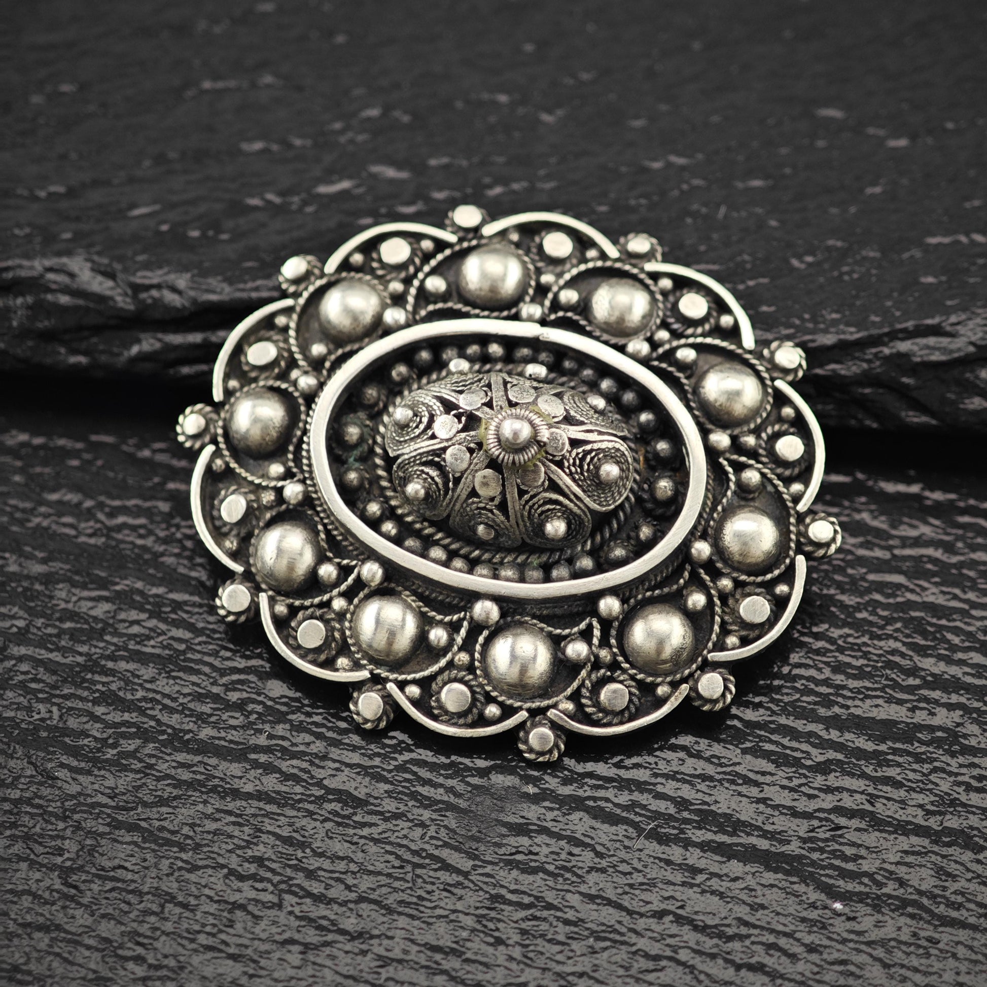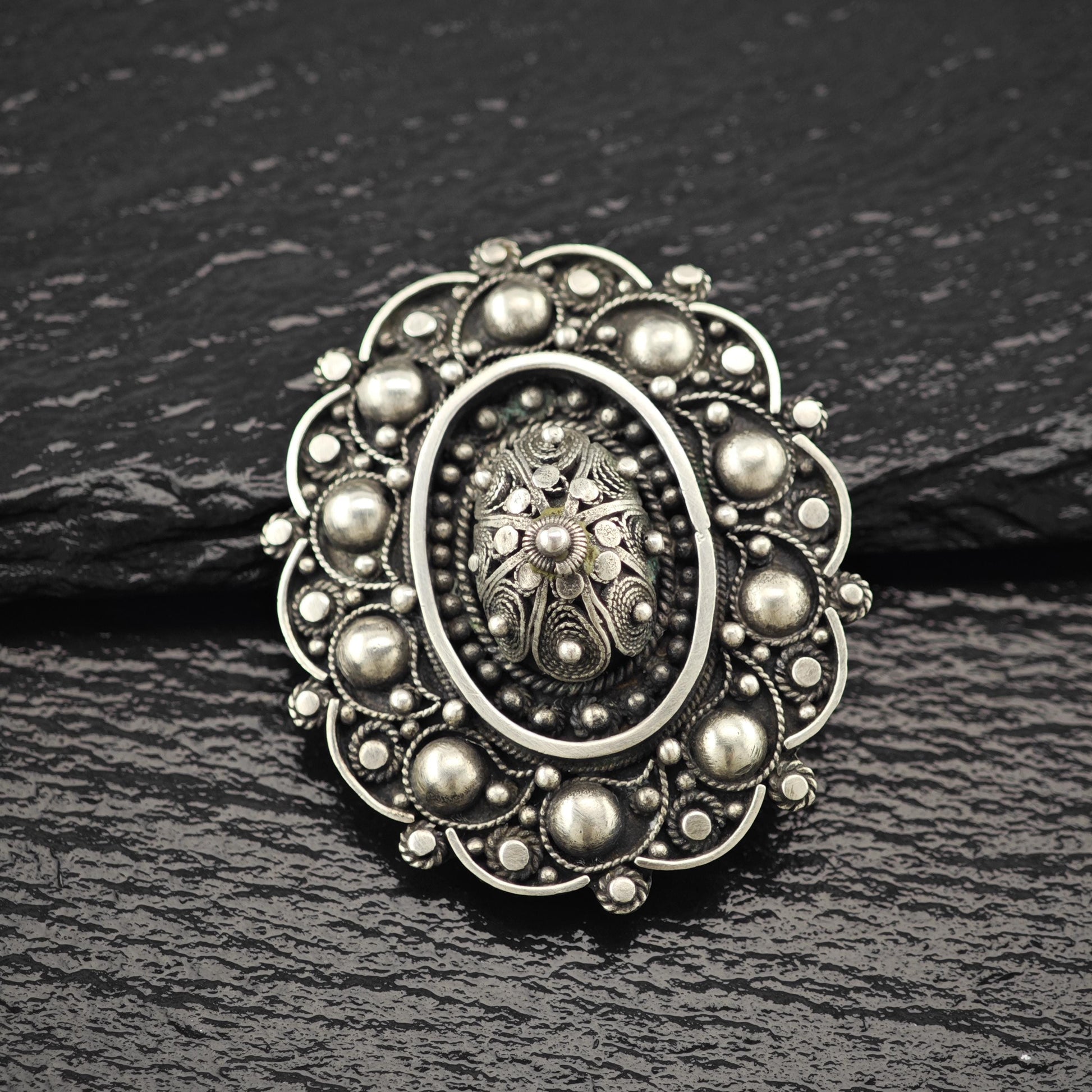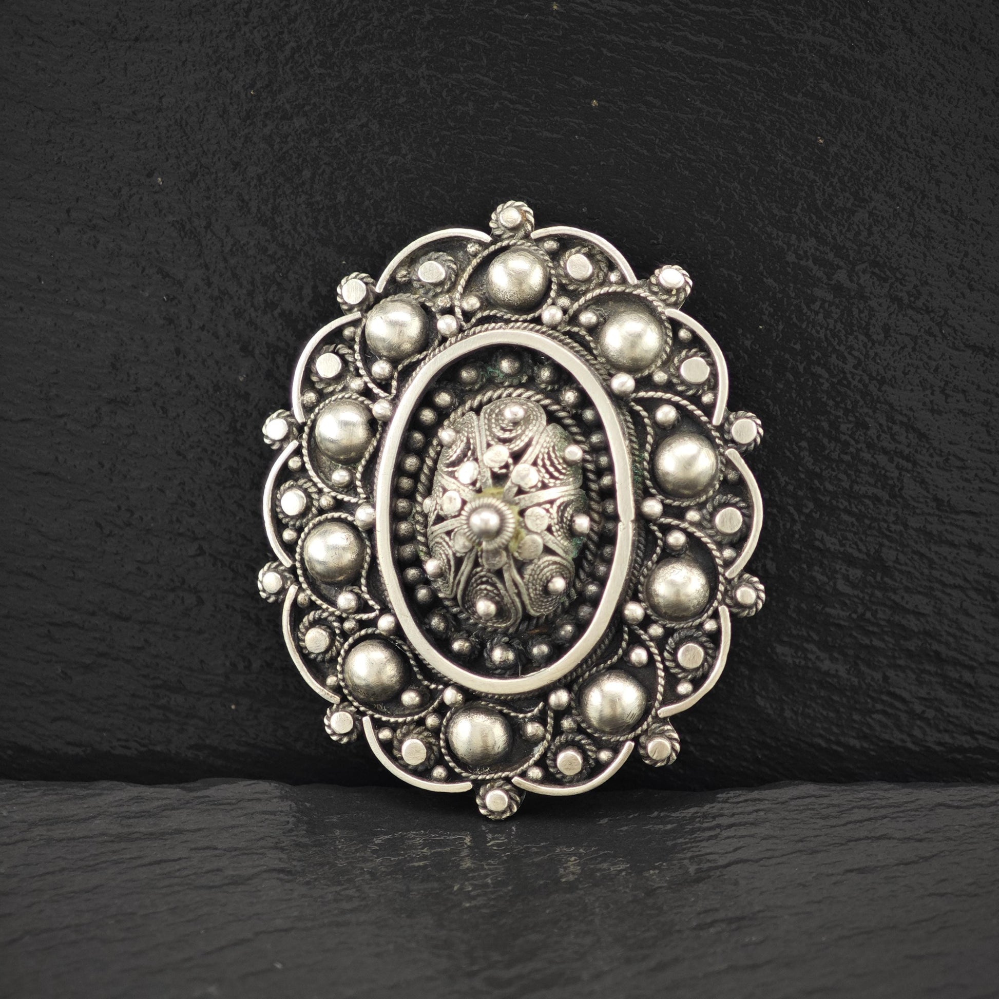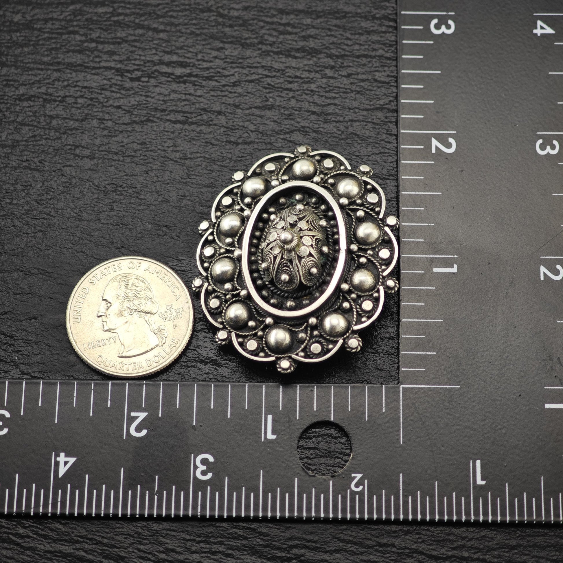 Silver Filigree Brooch Pendant: Vintage Sterling Jewelry