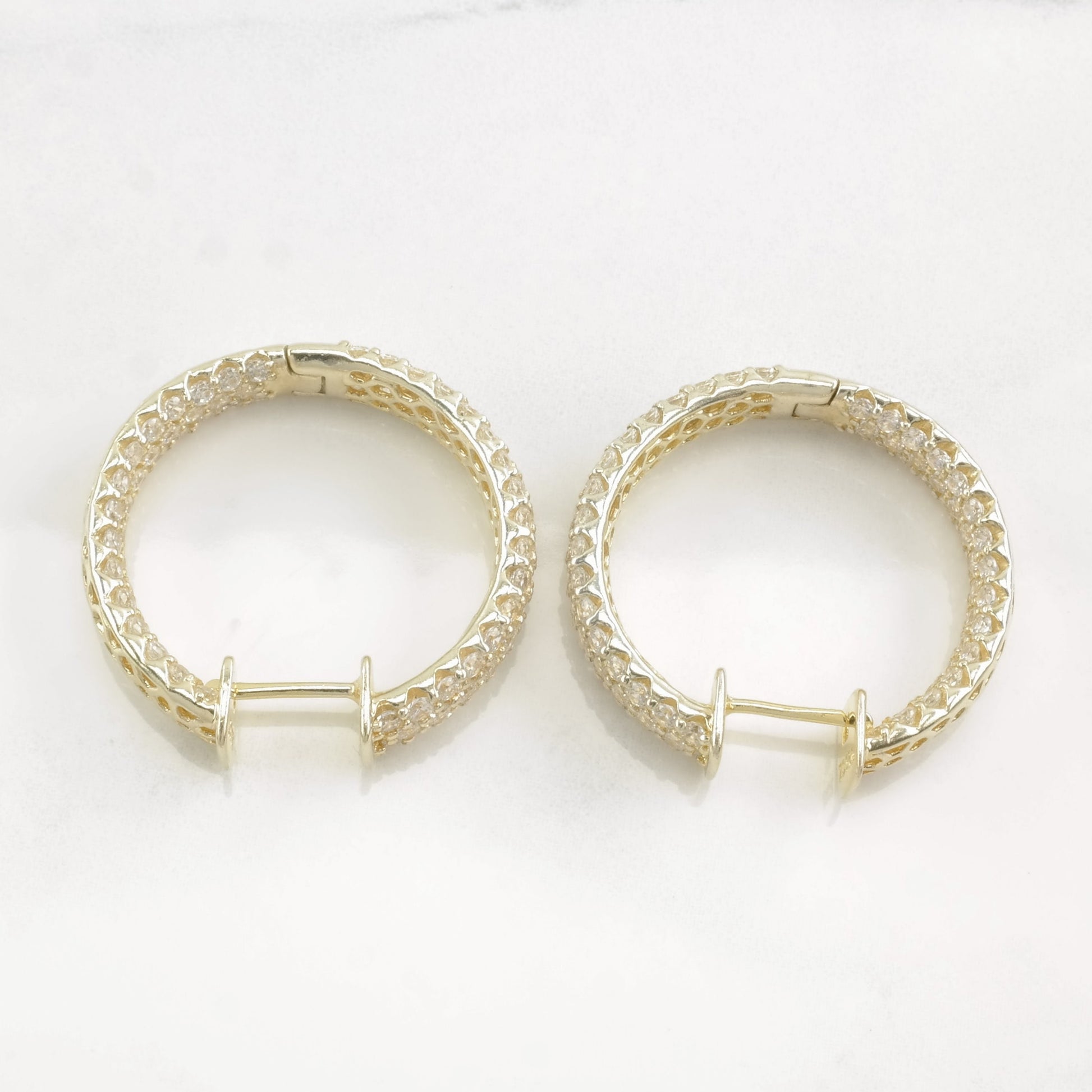 Sonia B Sterling Silver Gold, White CZ Gold Tone Earrings Hoop