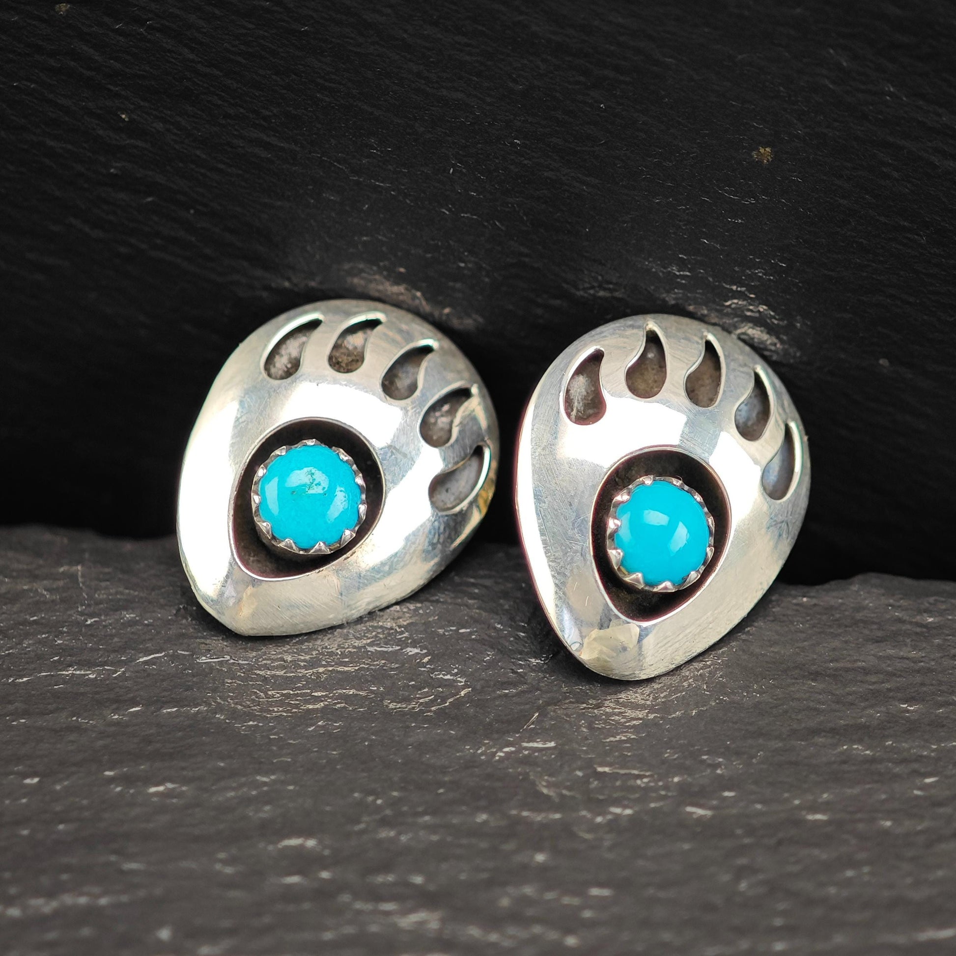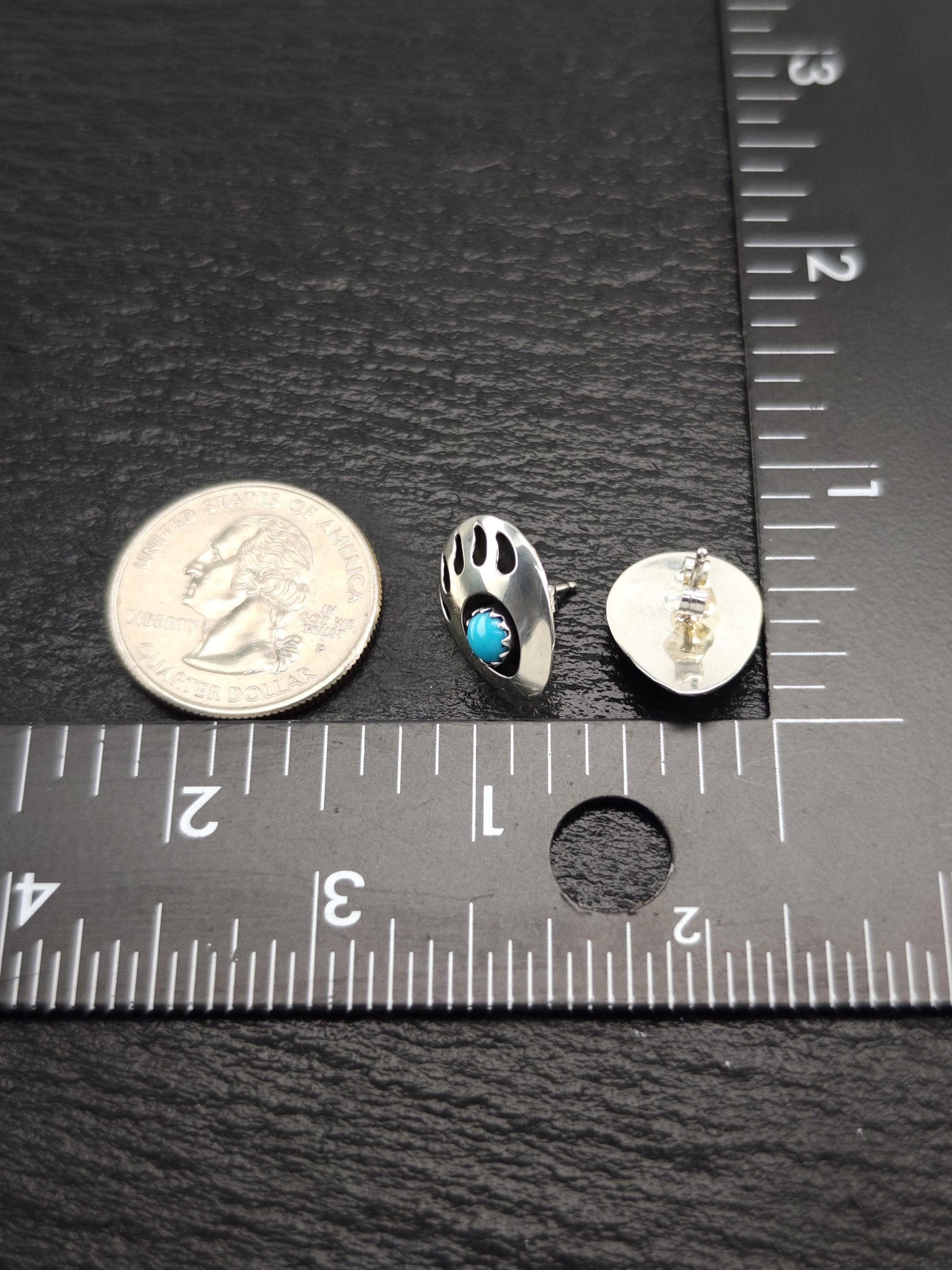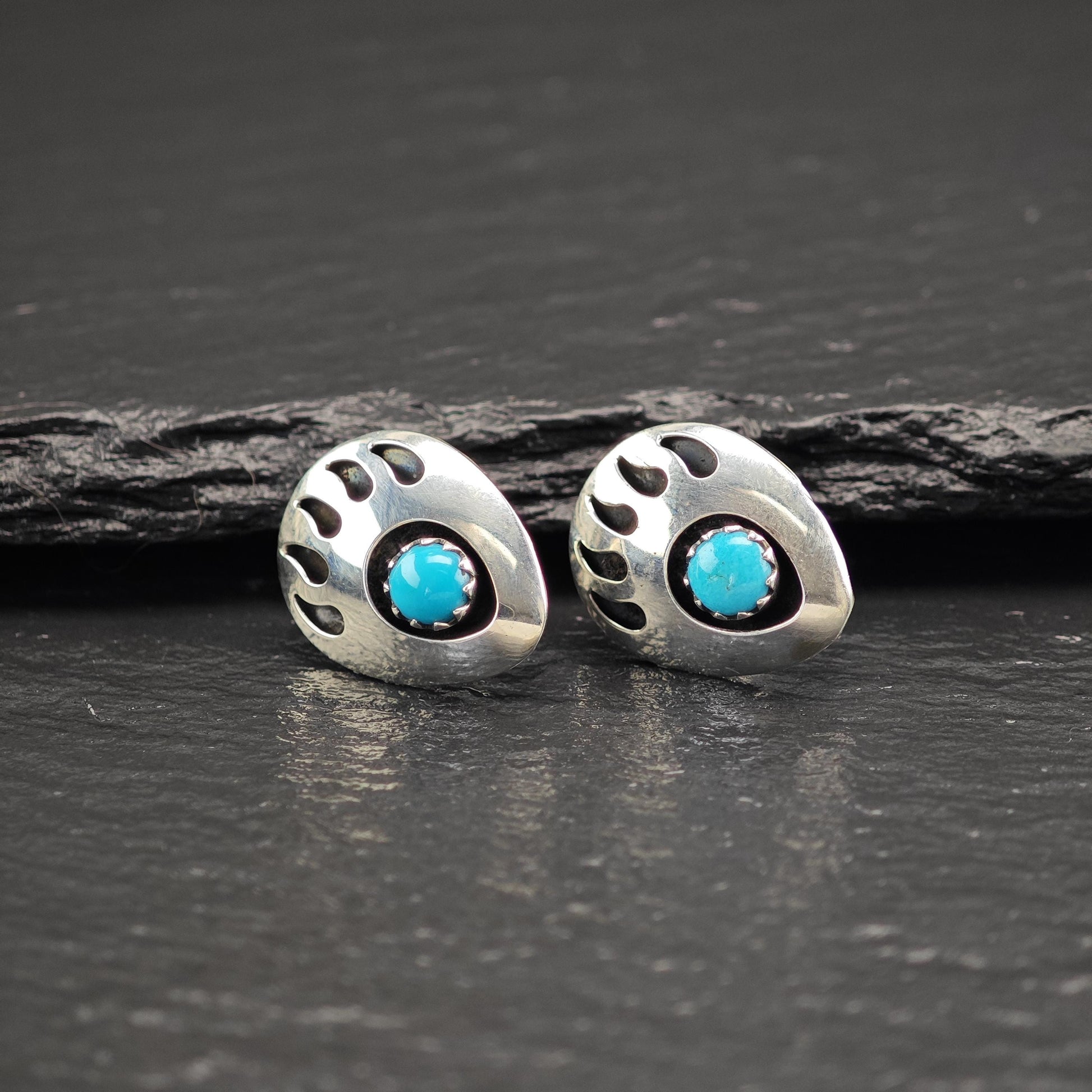 Southwest Blue Turquoise, Shadow Box Bear Paw Stud Earrings Sterling Silver