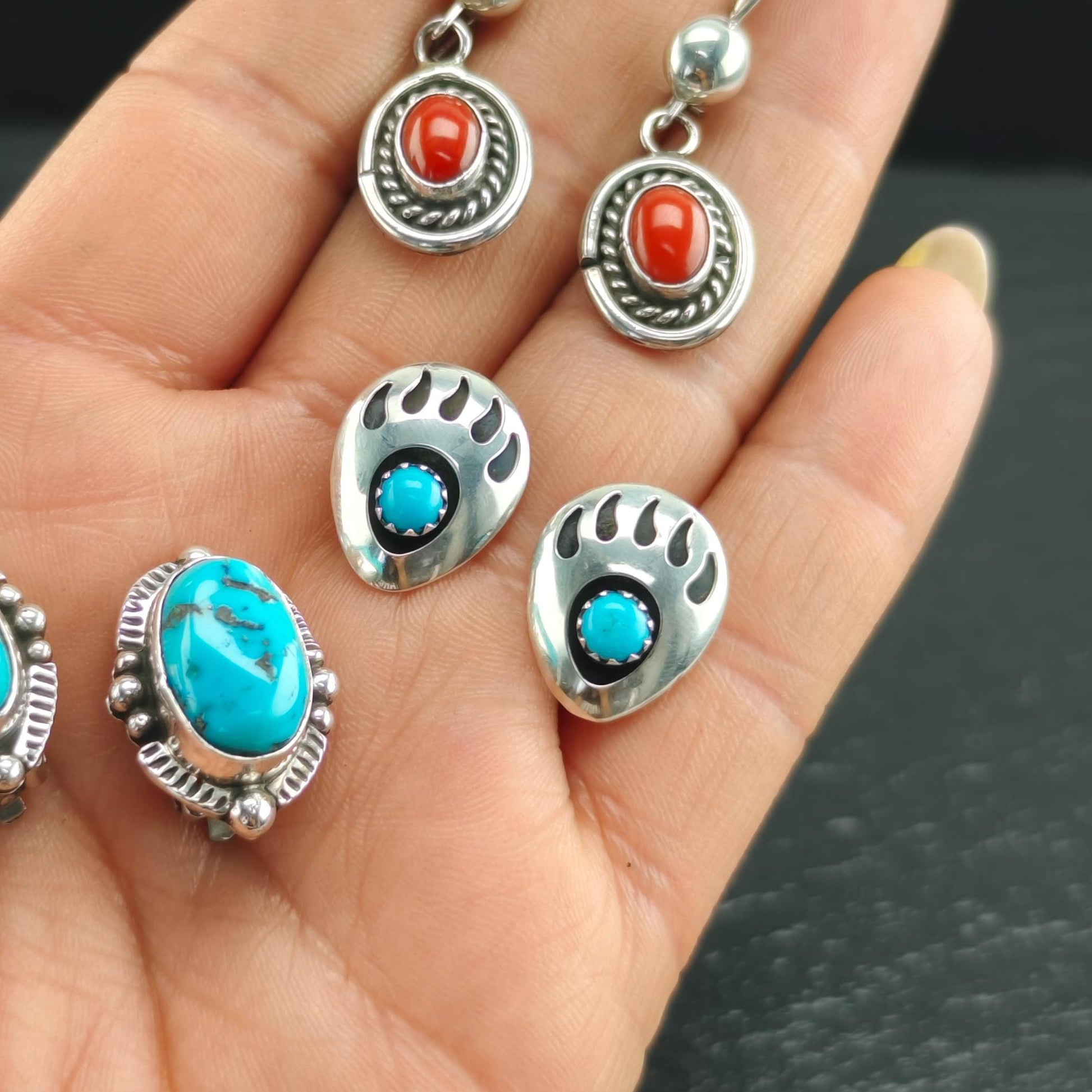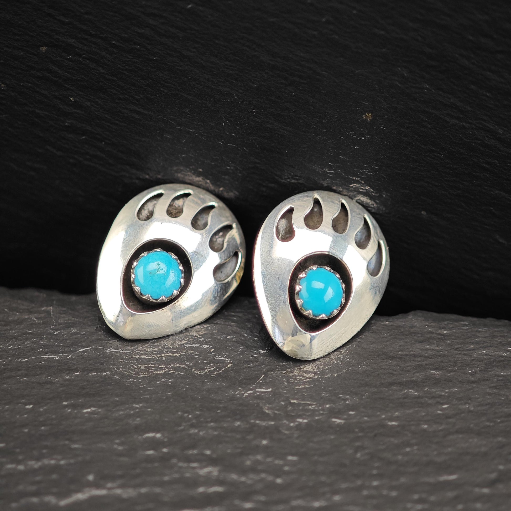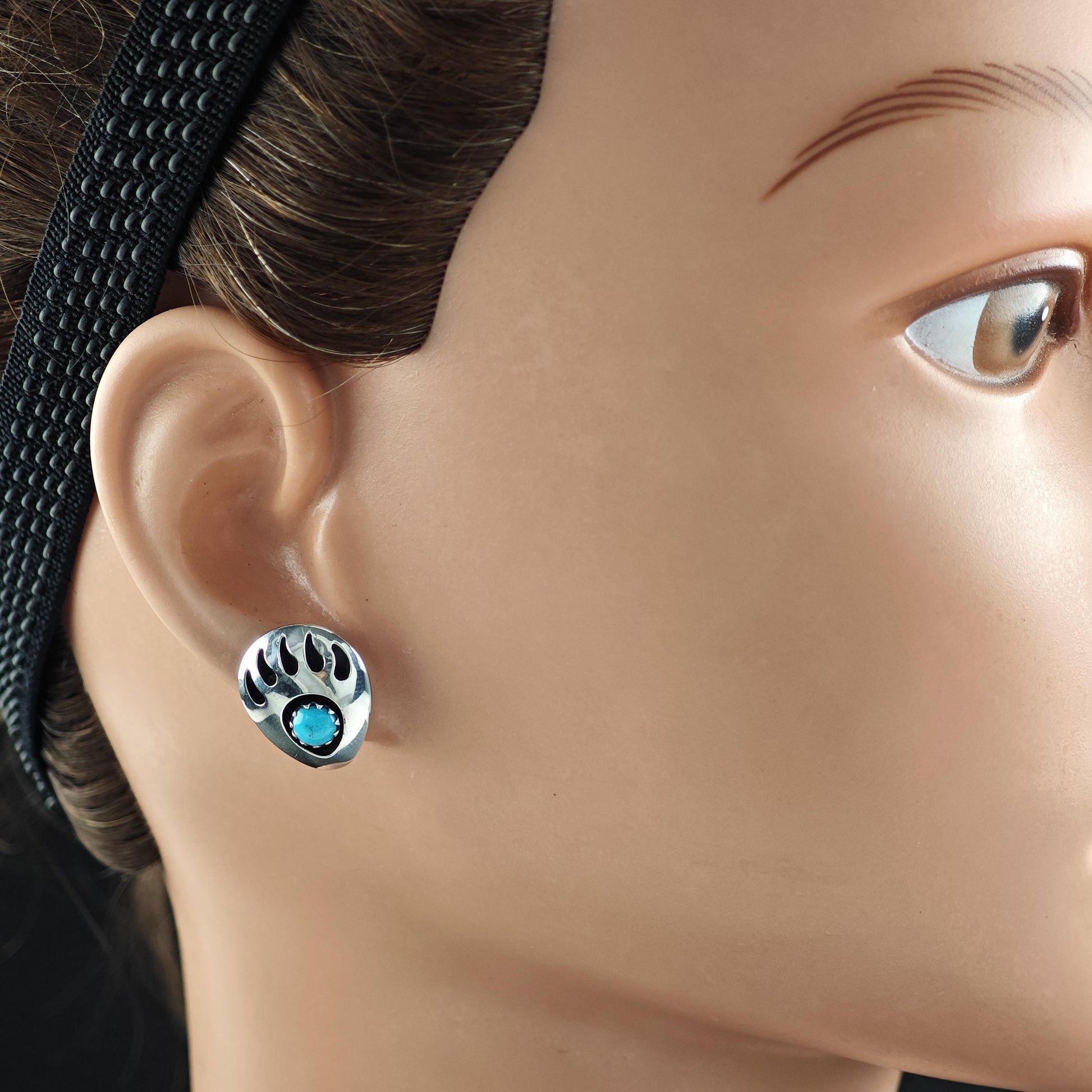 Southwest Blue Turquoise, Shadow Box Bear Paw Stud Earrings Sterling Silver