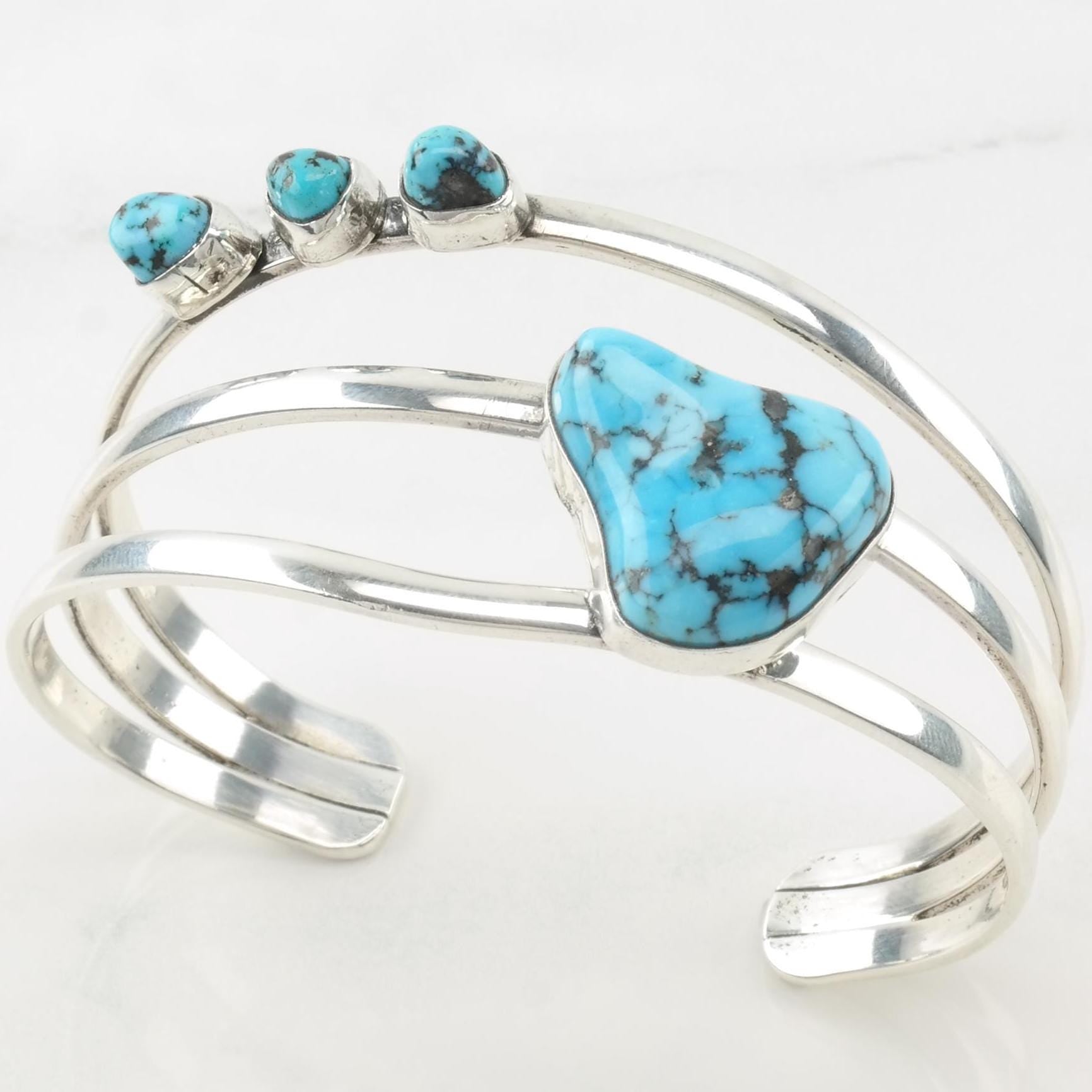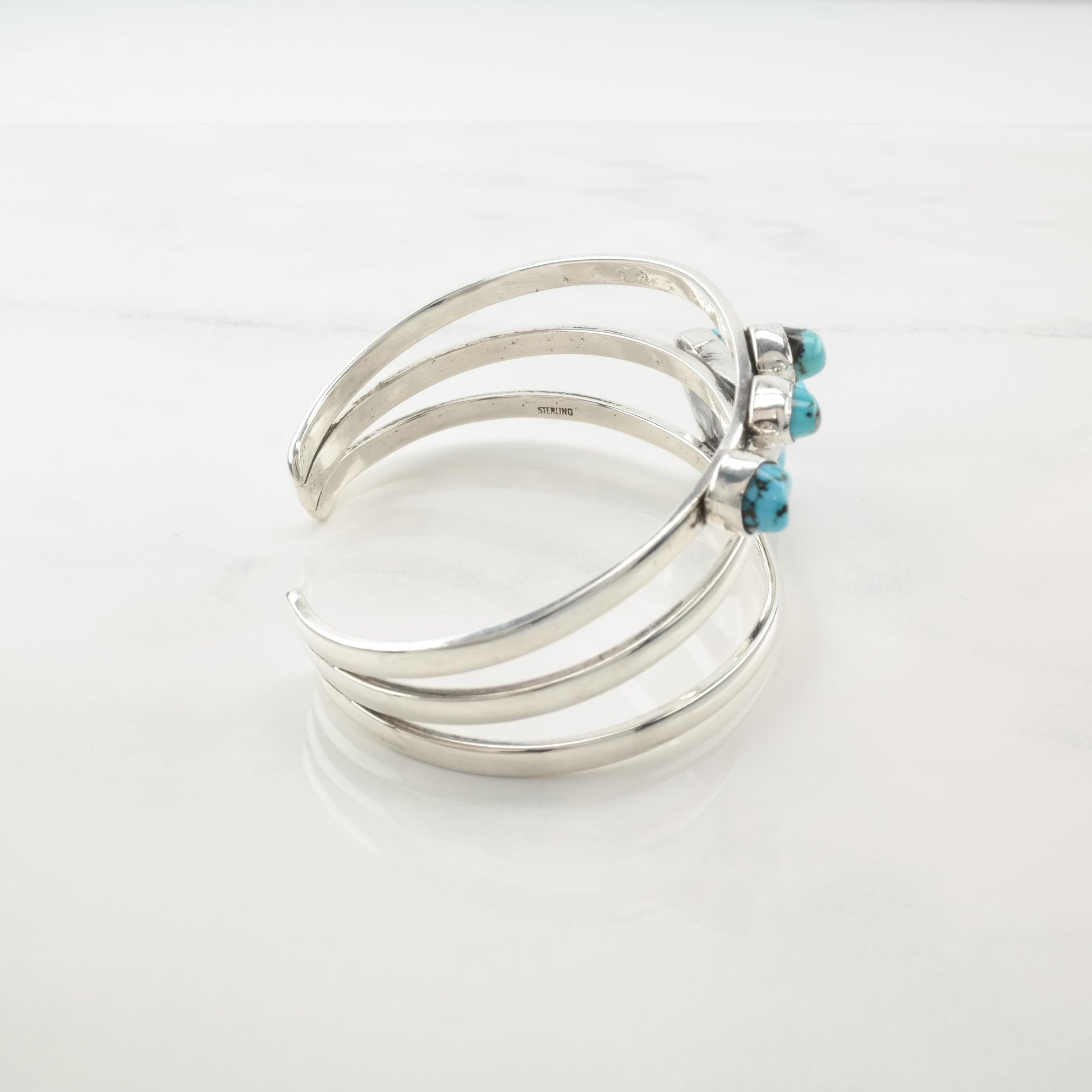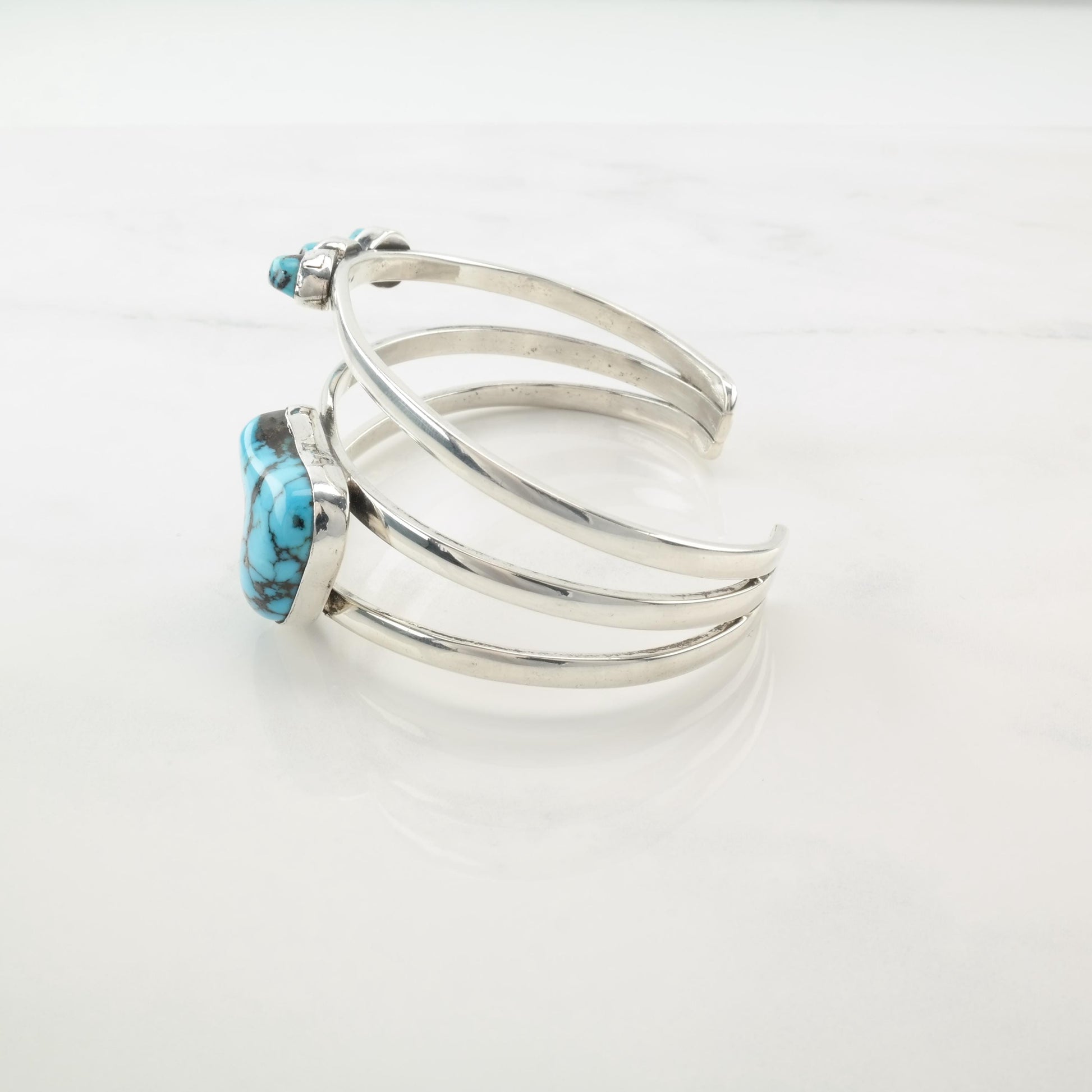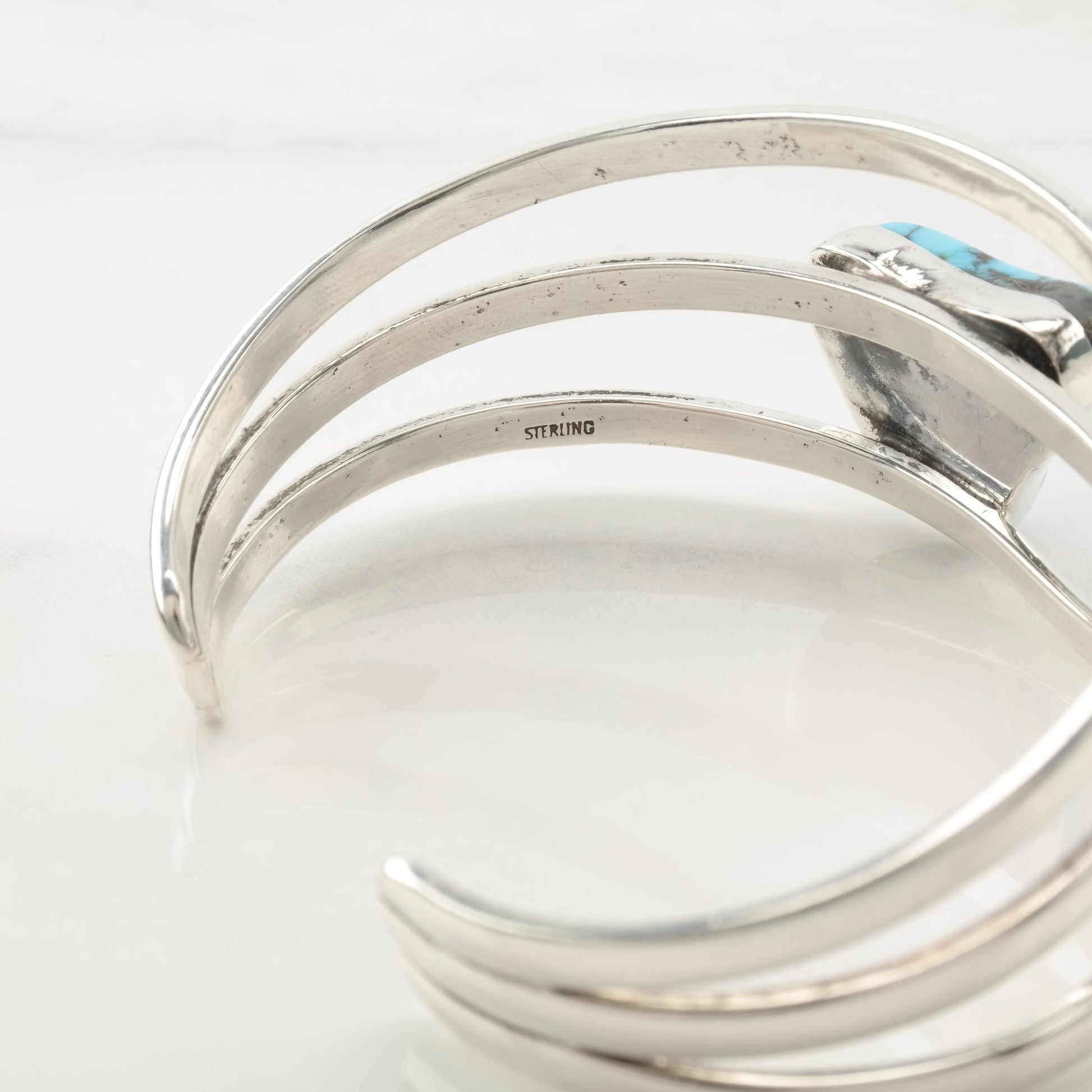 Southwest Kingman Turquoise Cuff Bracelet Sterling Silver Modernist