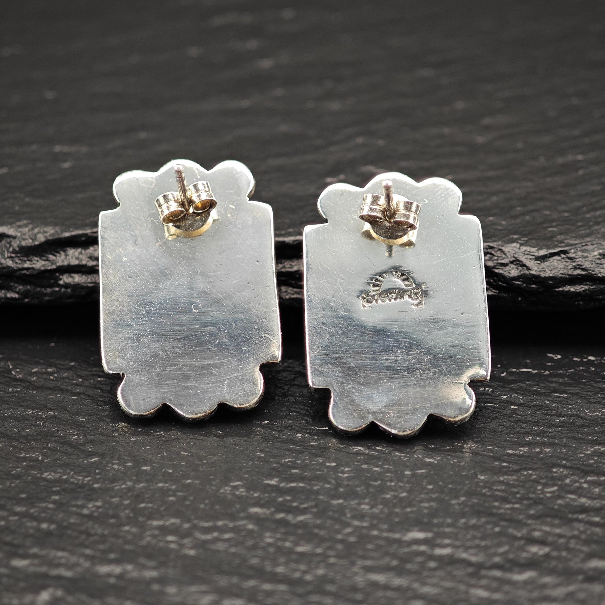These vintage sterling silver earrings are 1" long, 11/16" wide