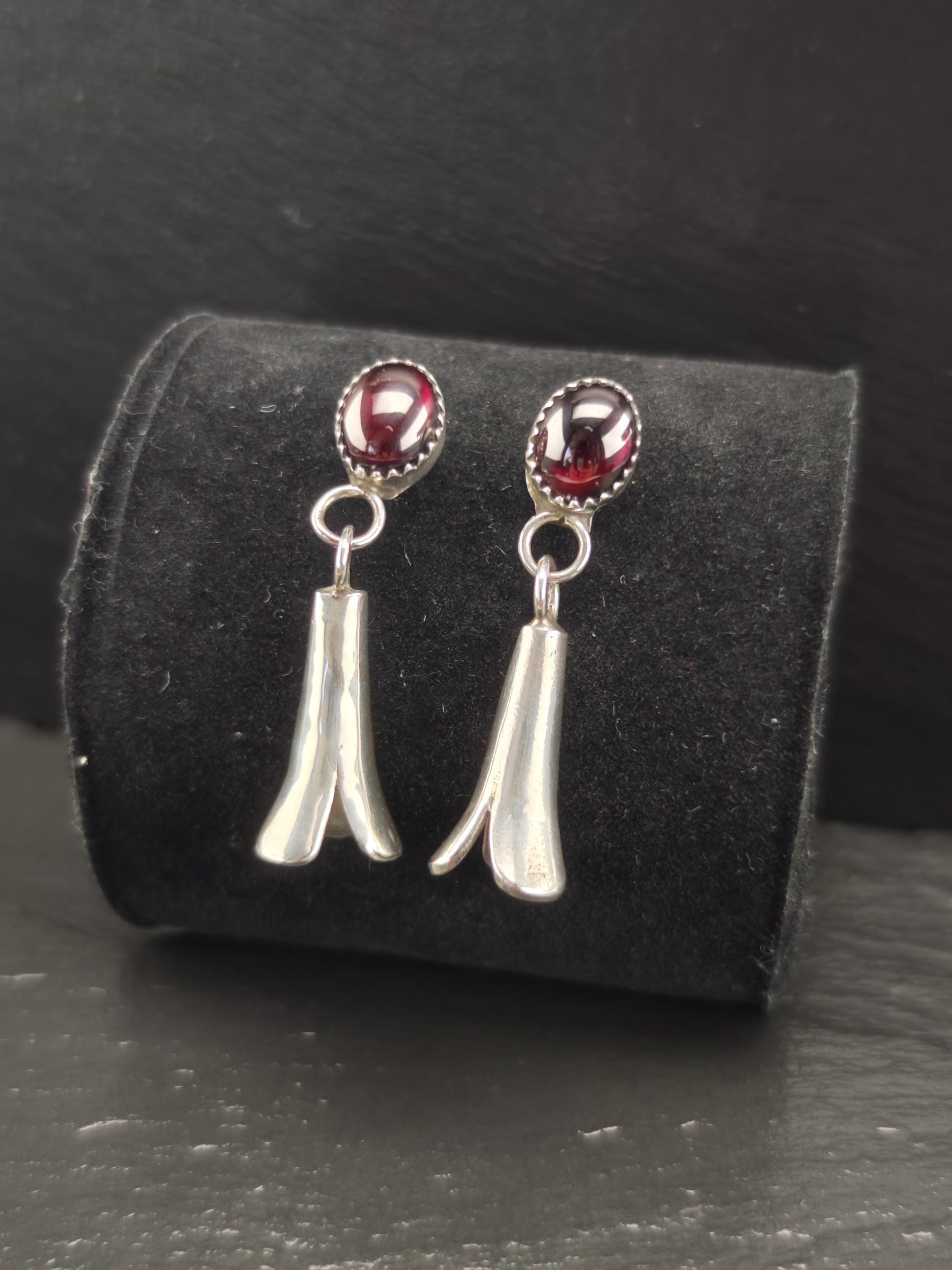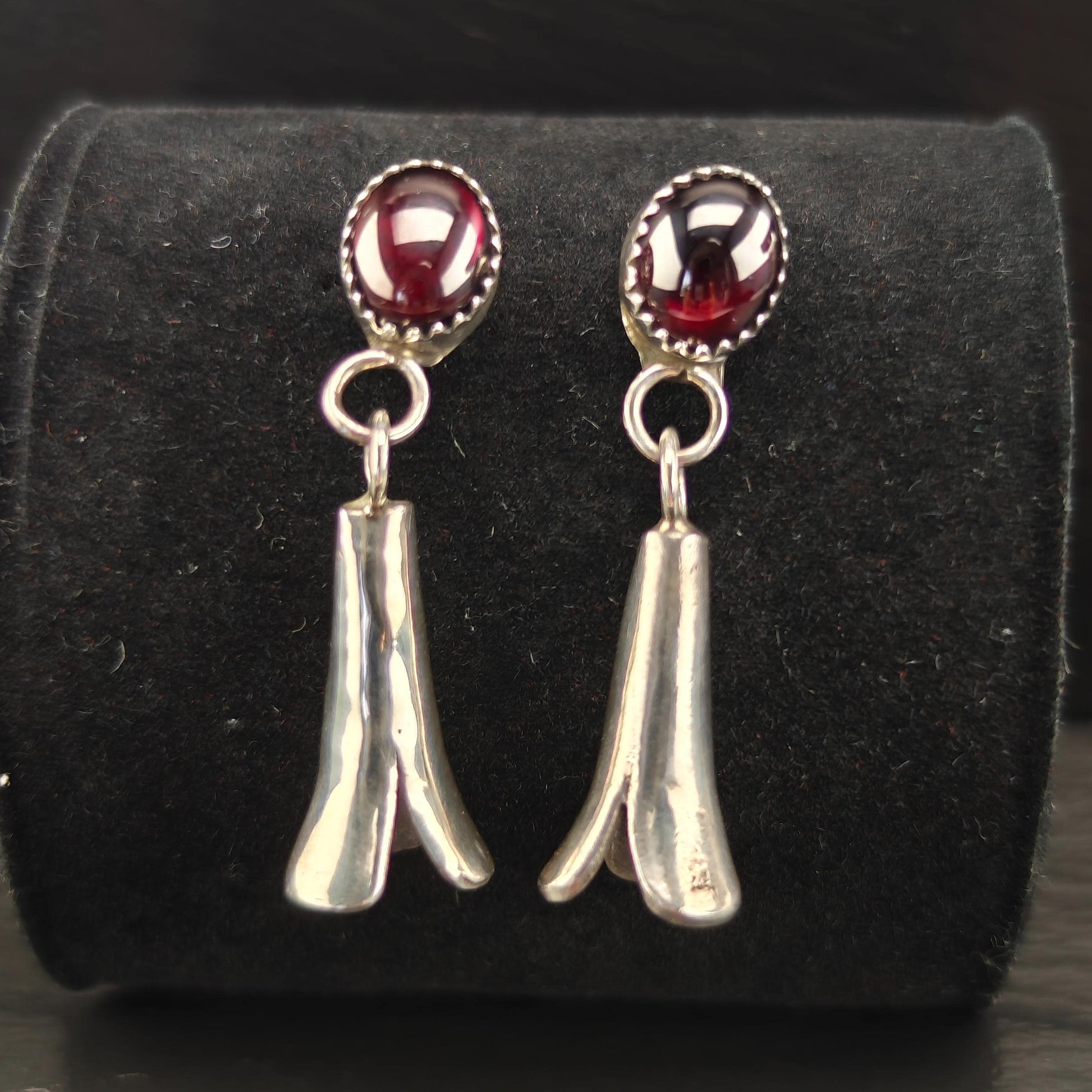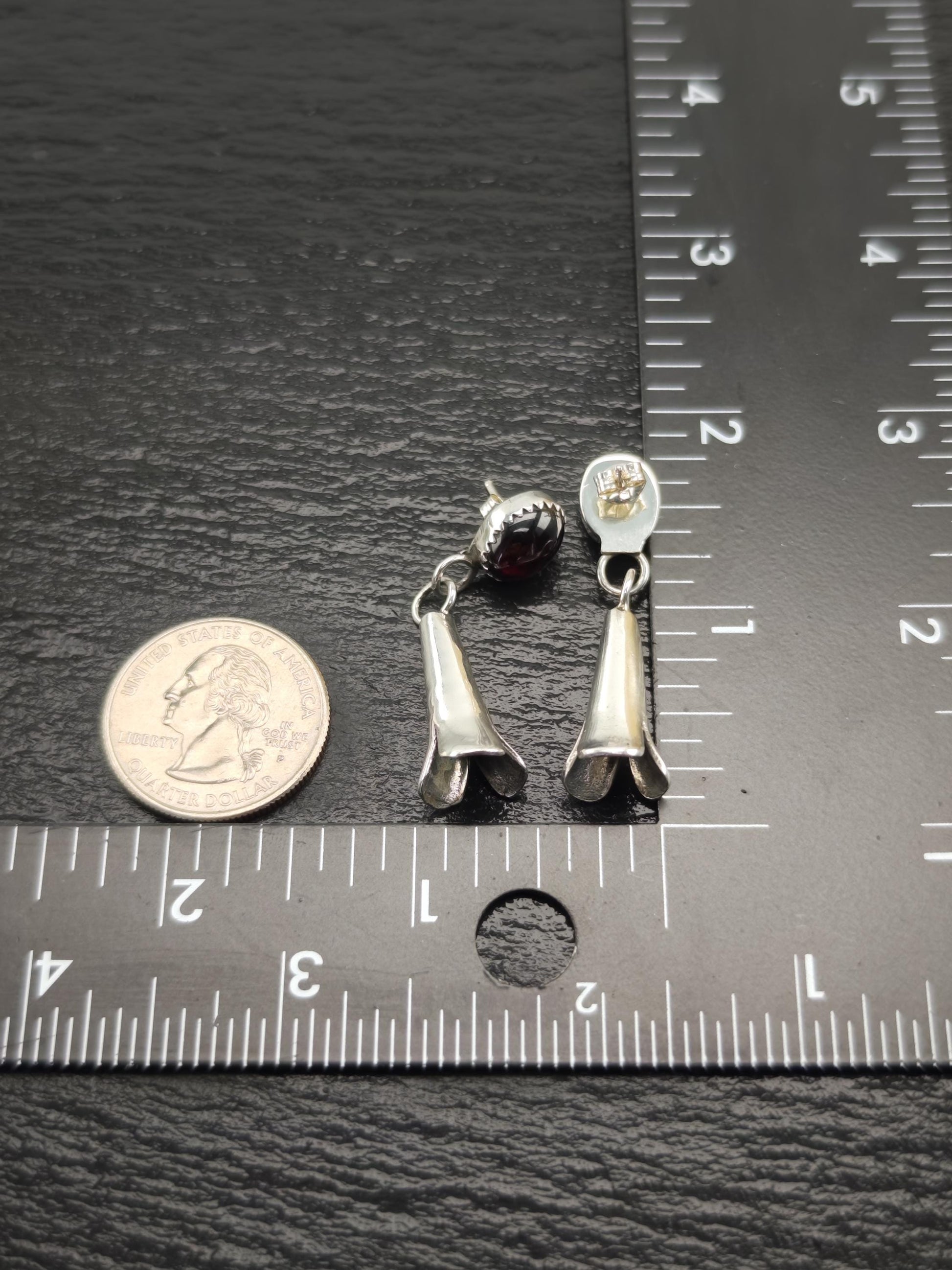 Southwest Red Dark Pyrope Garnet Squash Blossom Stud/Dangle Earrings Sterling Silver