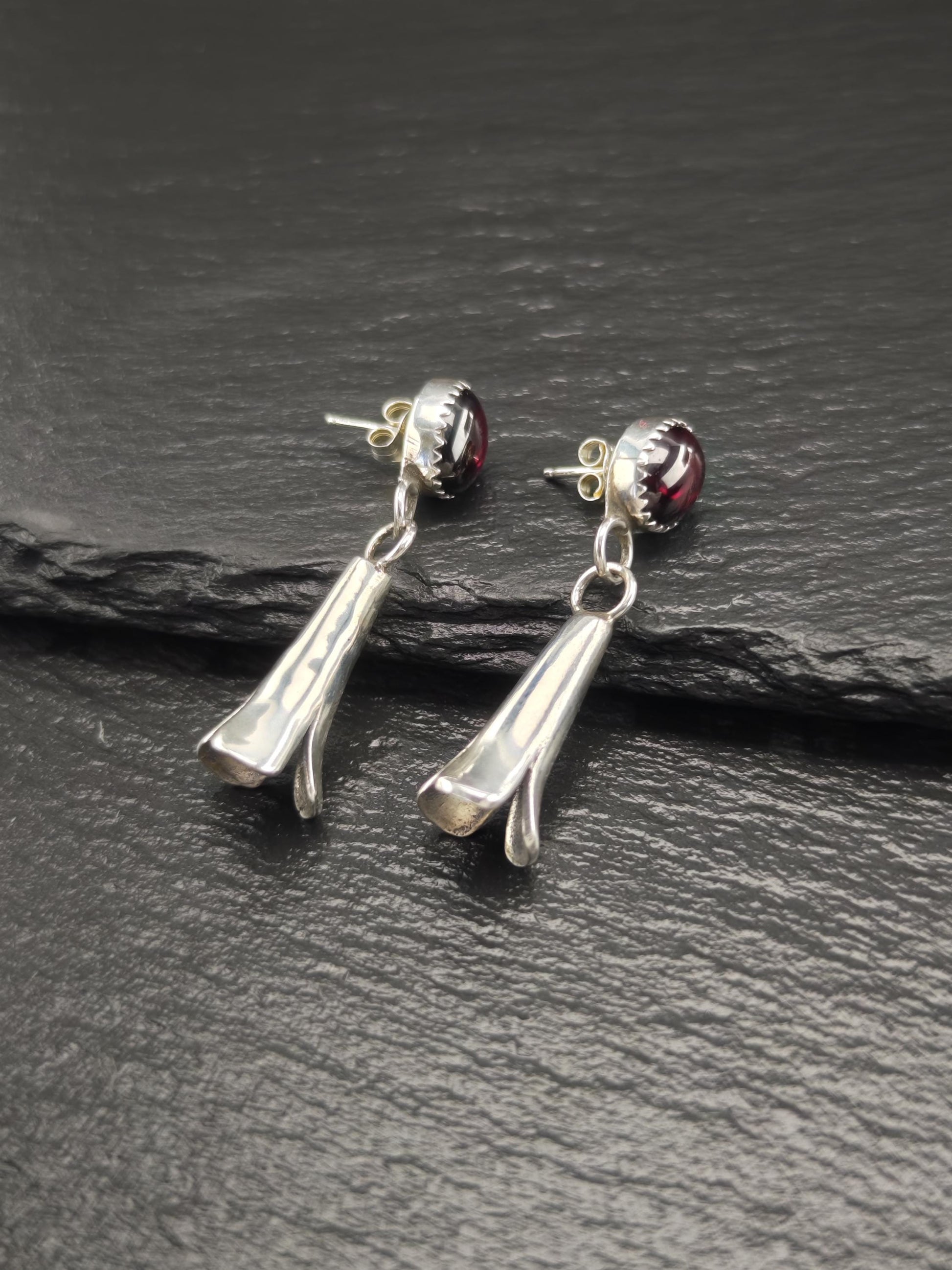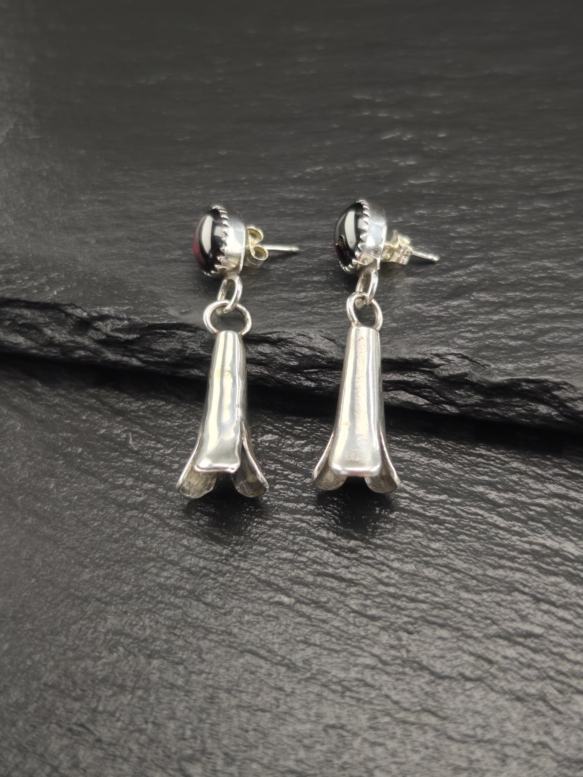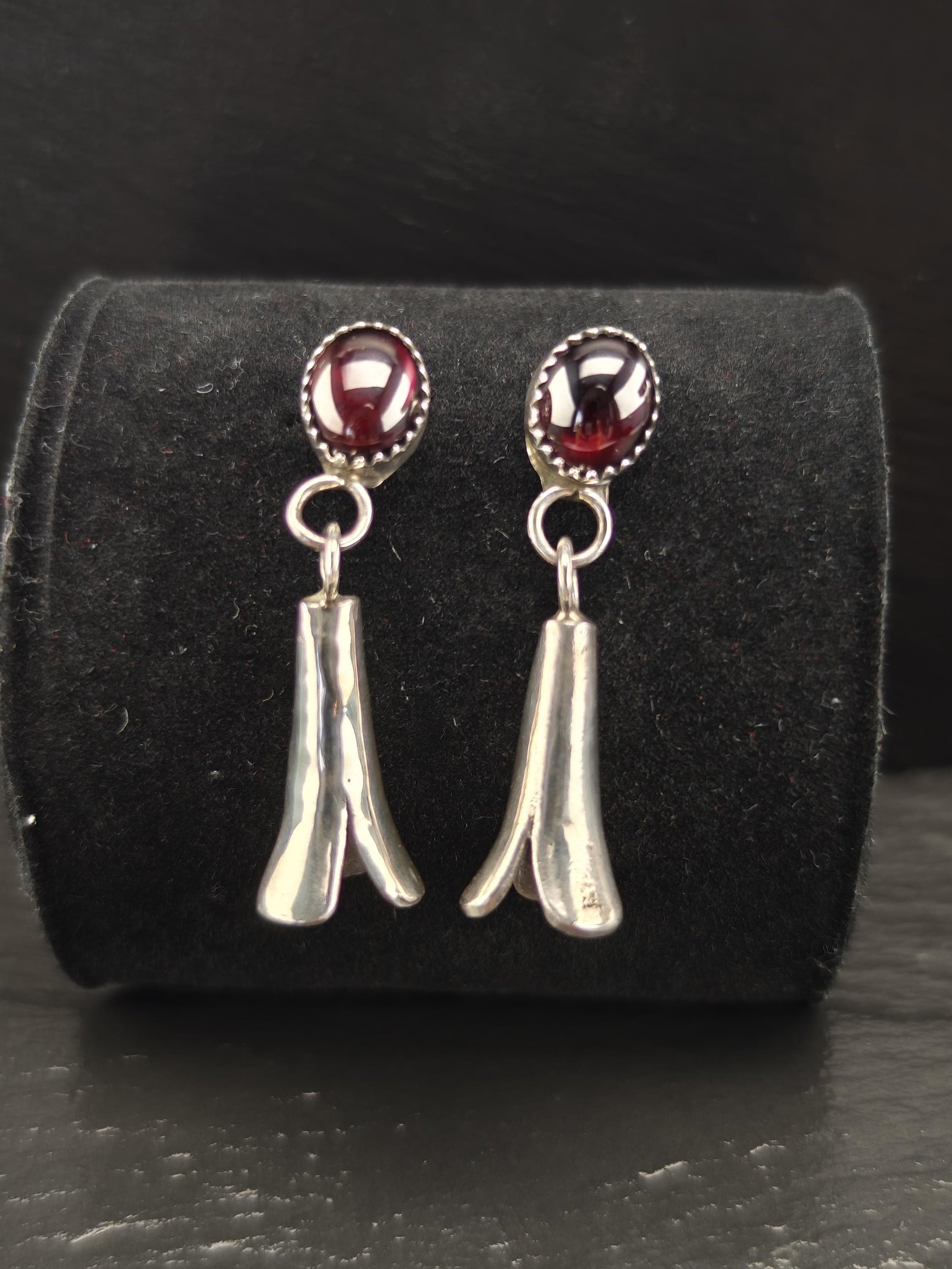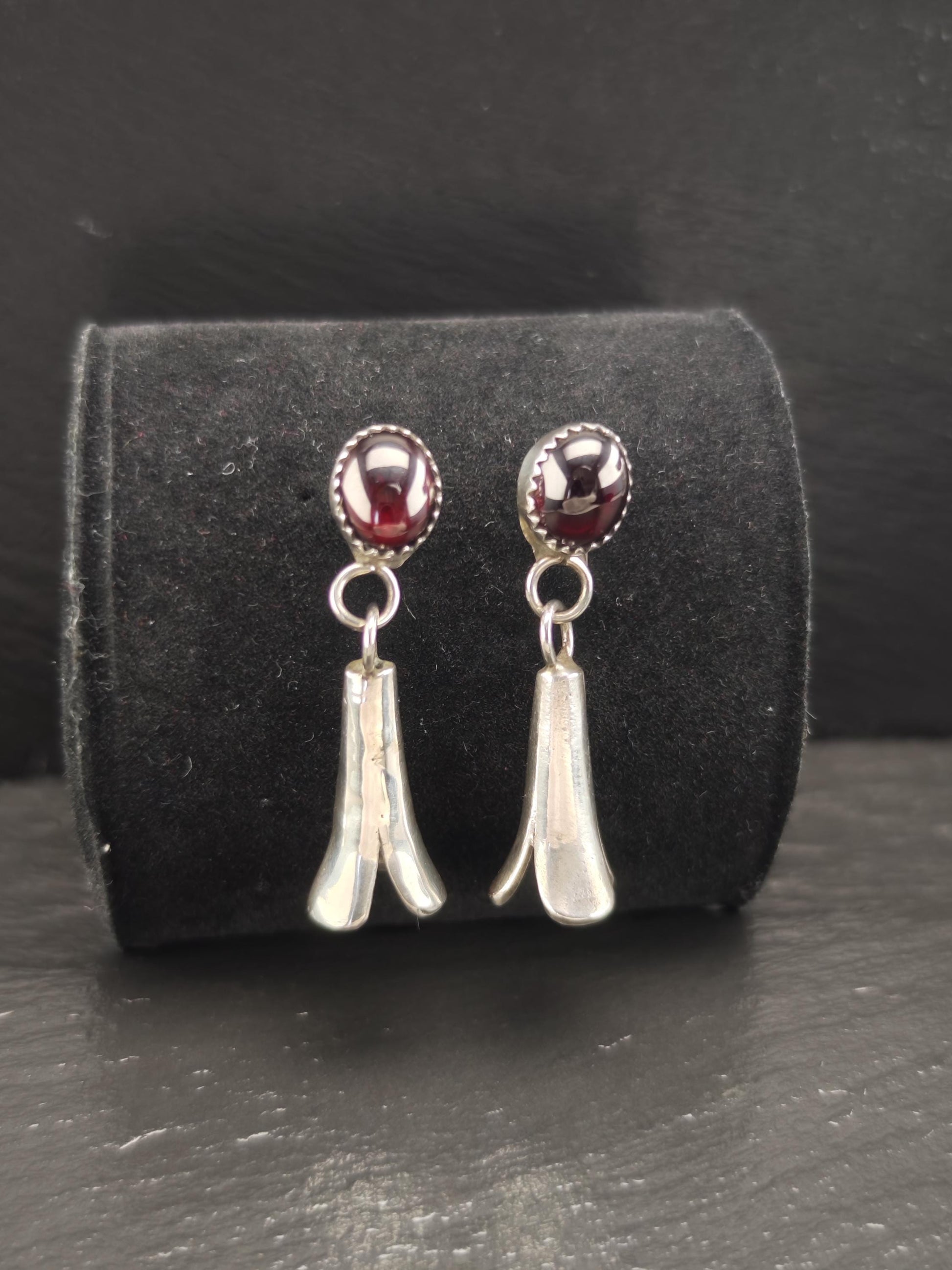Southwest Red Dark Pyrope Garnet Squash Blossom Stud/Dangle Earrings Sterling Silver