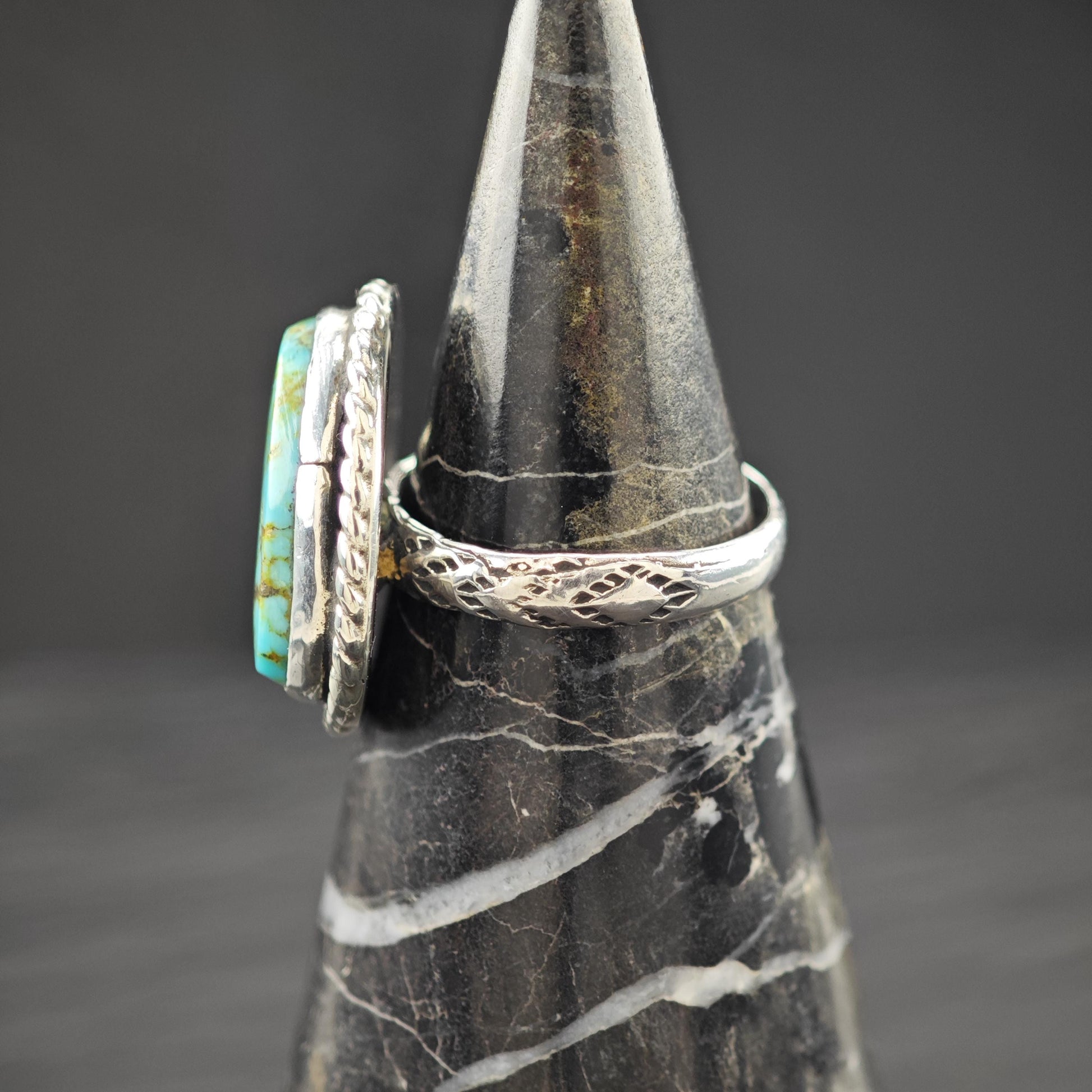 Discover the timeless charm of this vintage sterling silver ring, featuring a captivating Southwest spiderweb turquoise stone that echoes Native American artistry. Crafted with care, this piece blends authentic heritage with elegant design, making it a unique treasure for anyone who appreciates sterling silver rings. Whether you're searching for a meaningful gift for her or adding to your collection of vintage jewelry, this turquoise ring offers both beauty and history.