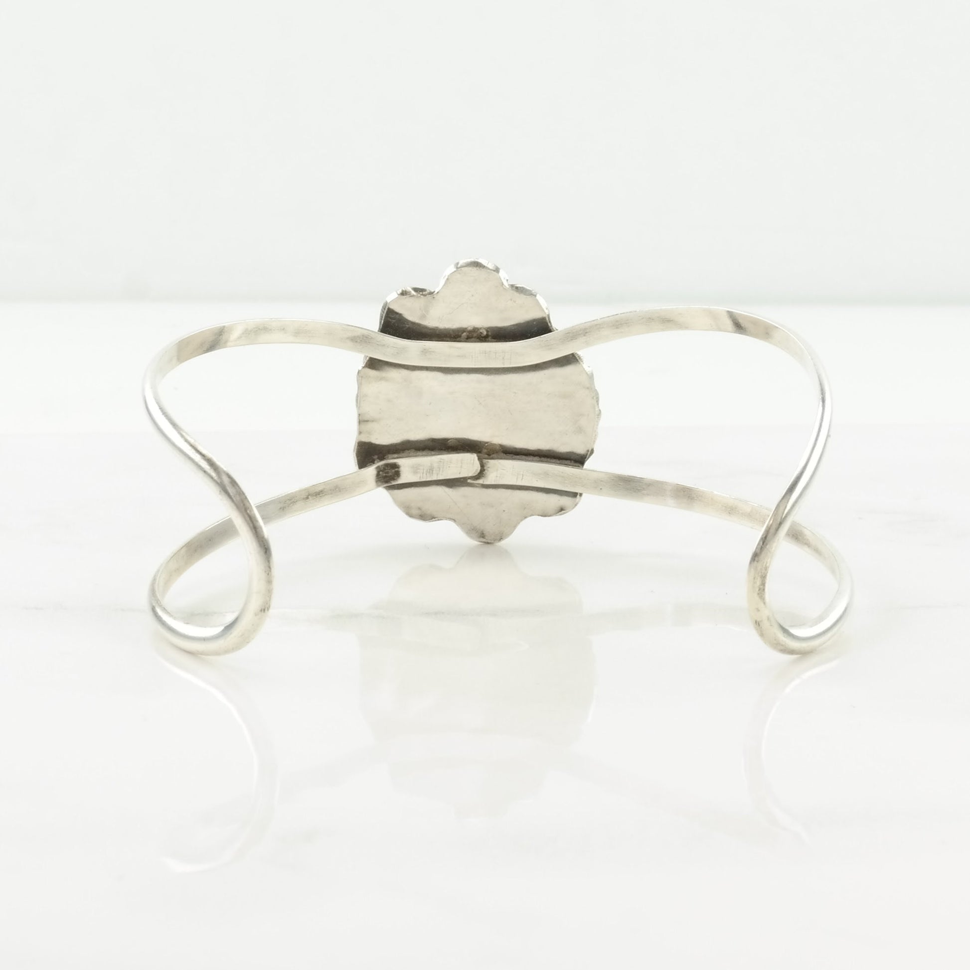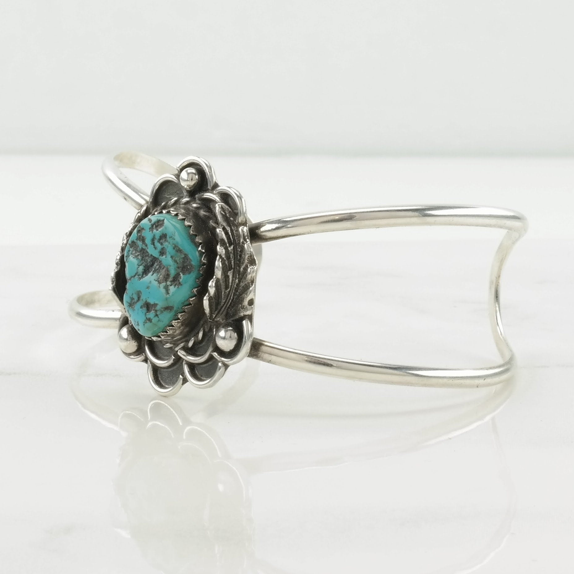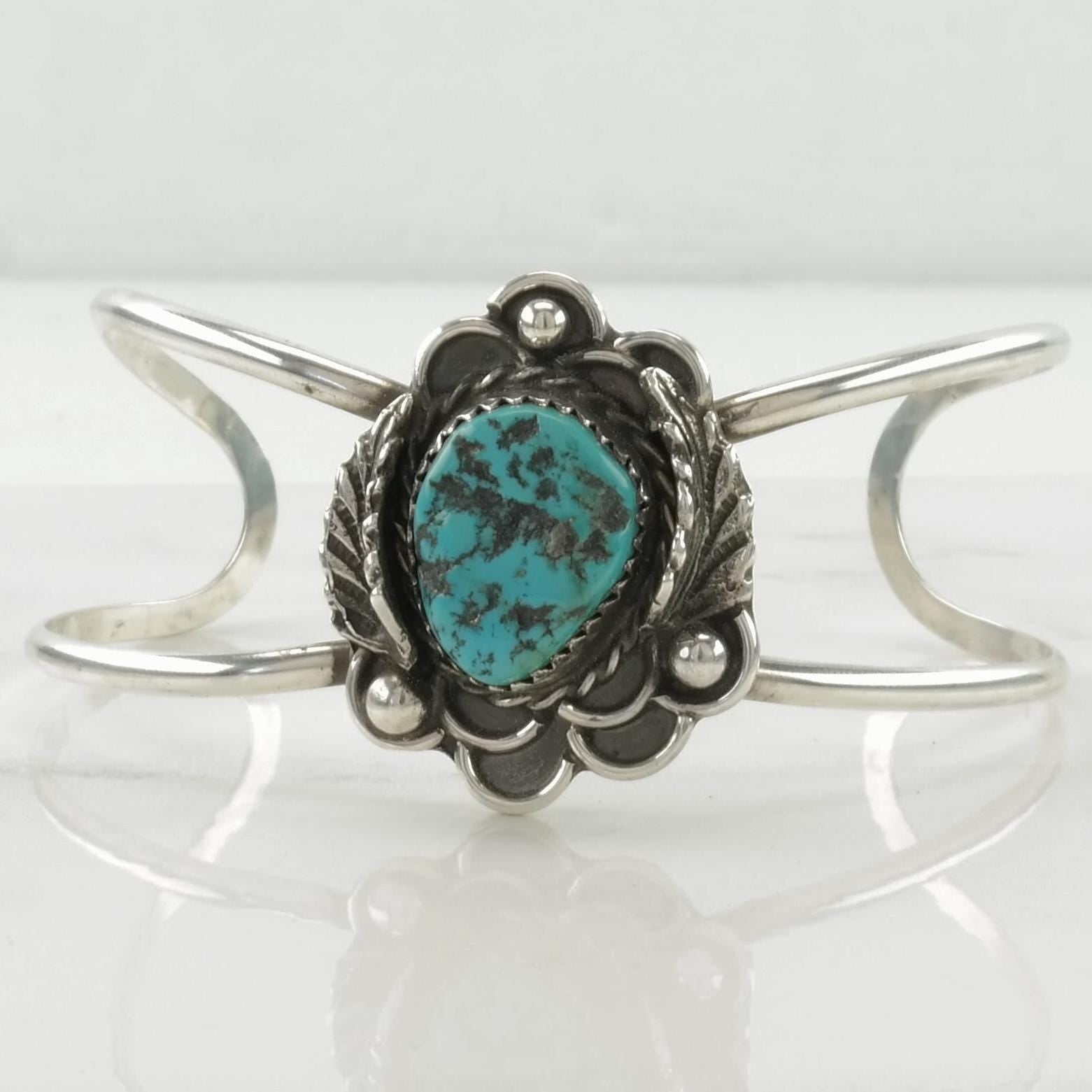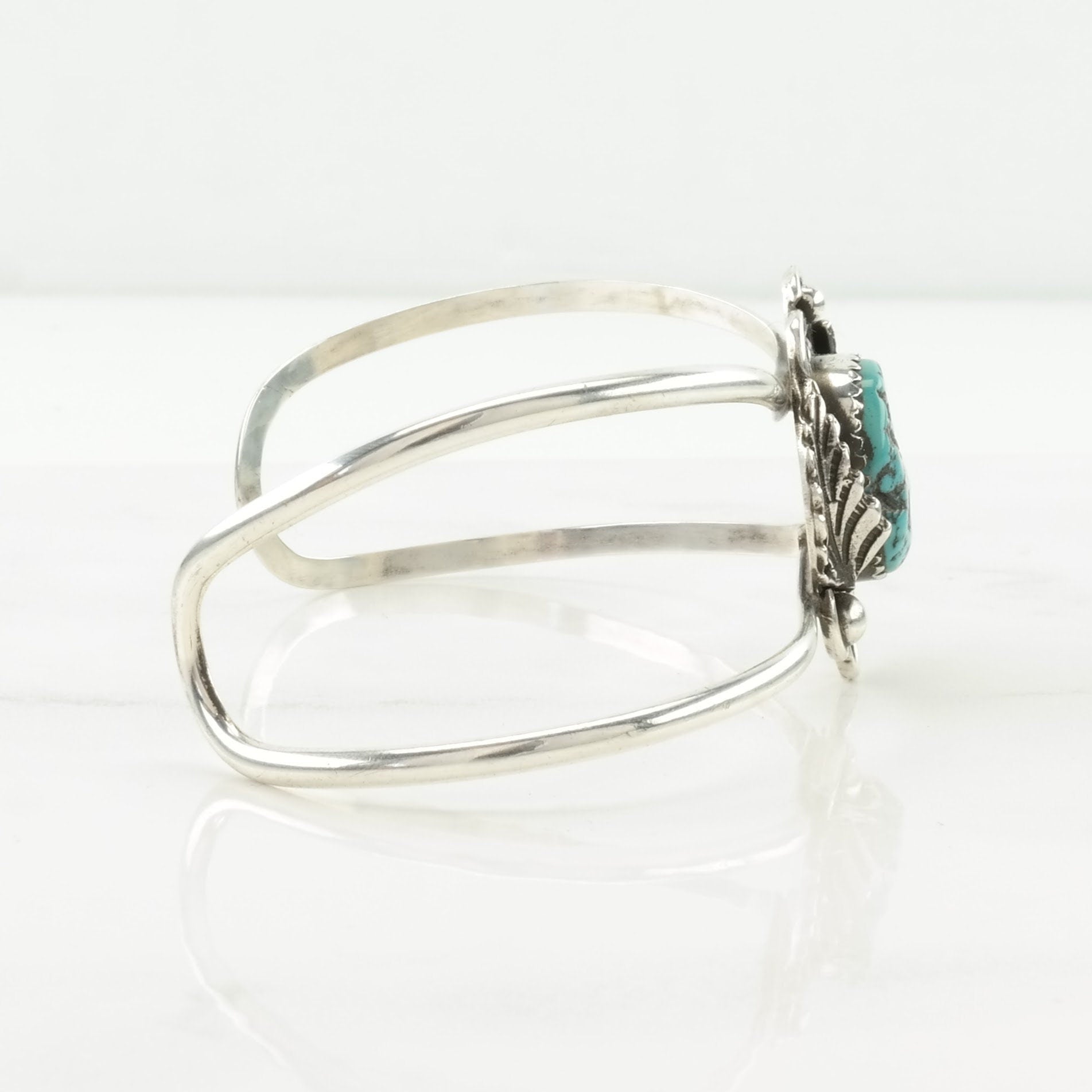 Southwest Sterling Silver Cuff Bracelet Blue Turquoise Leaf