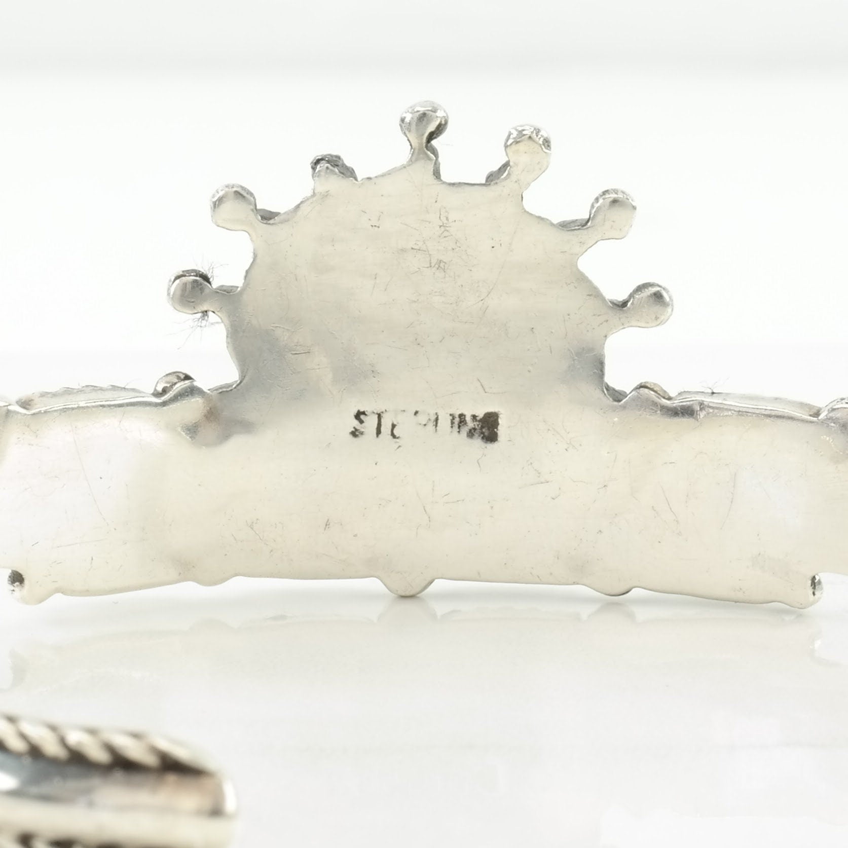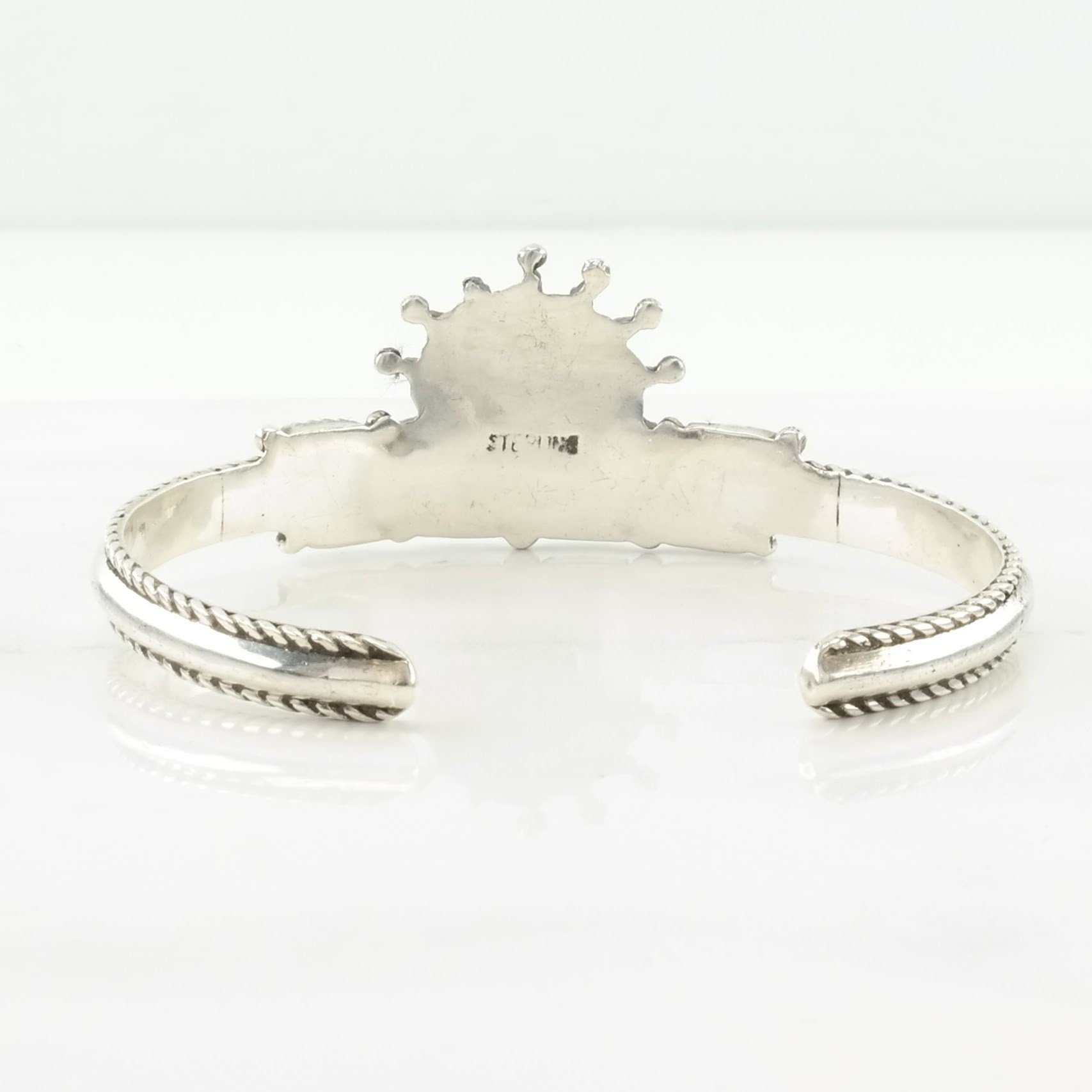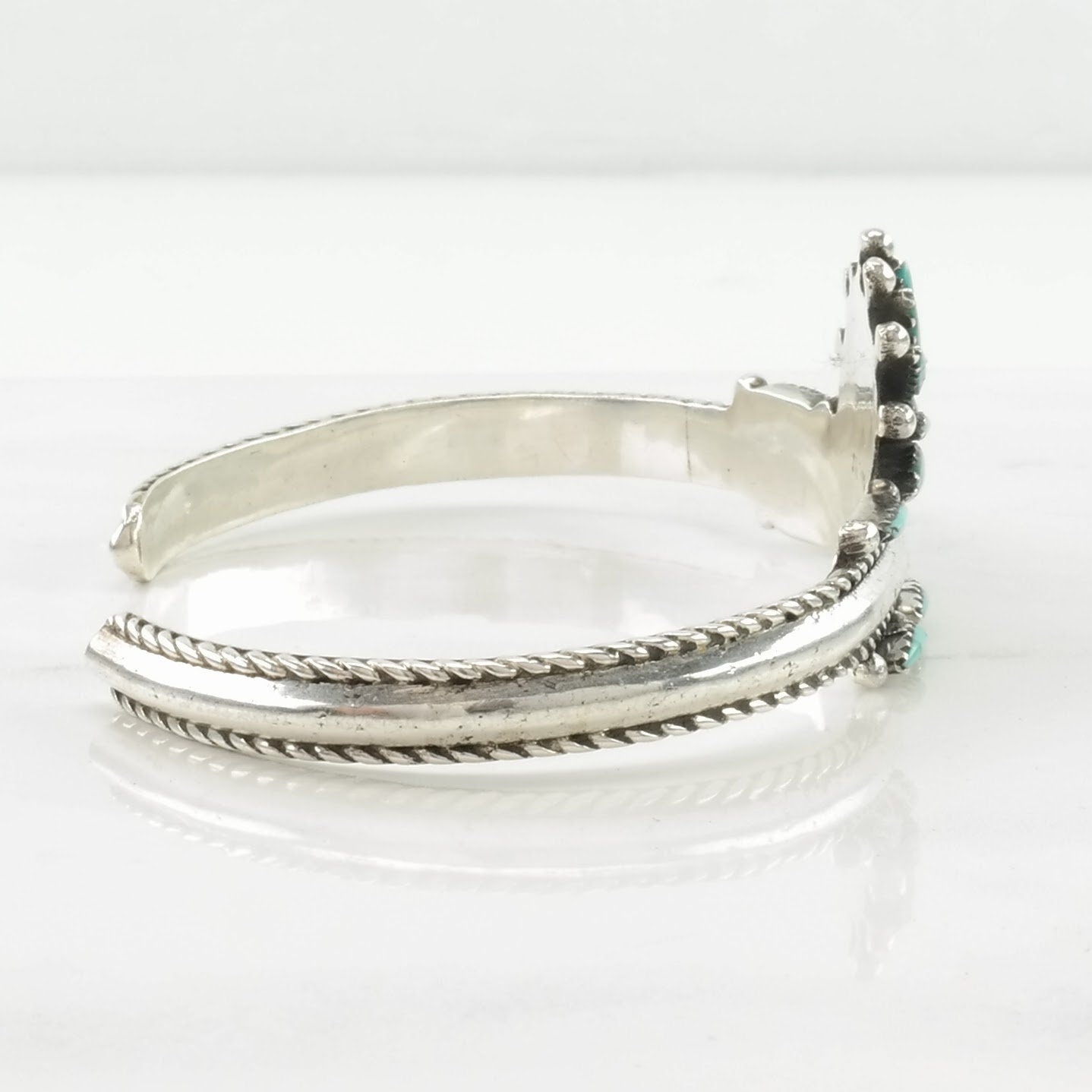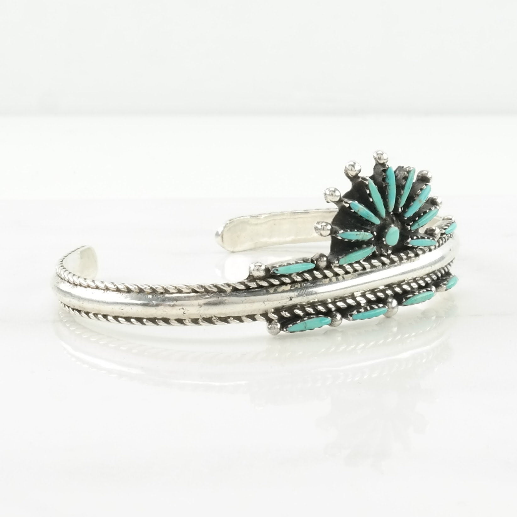 Southwest Sterling Silver Cuff Bracelet Blue Turquoise Needlepoint, Floral