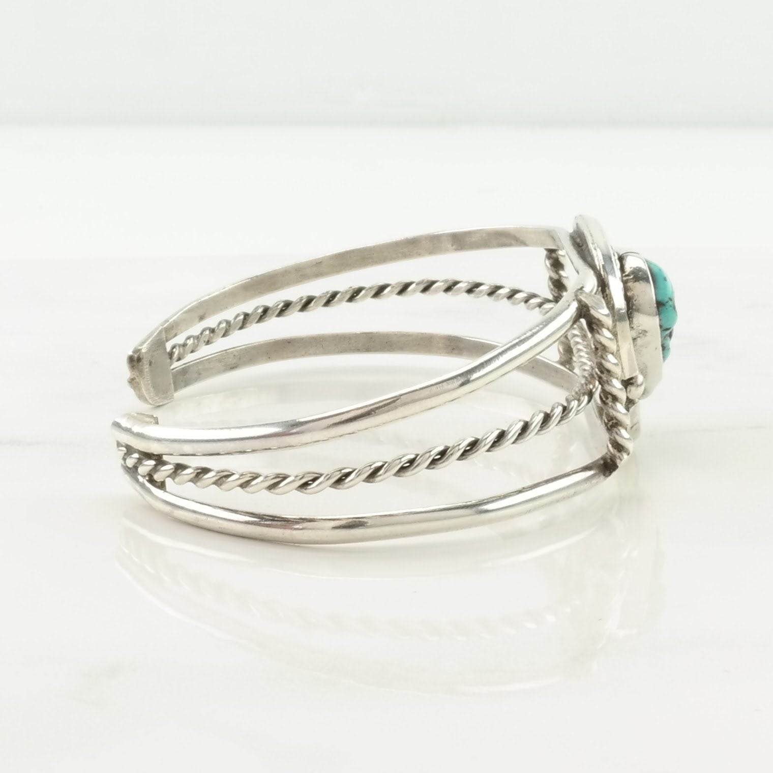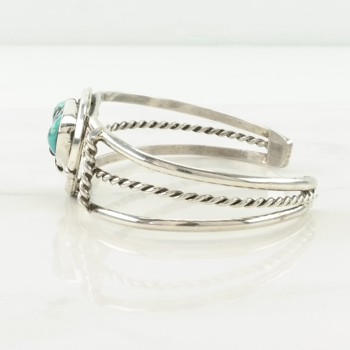 Southwest Sterling Silver Cuff Bracelet Blue Turquoise Rope