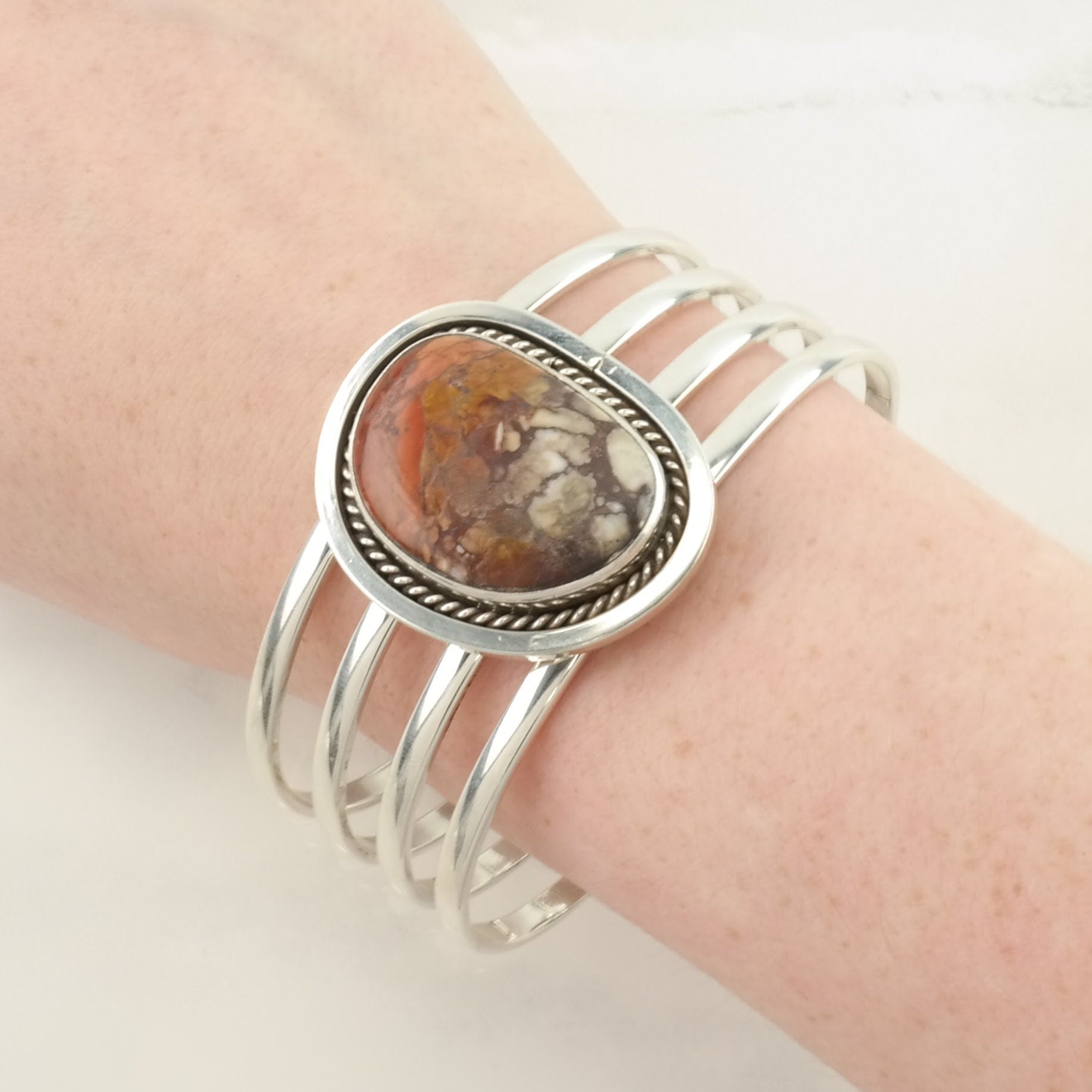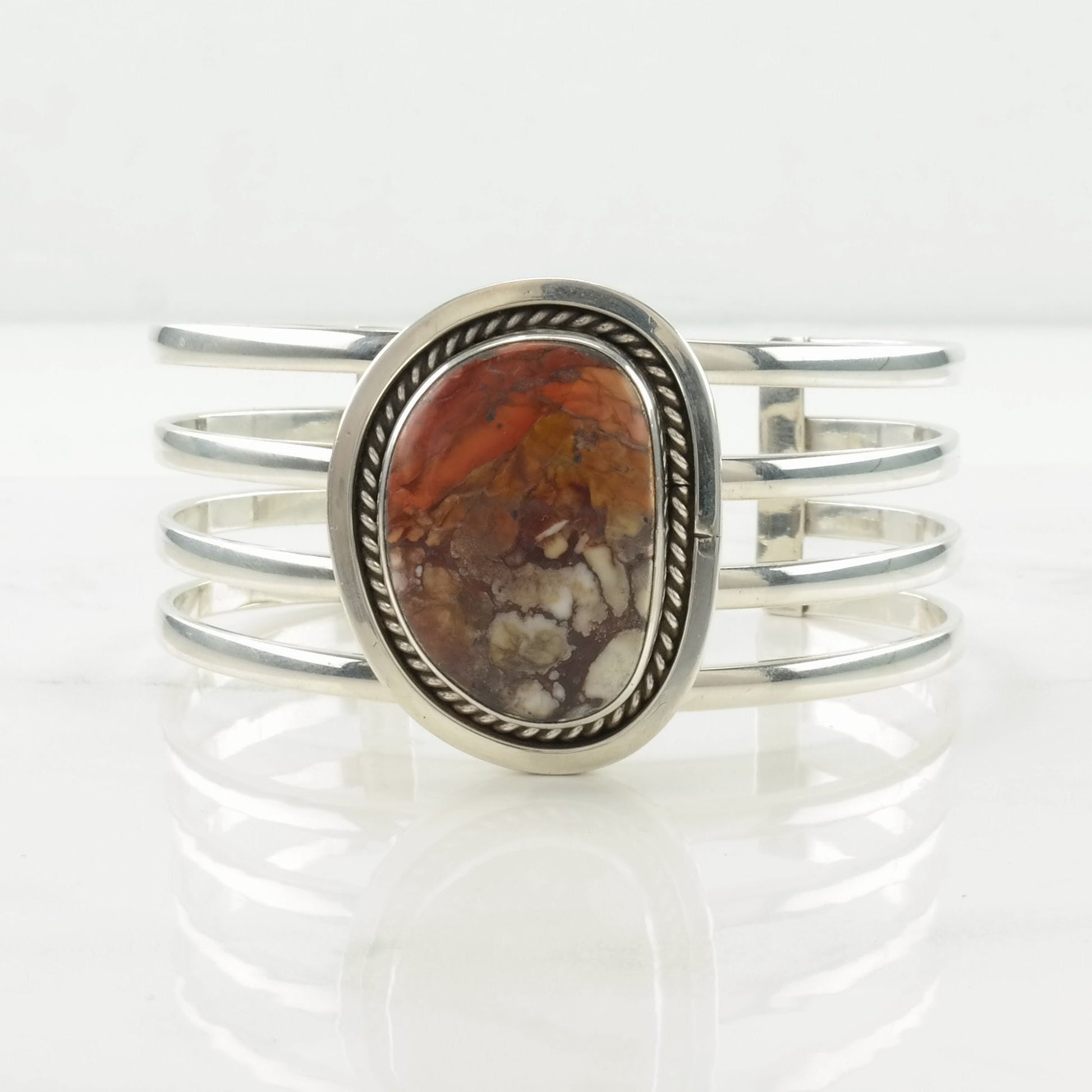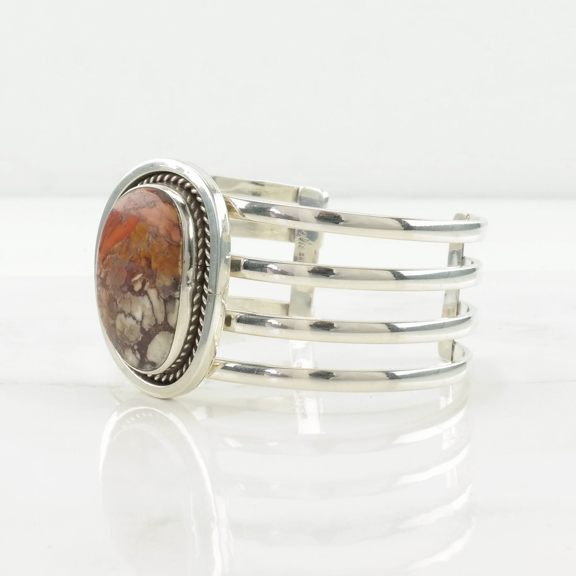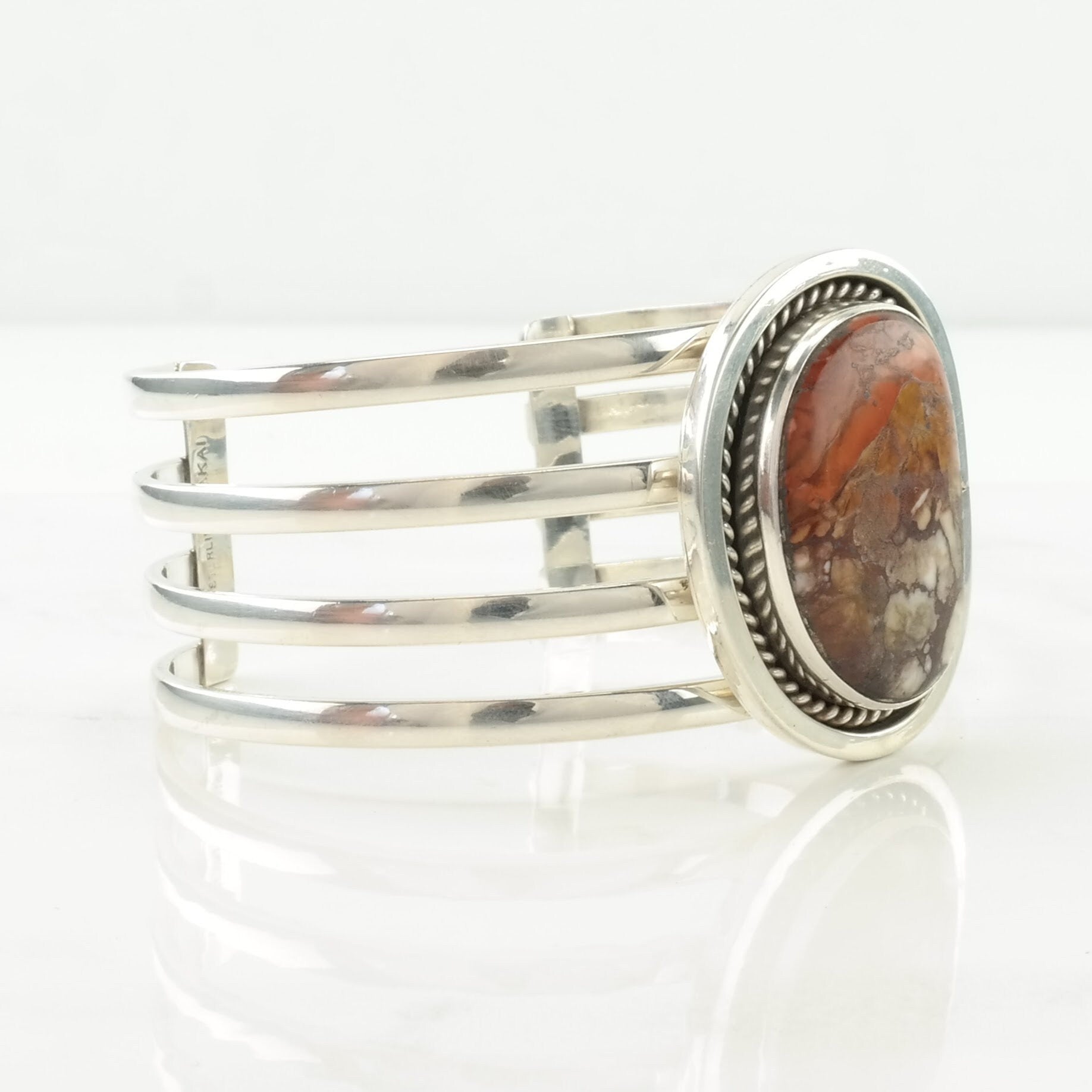 Southwest Sterling Silver Cuff Bracelet Brown Wild Horse