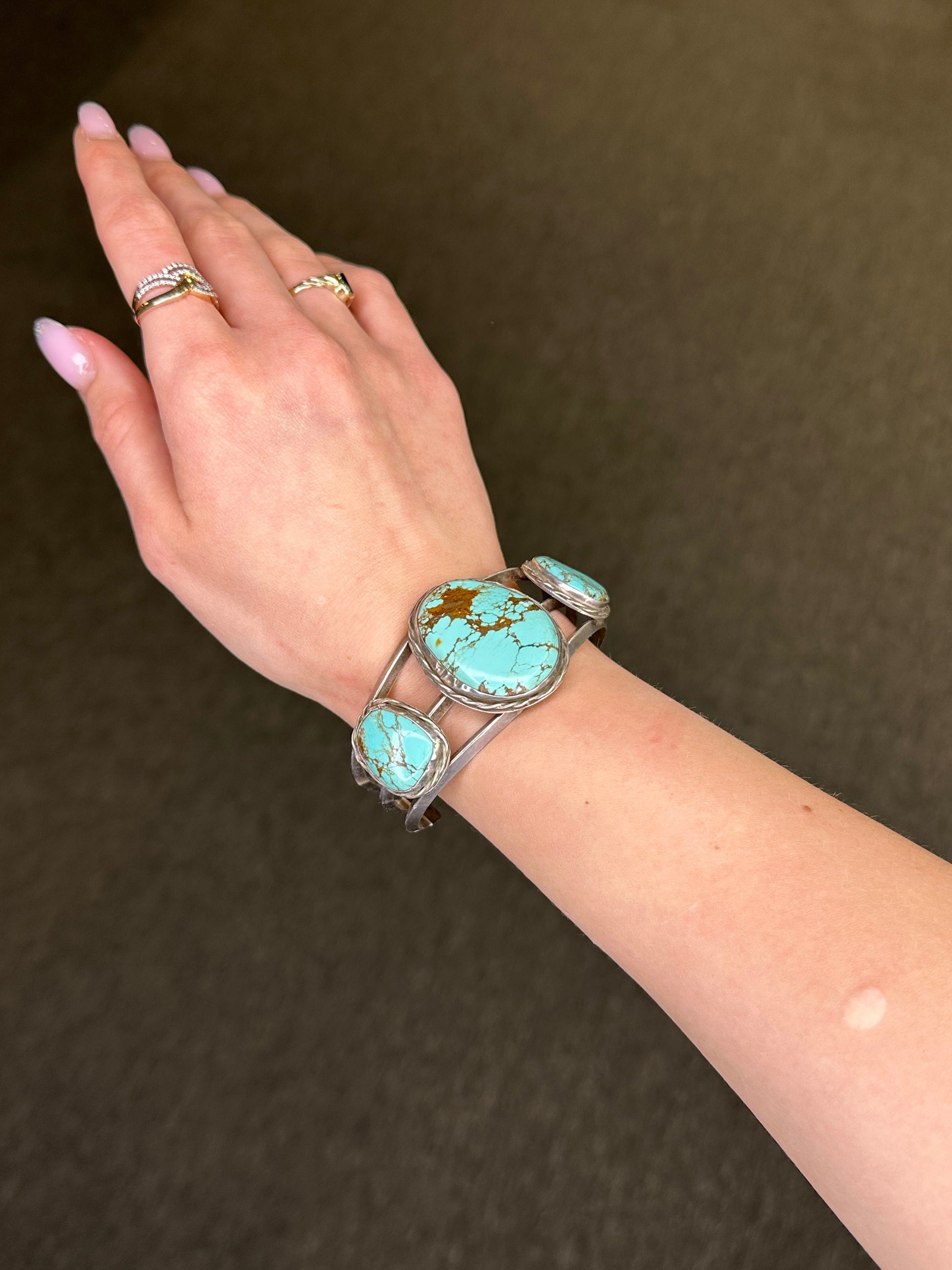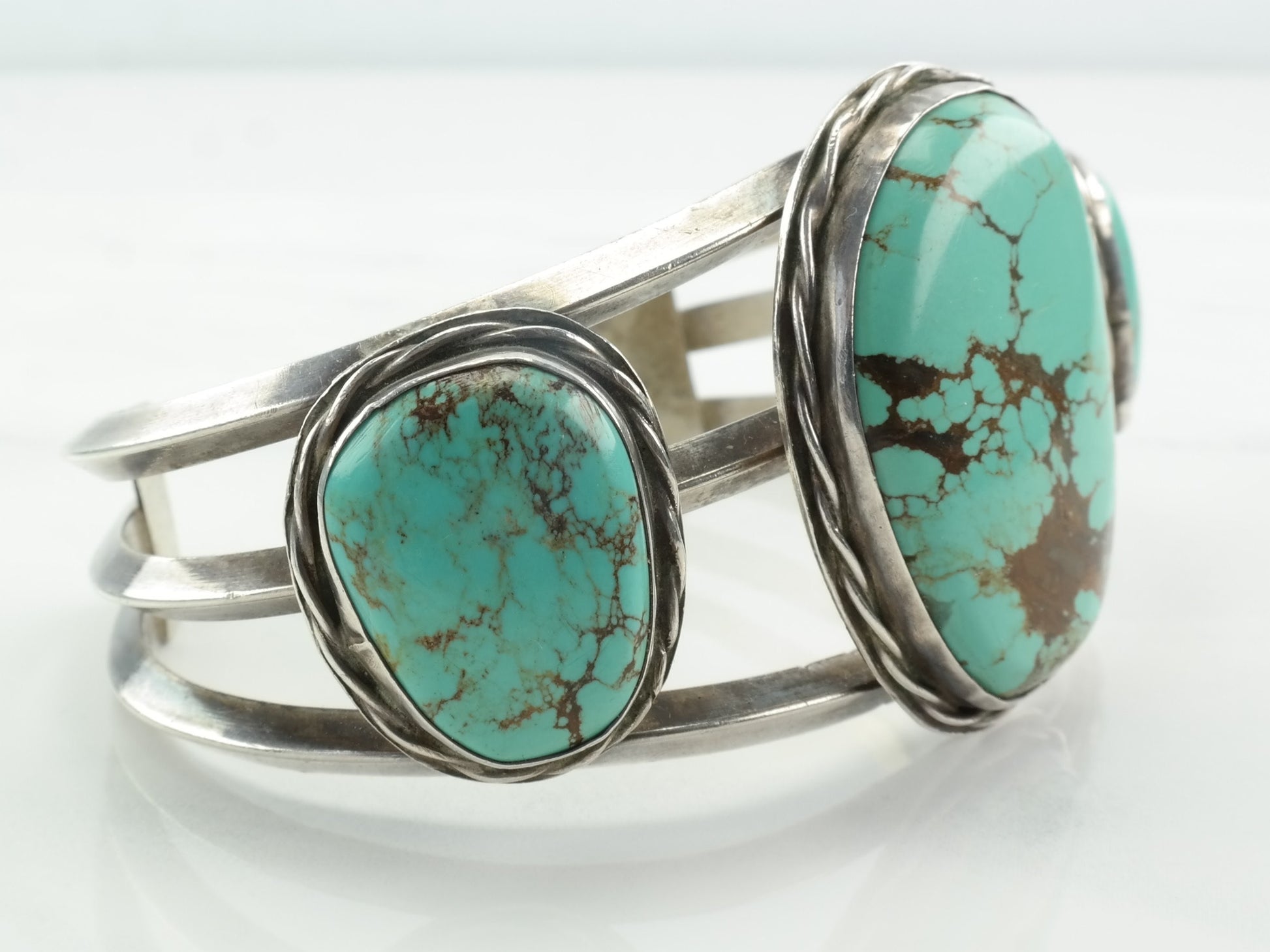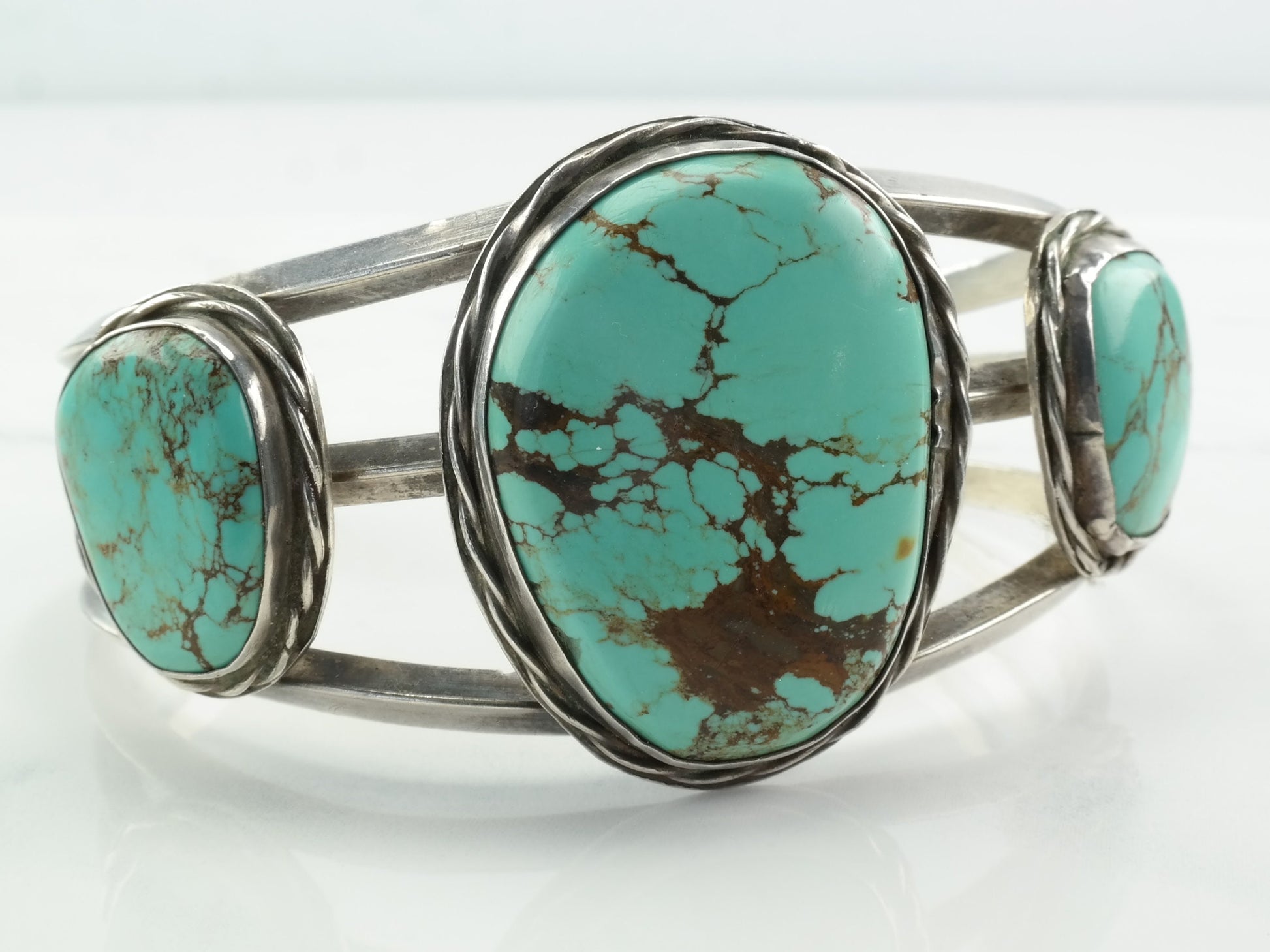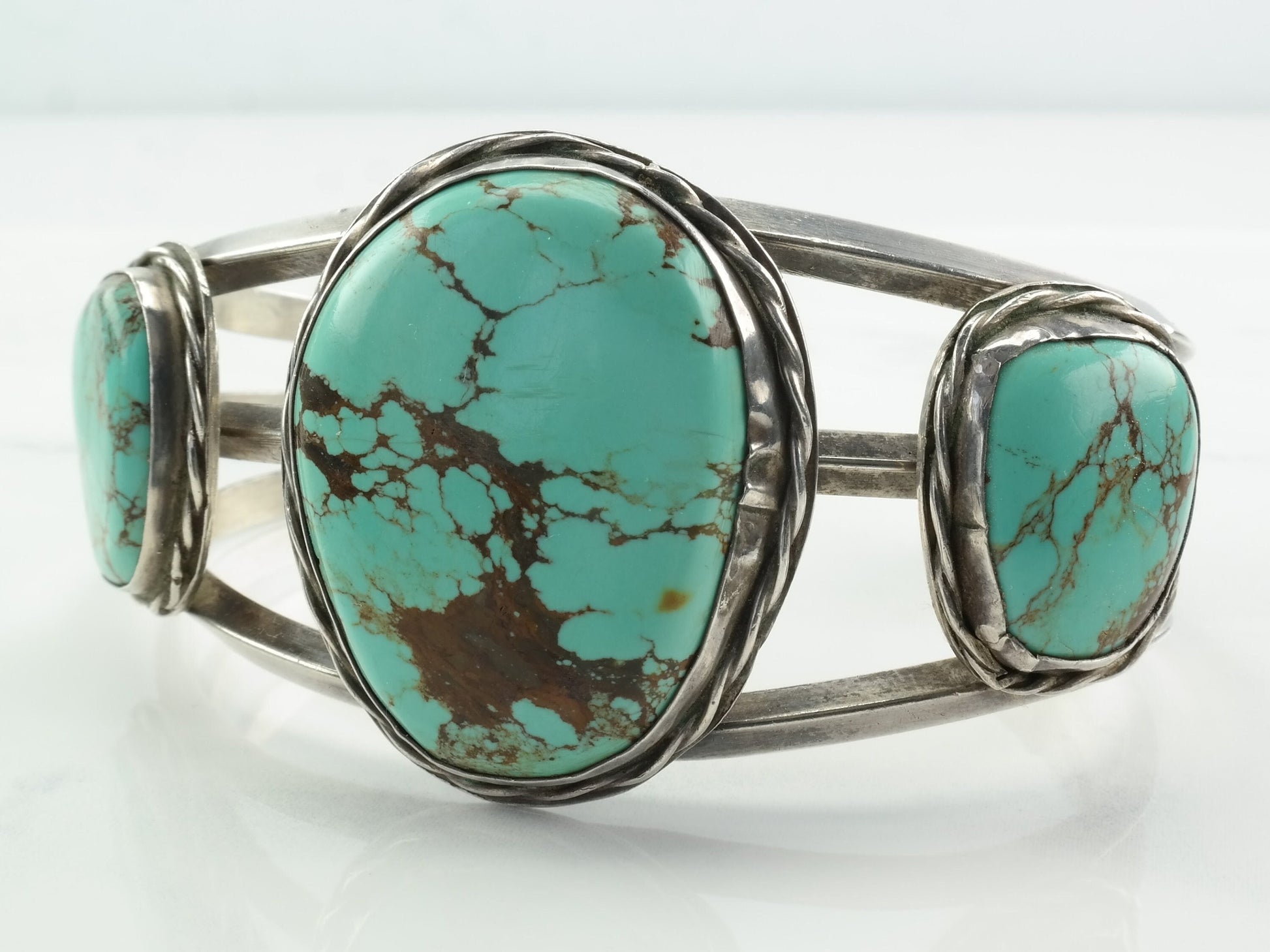 Southwest Sterling Silver Cuff Bracelet Turquoise Number Eight