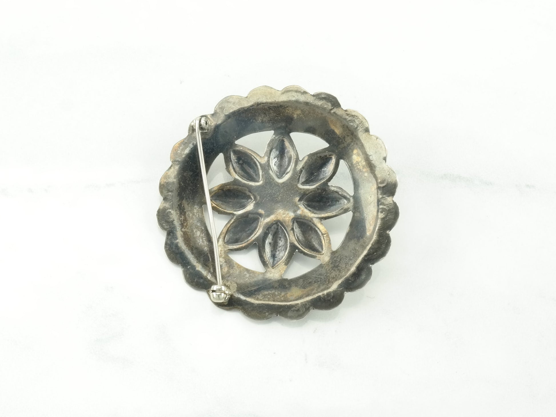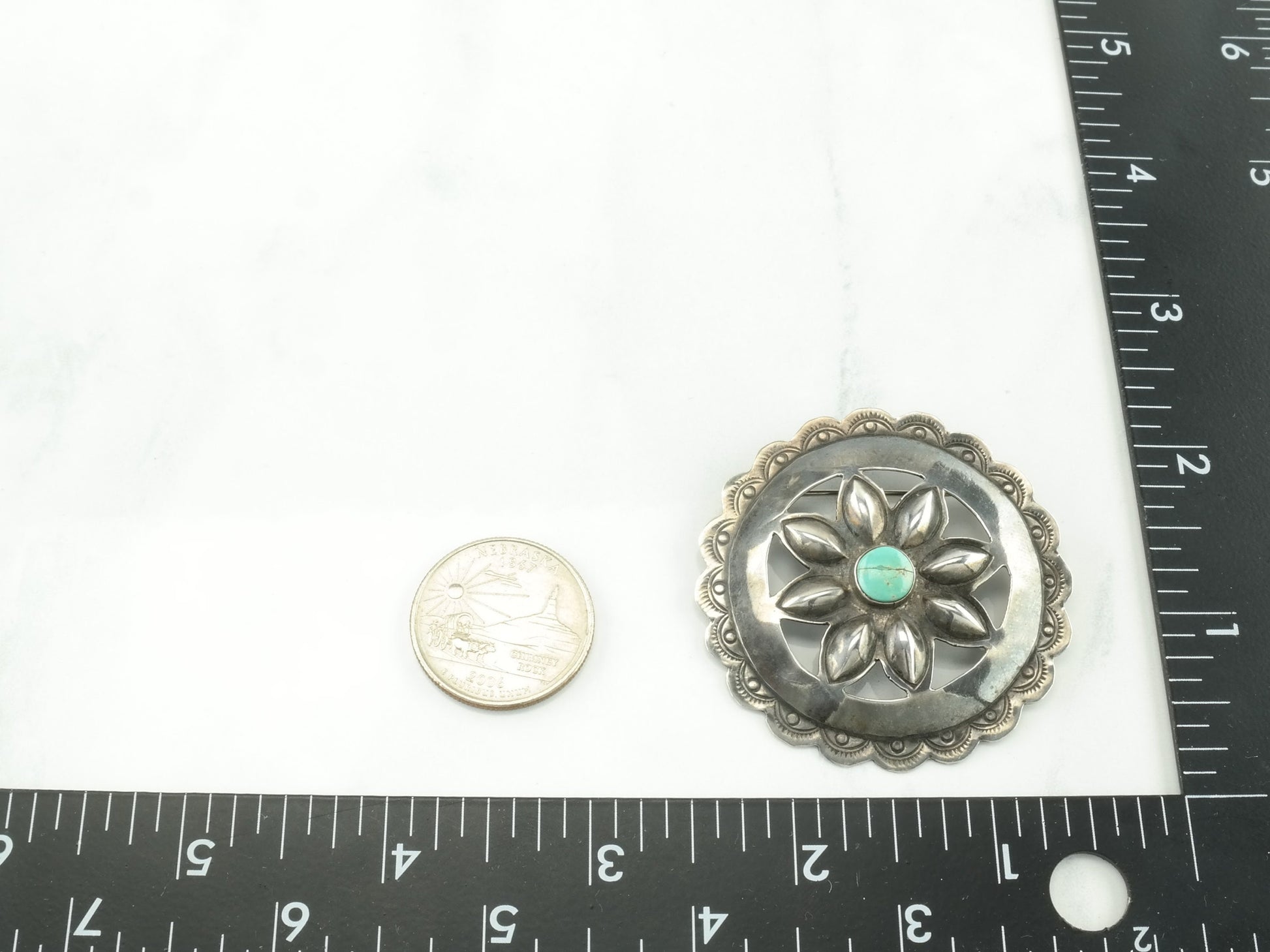 Southwestern Native American Sterling Silver Blue Turquoise Concho Brooch