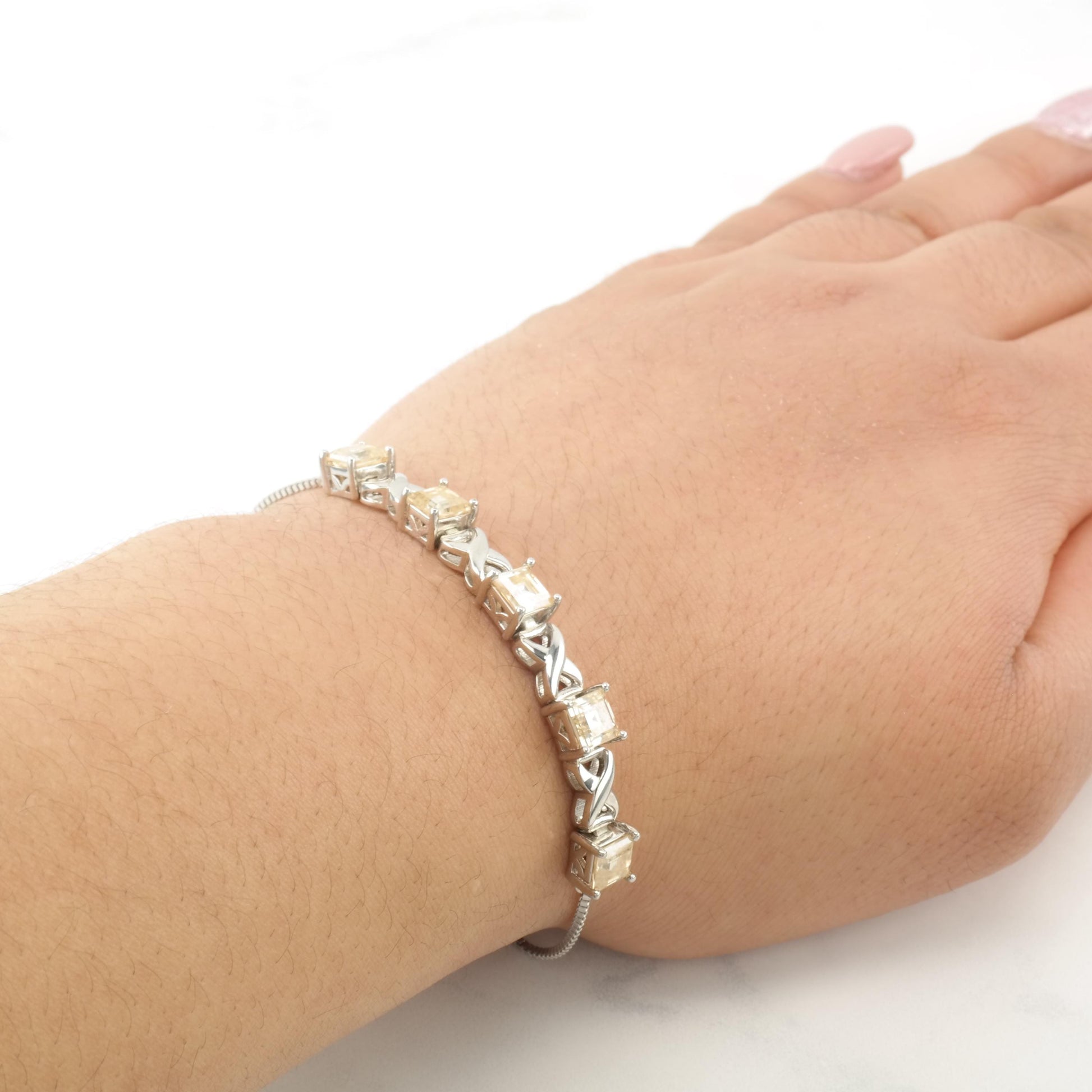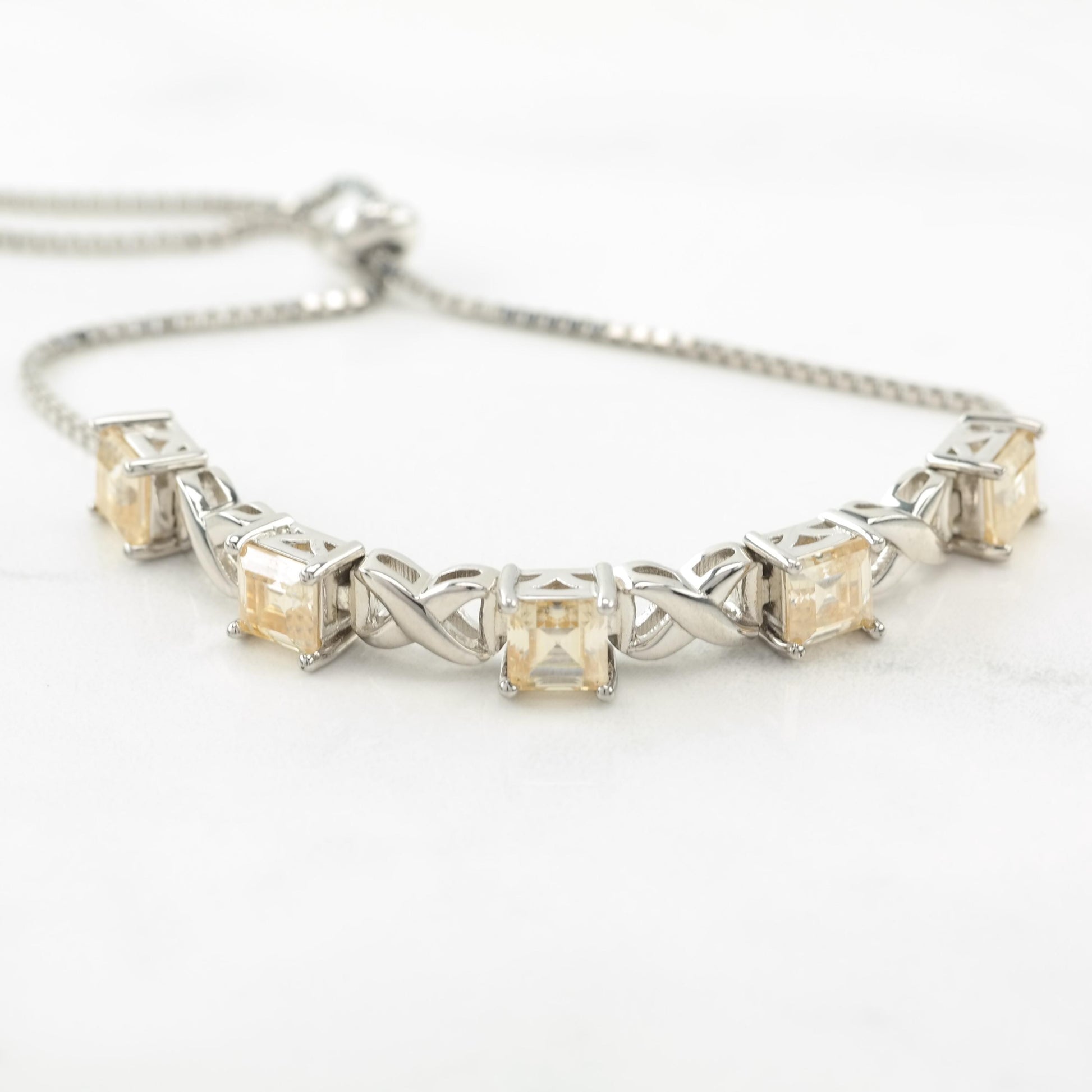 Square Yellow Moissanite Sterling Silver Bolo Bracelet