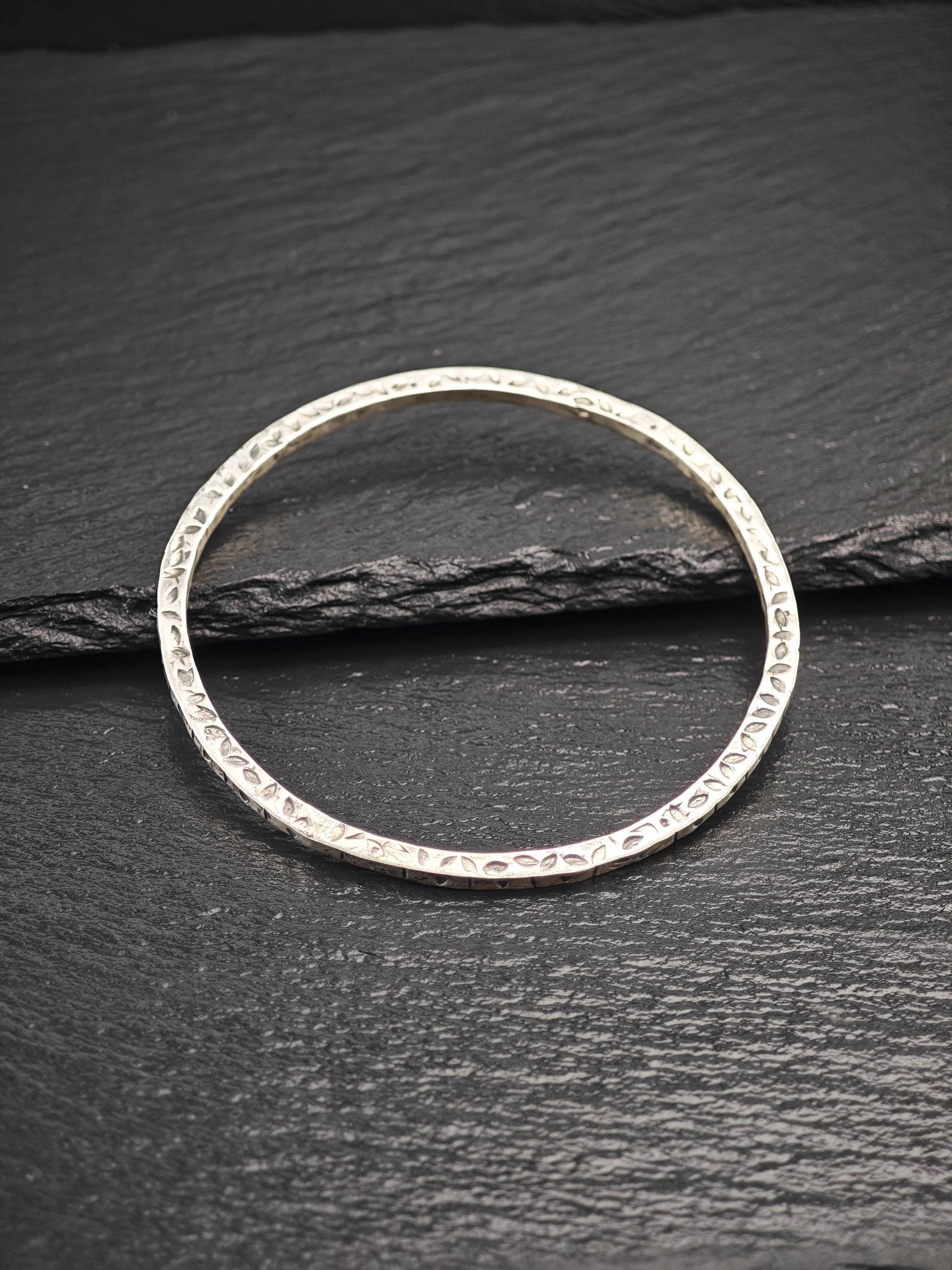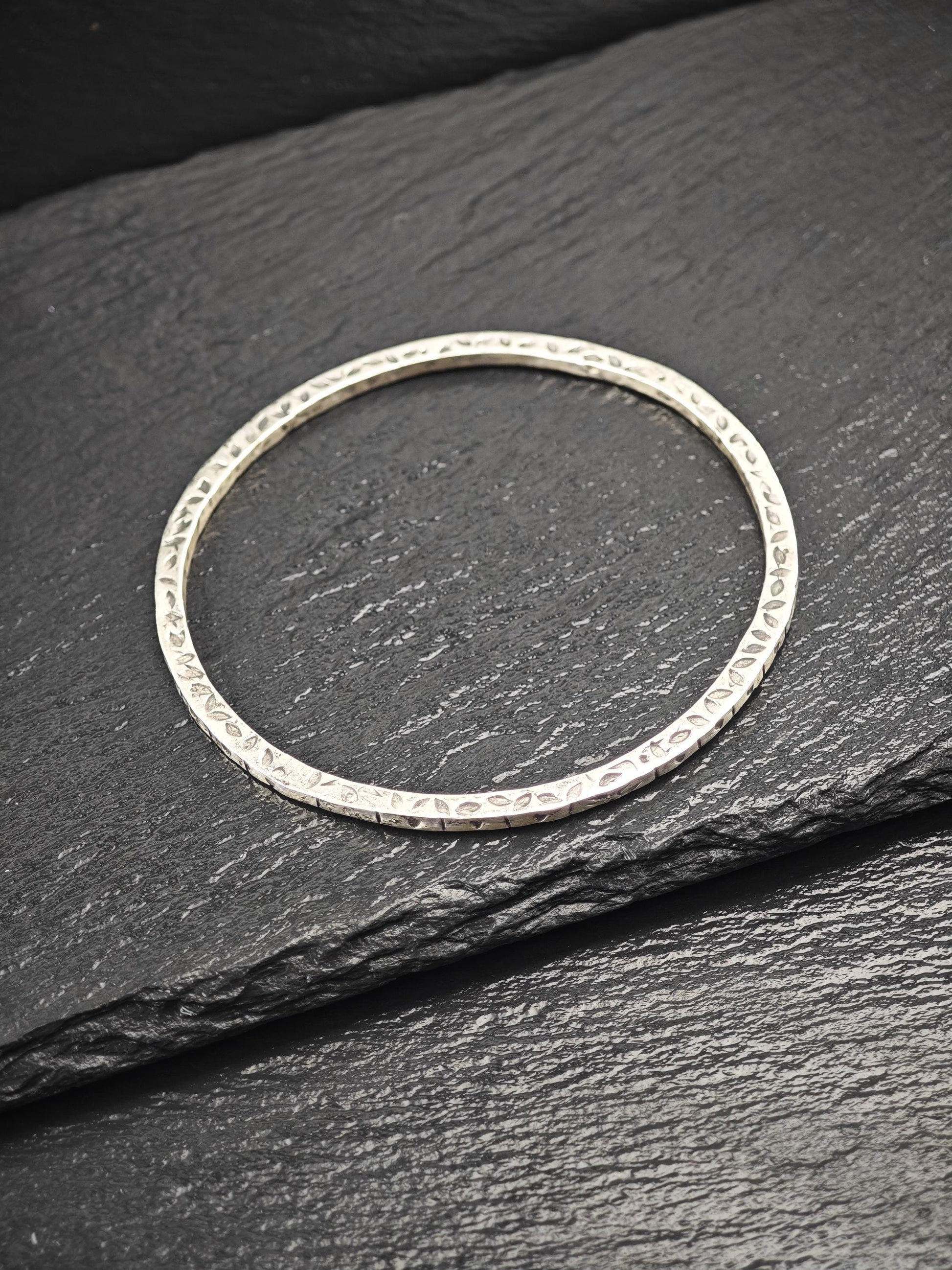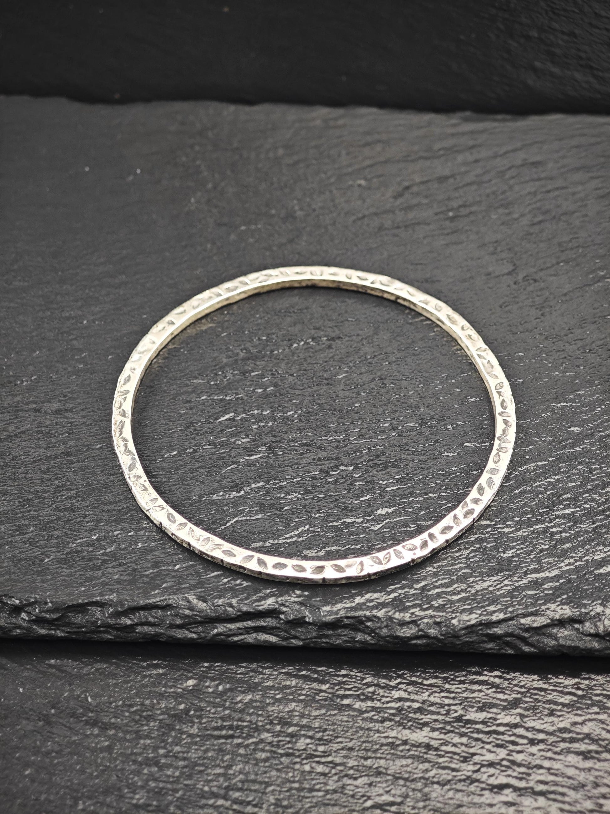 Vintage Foreign Brutalist Bangle Bracelet Sterling Silver Stackable