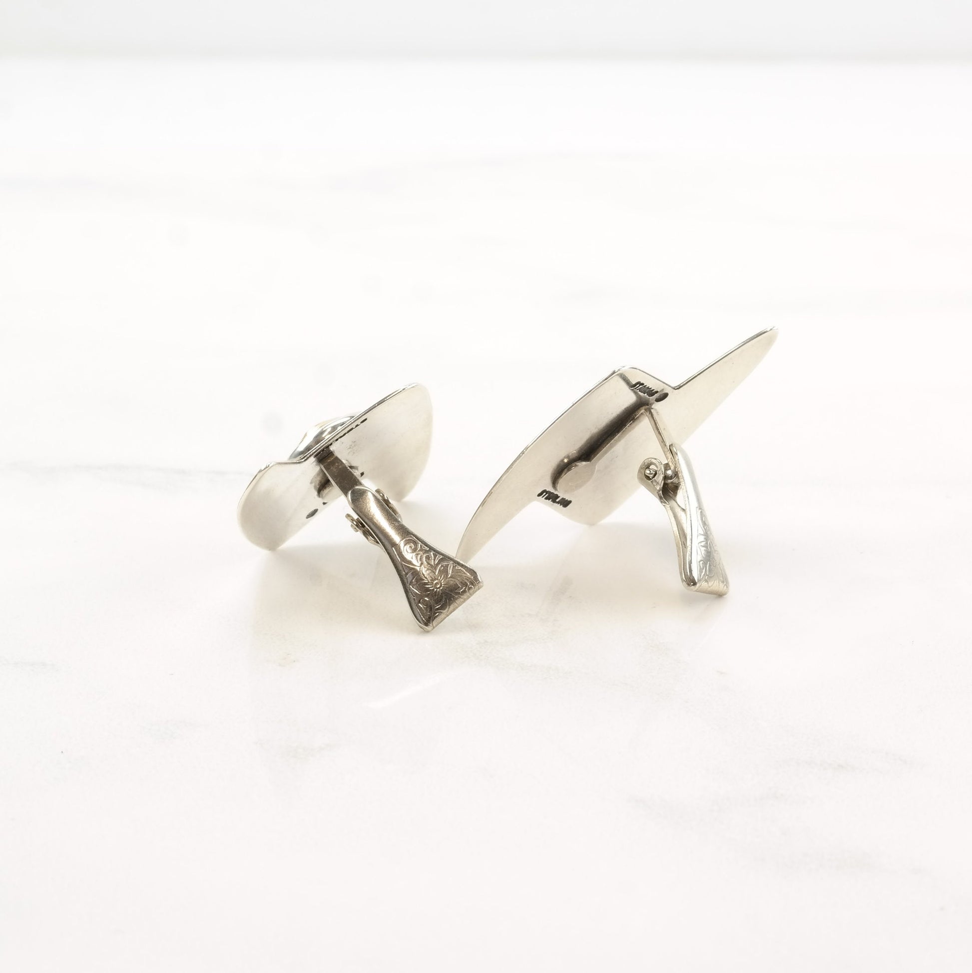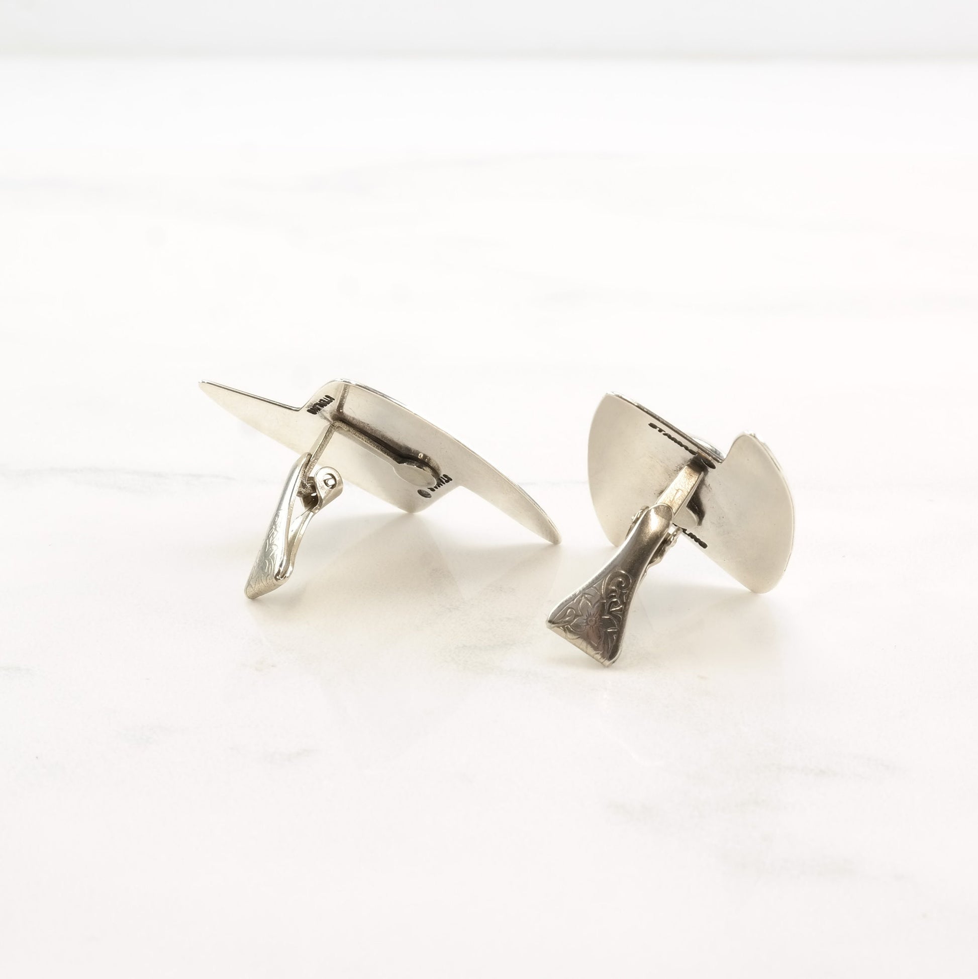 These vintage sterling silver earrings are 1 3/8" inches long, and 1" inch wide