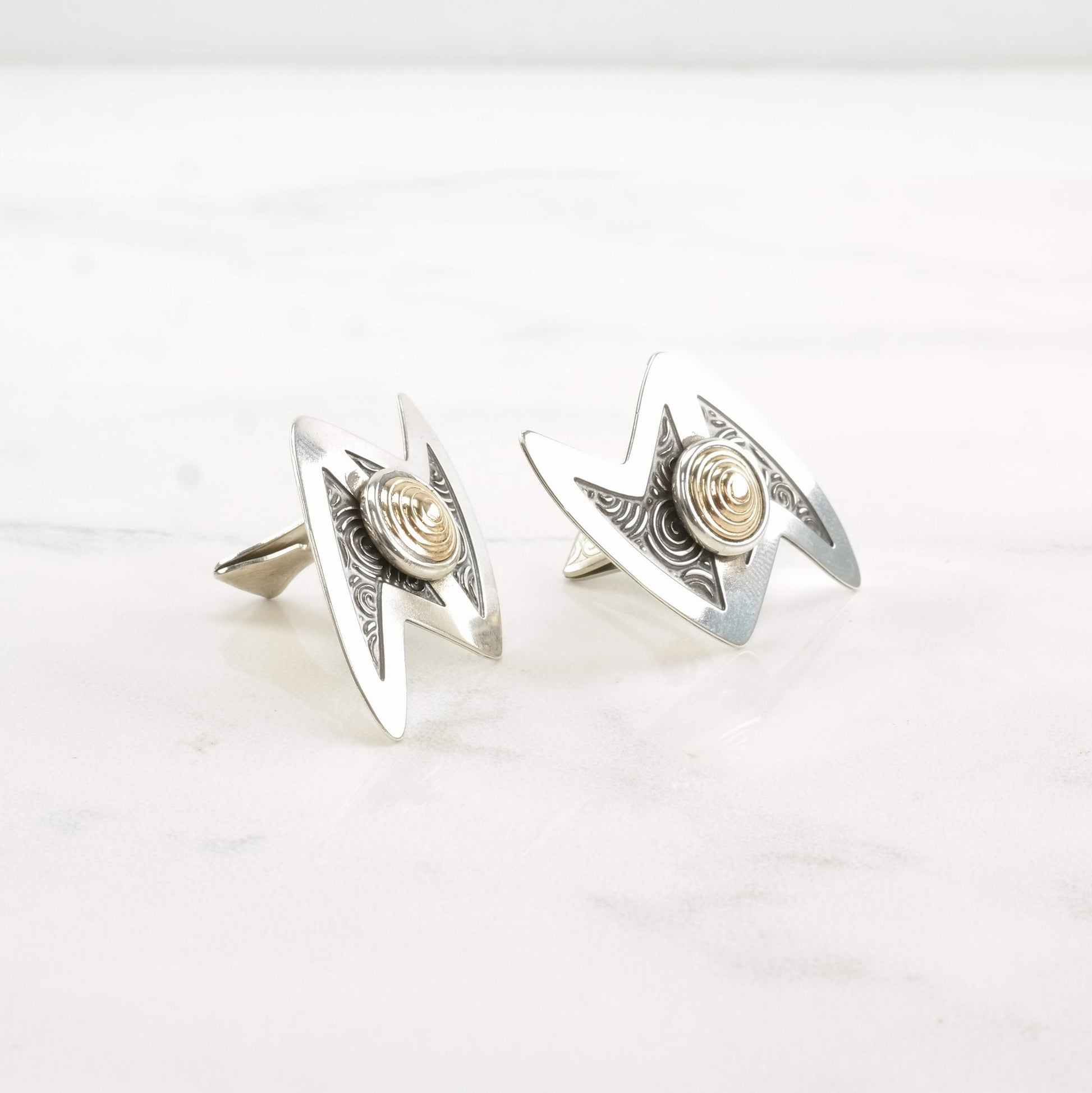 Stamas Sterling Silver Gold Accent Two Tone Swirl Earrings Clip On