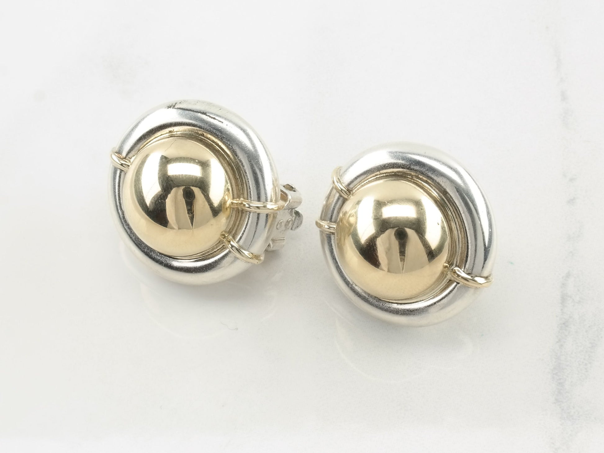 Sterling Silver 14k Gold Dome Earrings Omega back