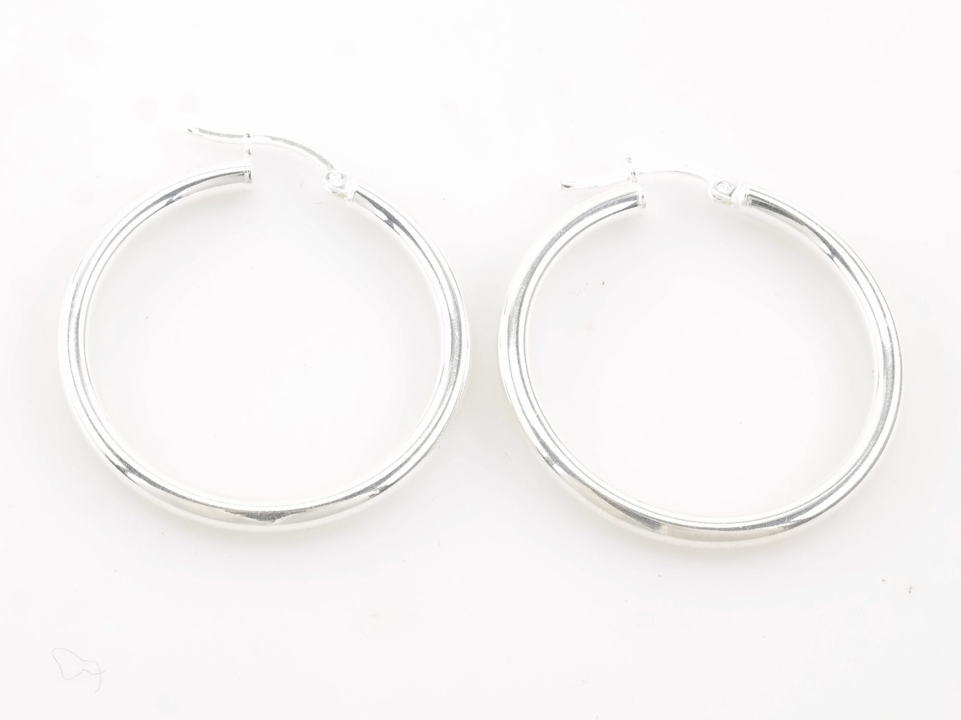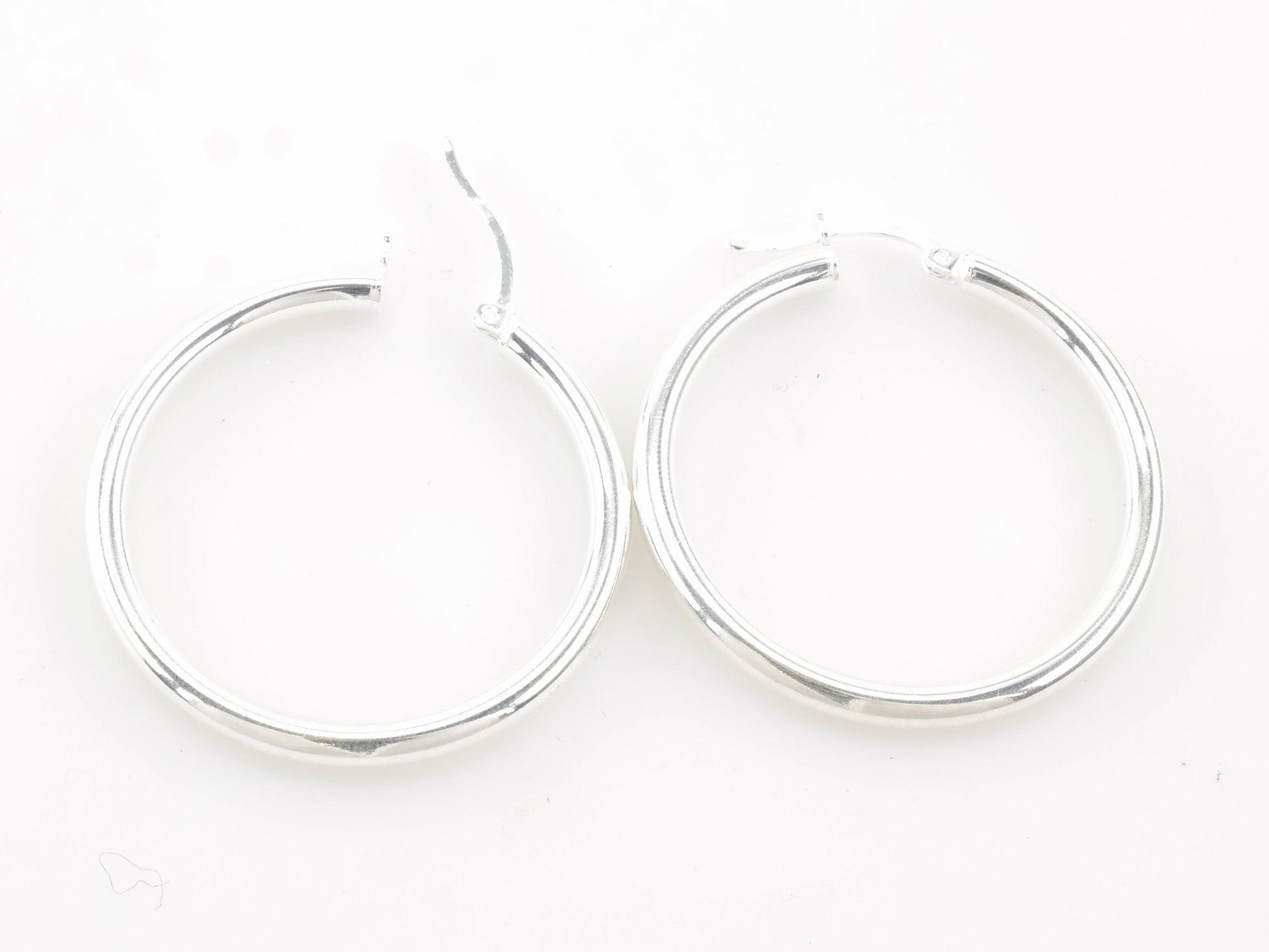 Sterling Silver 3mm Wide Earrings Hoop 1 3/8"