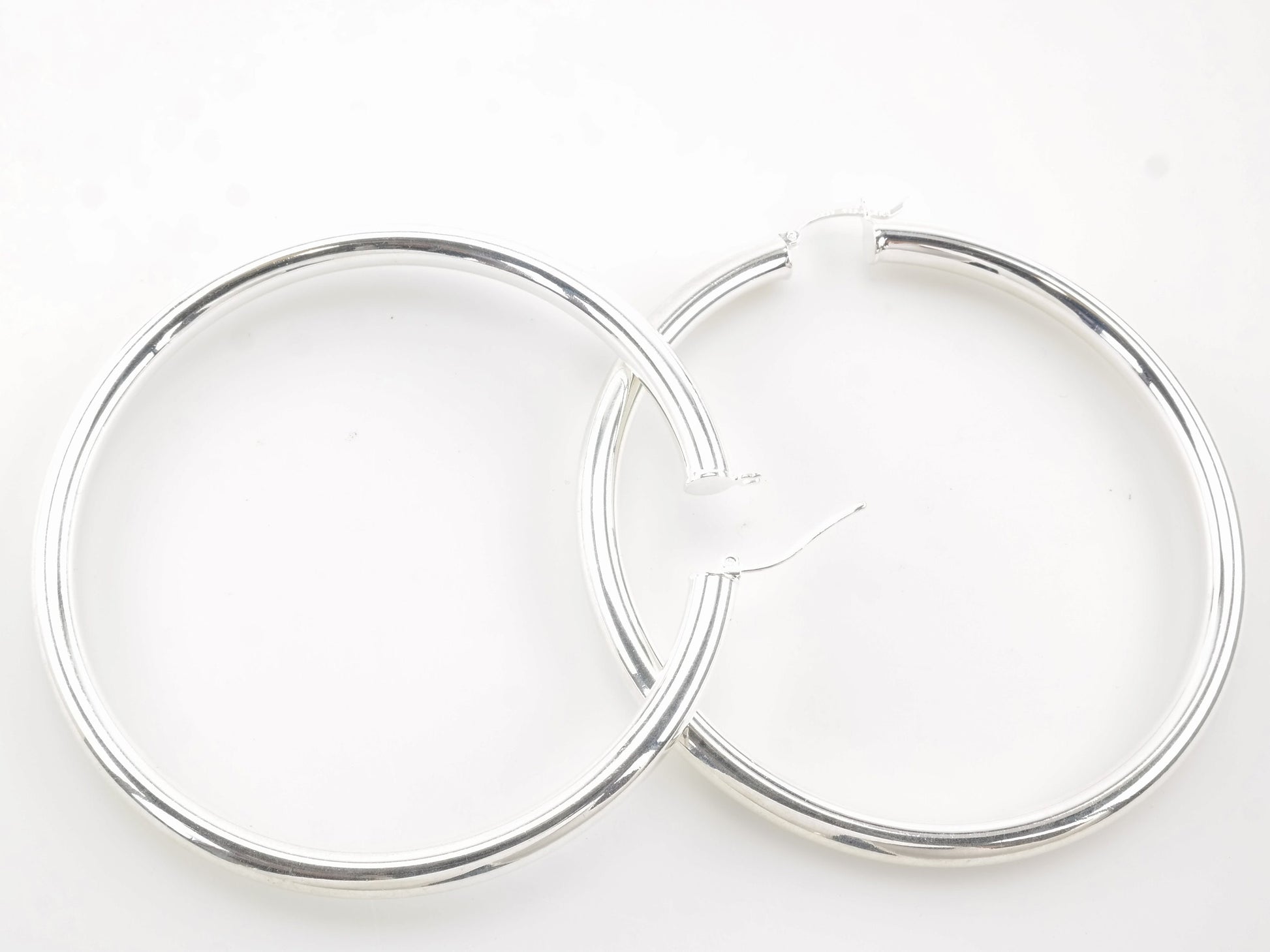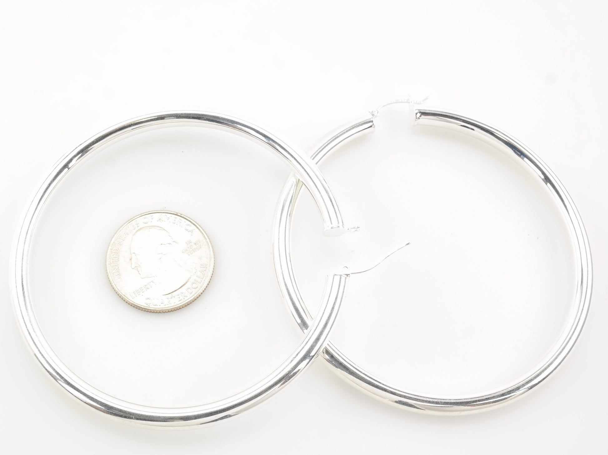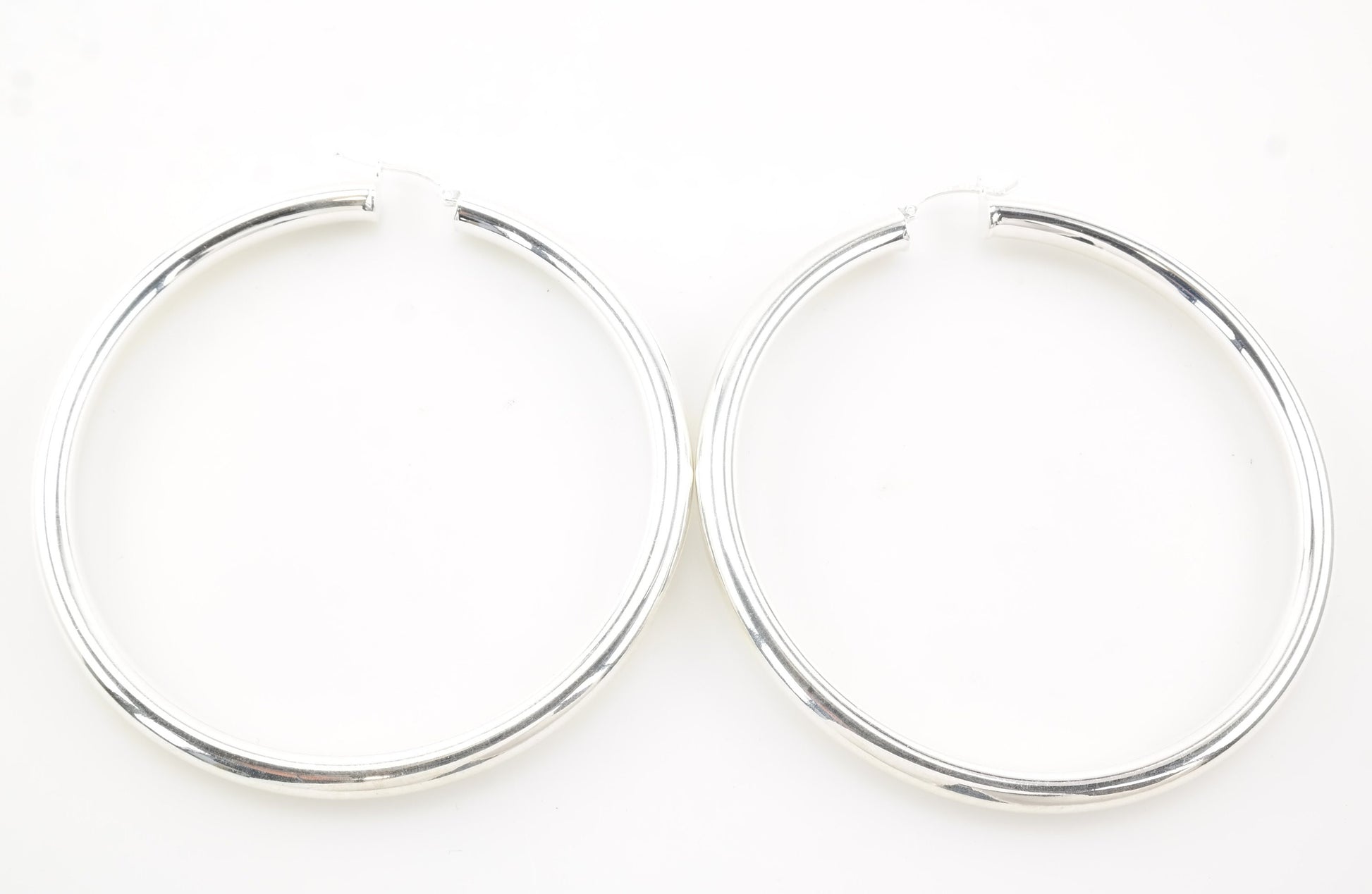 Sterling Silver 5mm Wide Earrings Hoop 2 7/8"