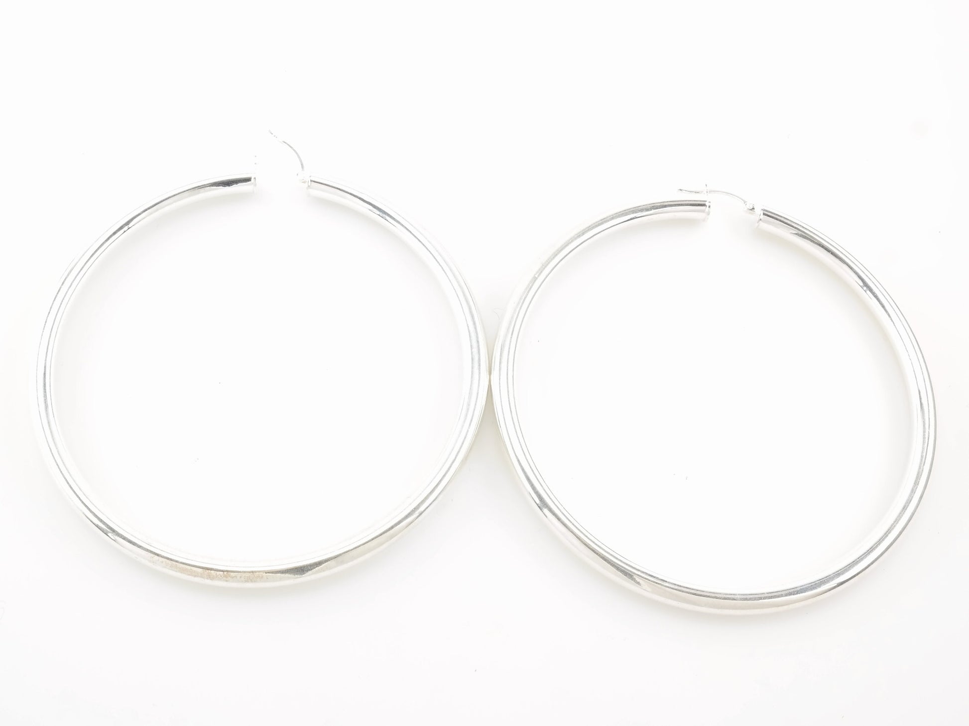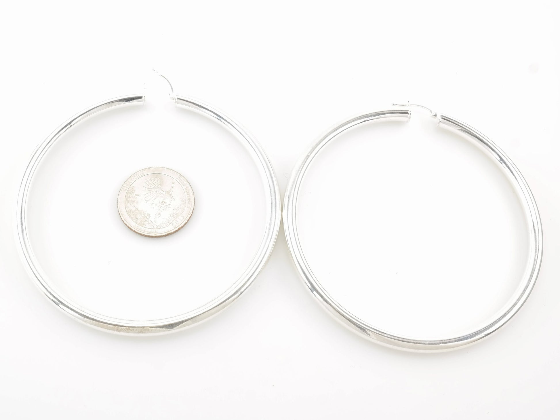 Sterling Silver 5mm Wide Earrings Hoop 3"