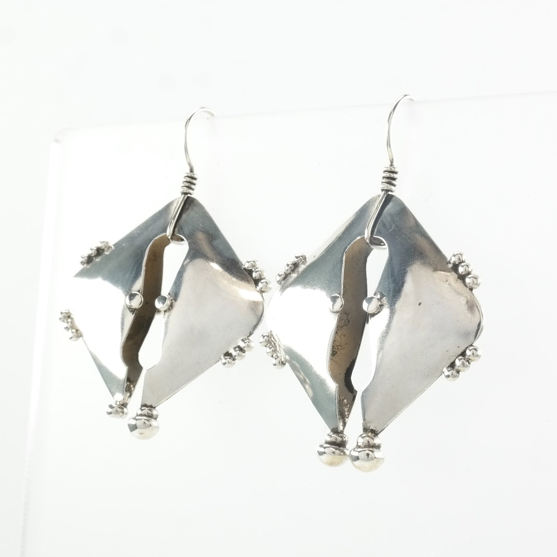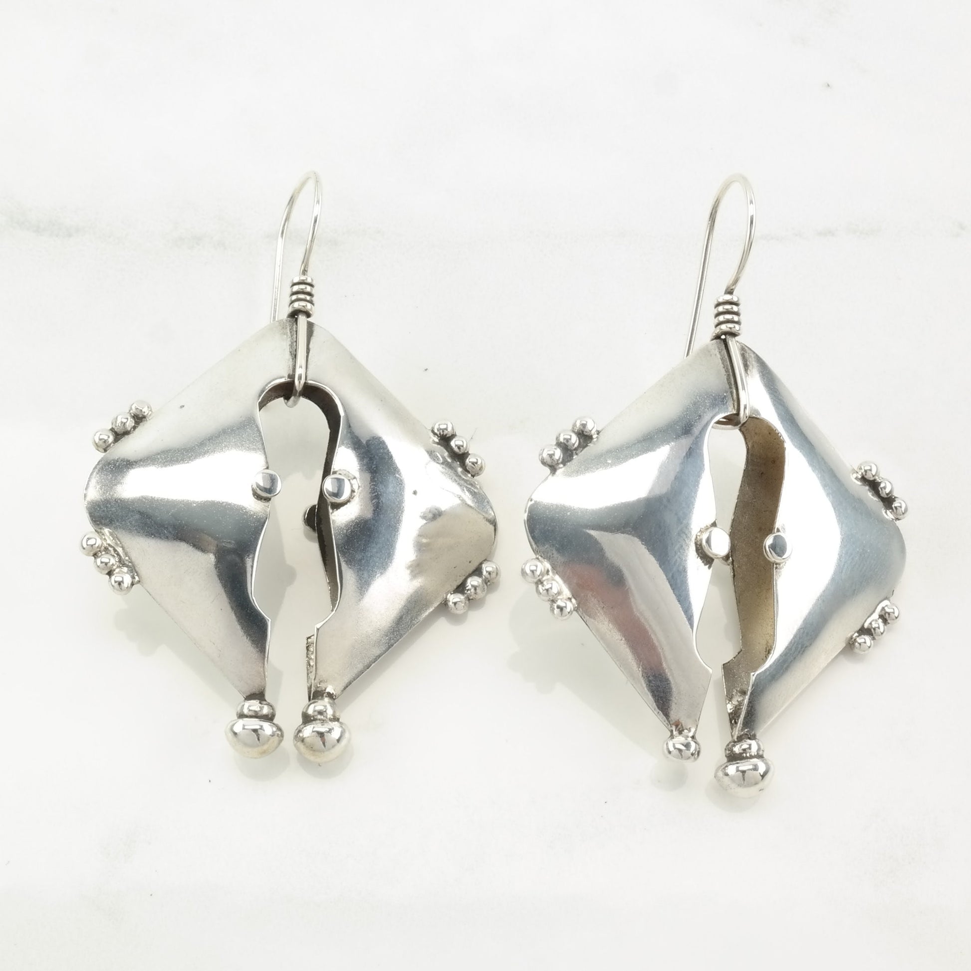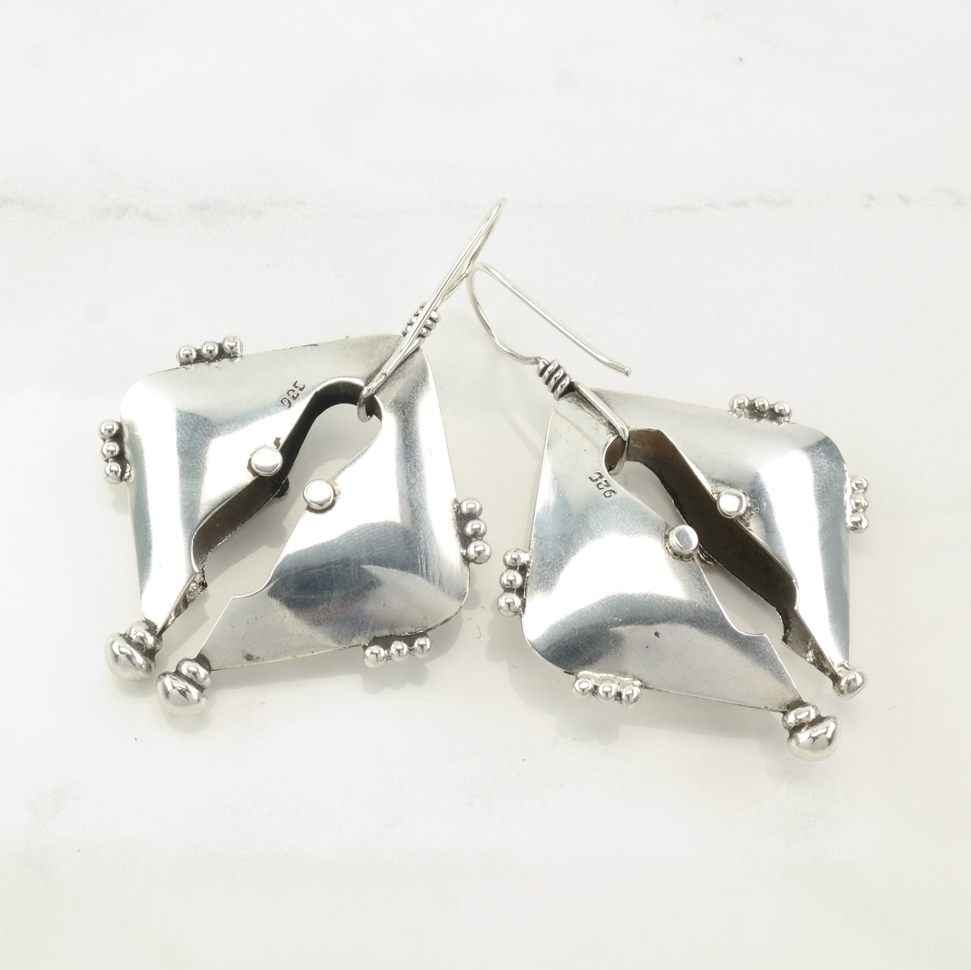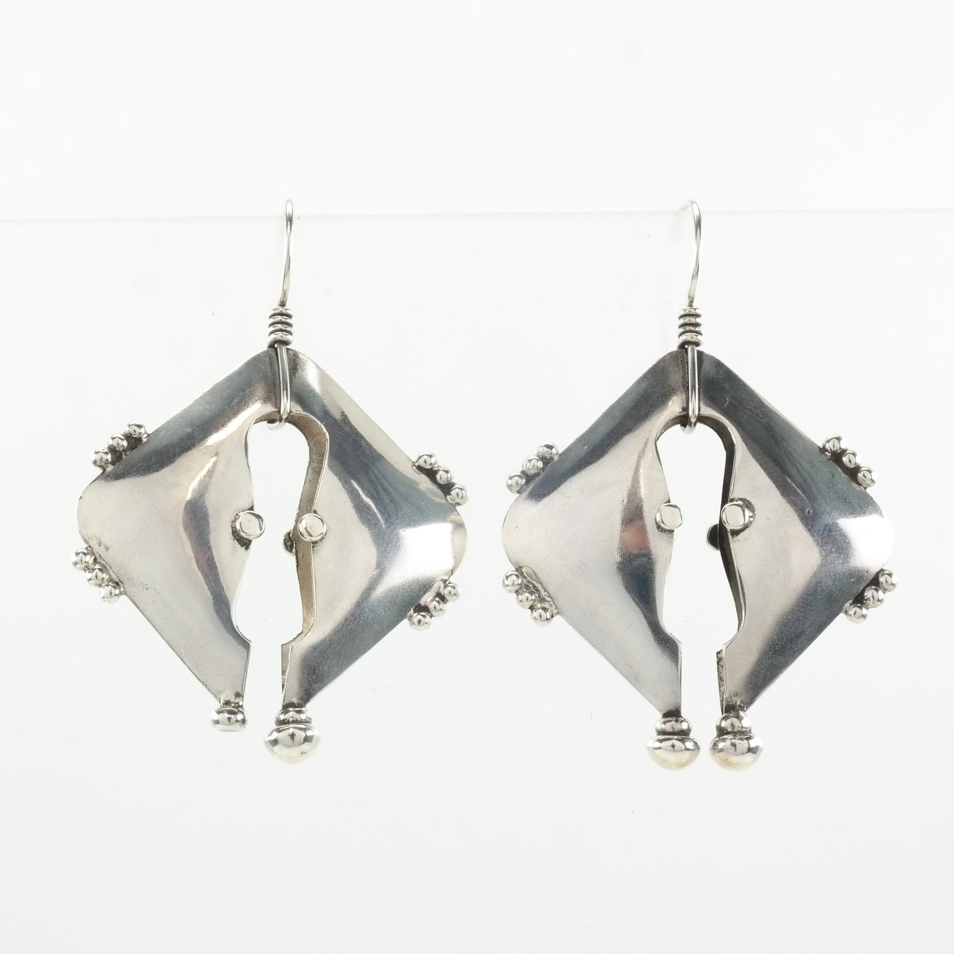 These vintage sterling silver earrings are 1 9/16" long, and 1 7/16" wide