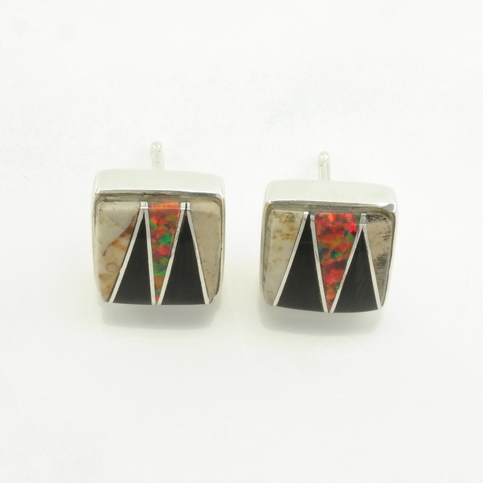 Sterling Silver Black Onyx, Lab Opal, Stone Inlay Earrings Stud