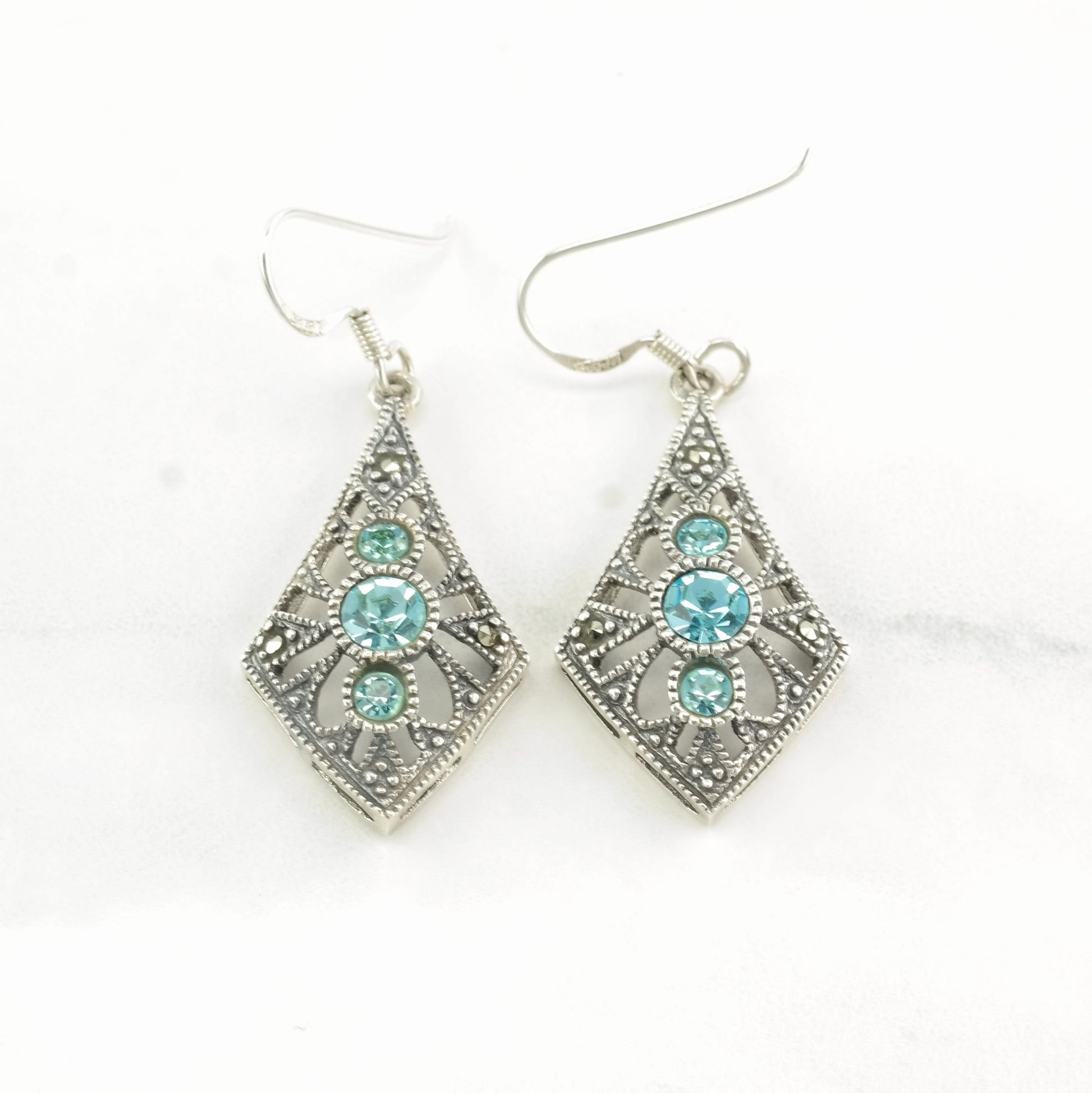 Sterling Silver Blue Blue gemstone Ornate Earrings Fish hook