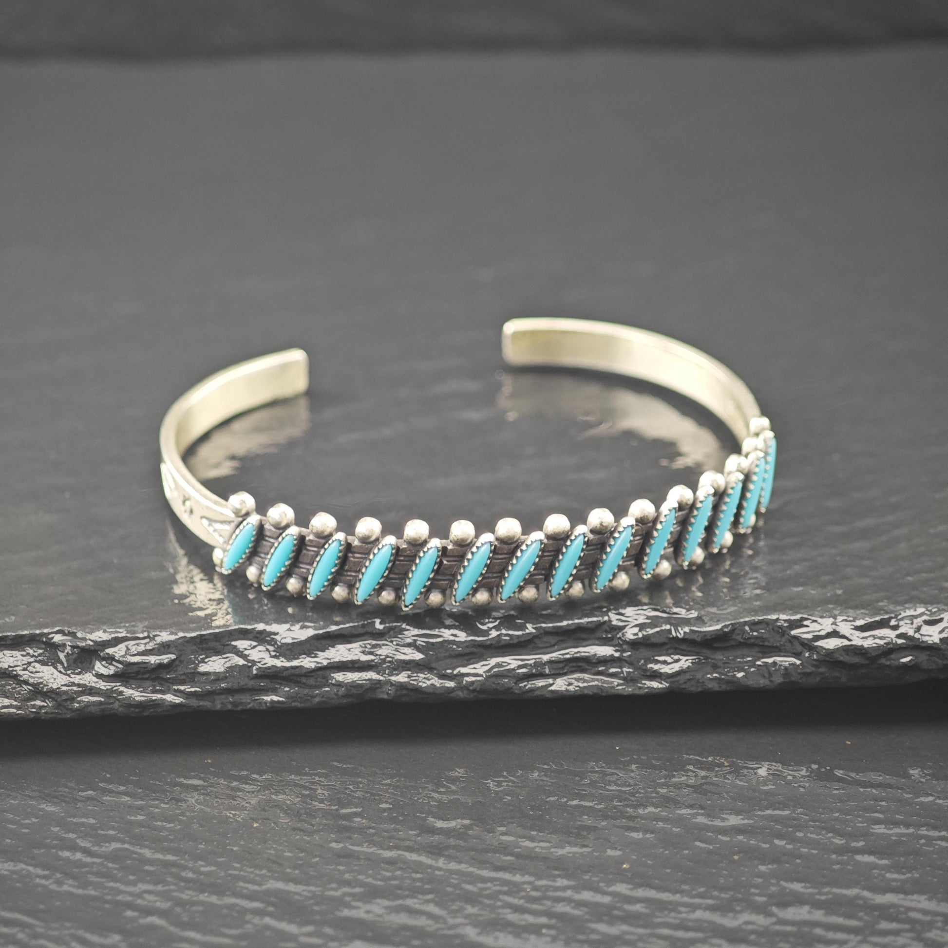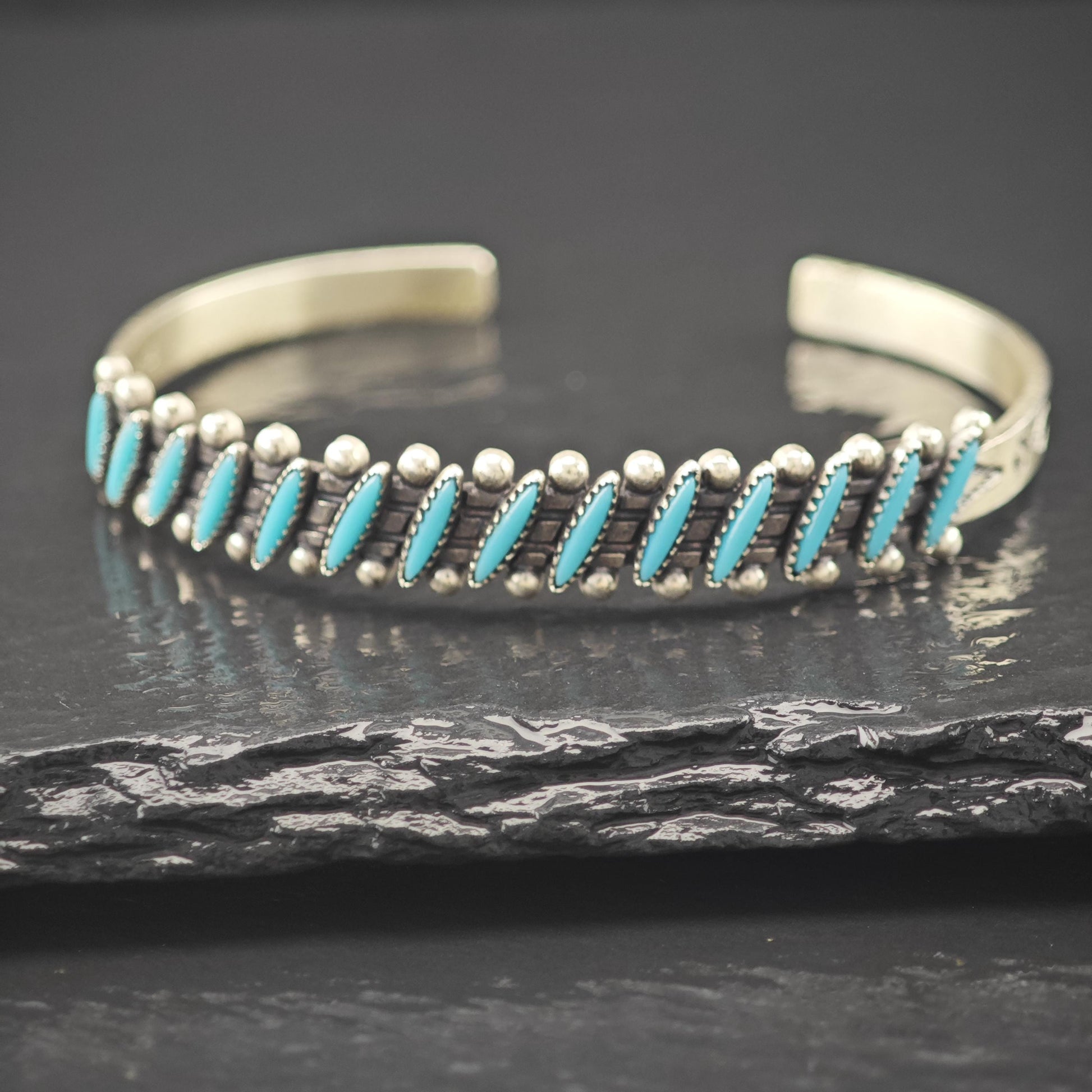 Sterling Silver Fred Harvey Era Block Turquoise Cluster Cuff Bracelet