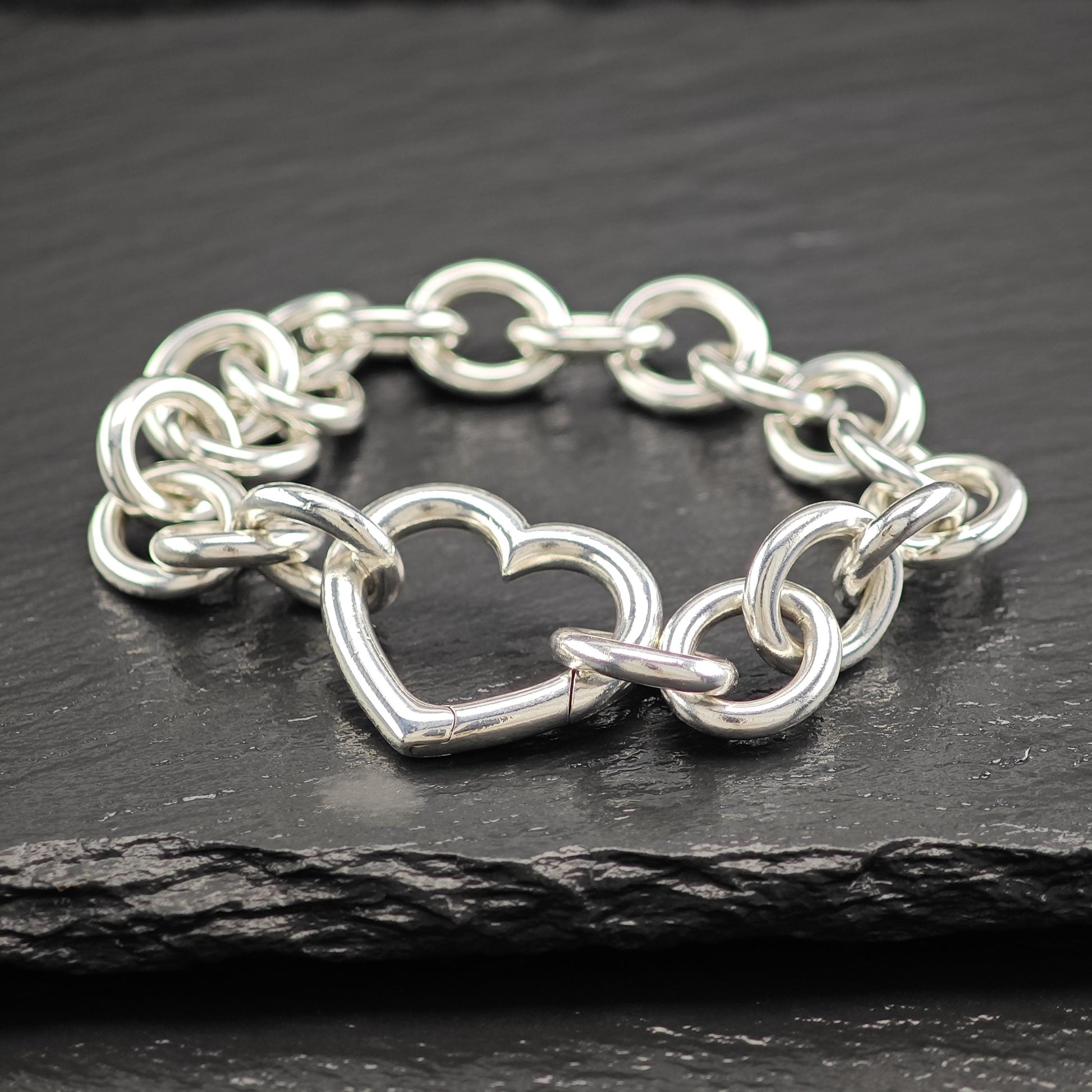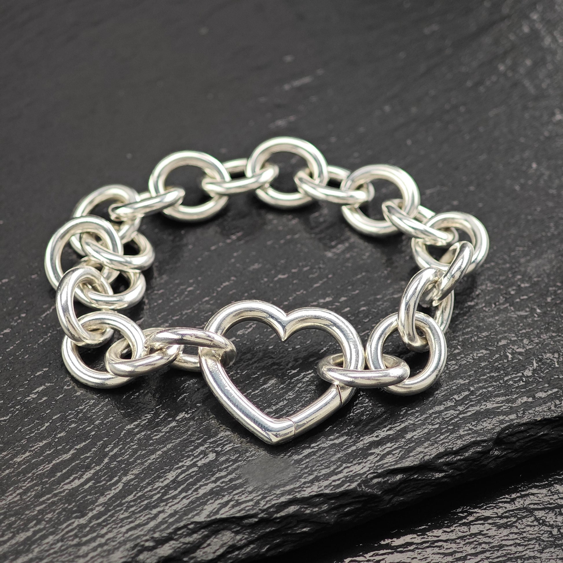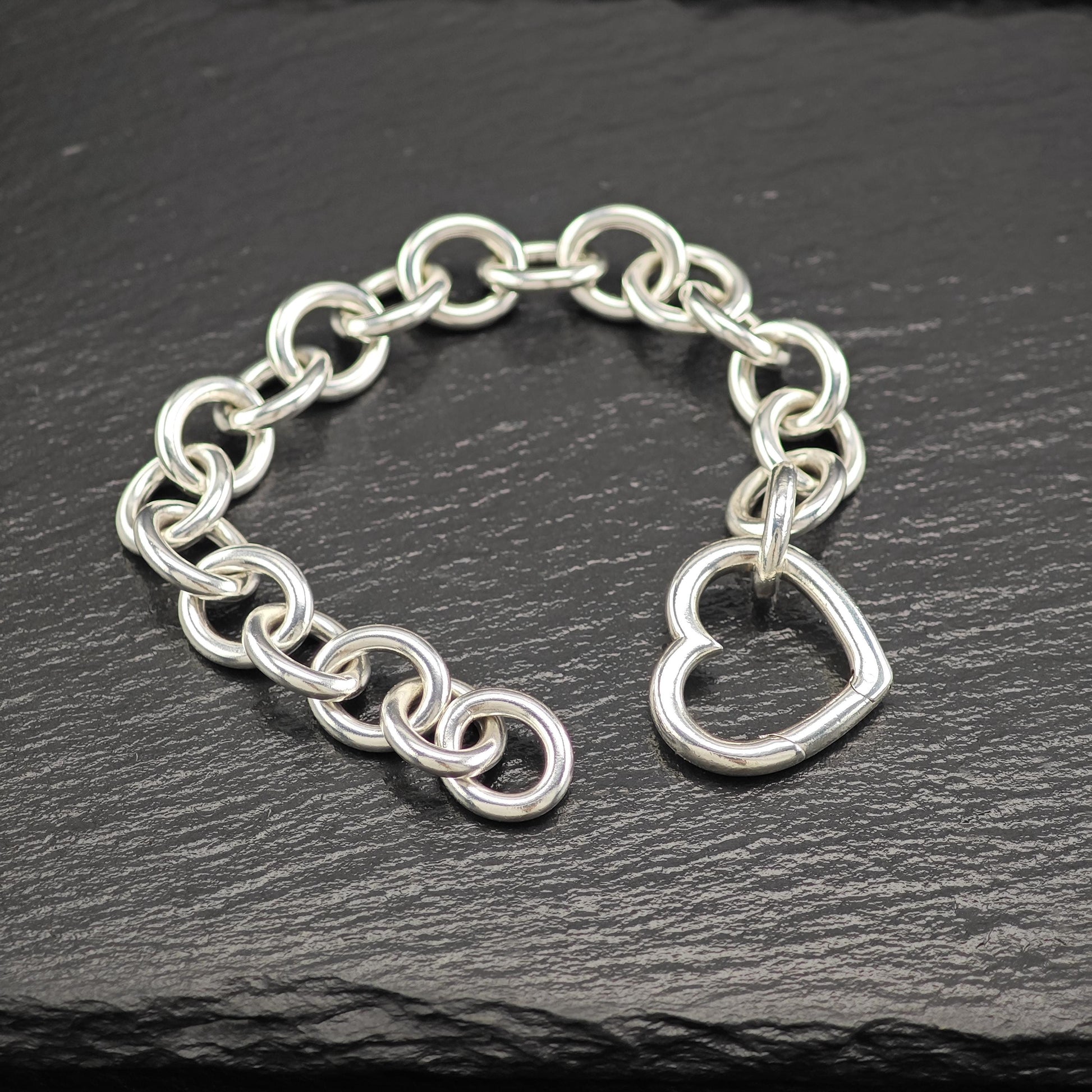 Sterling Silver Large Tiffany Curb Link Bracelet Heart Design