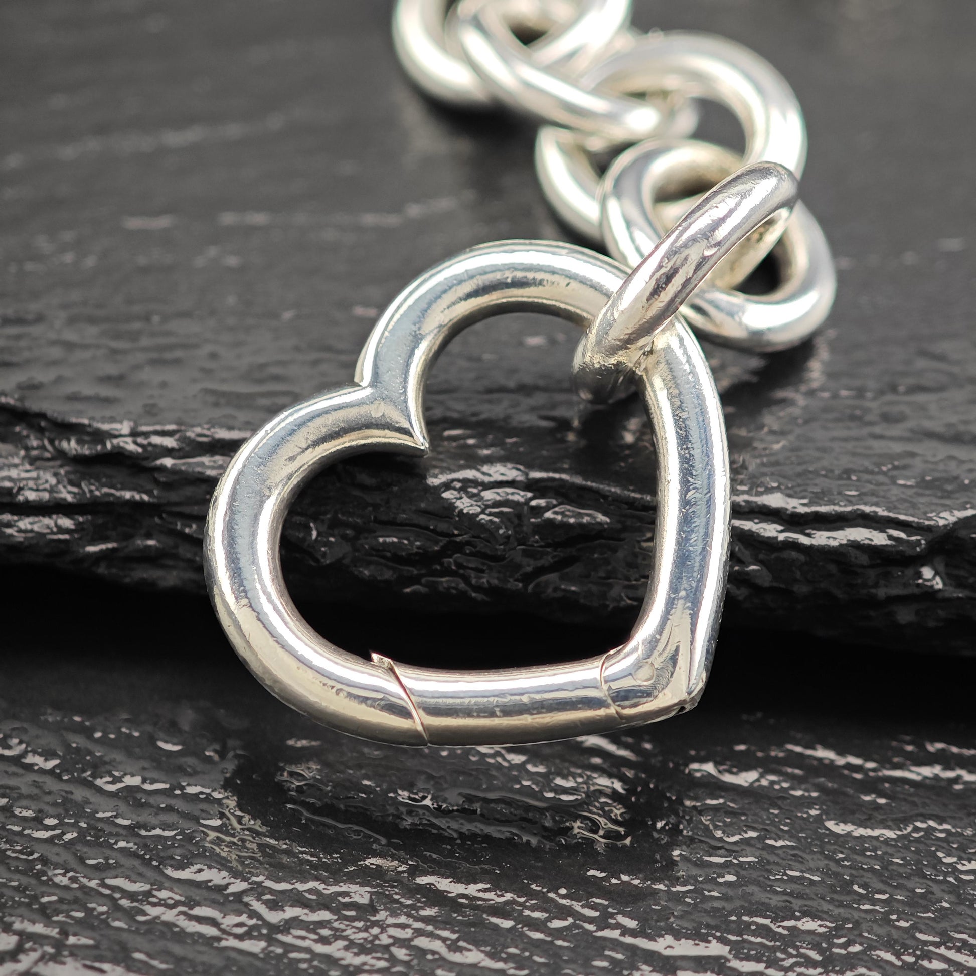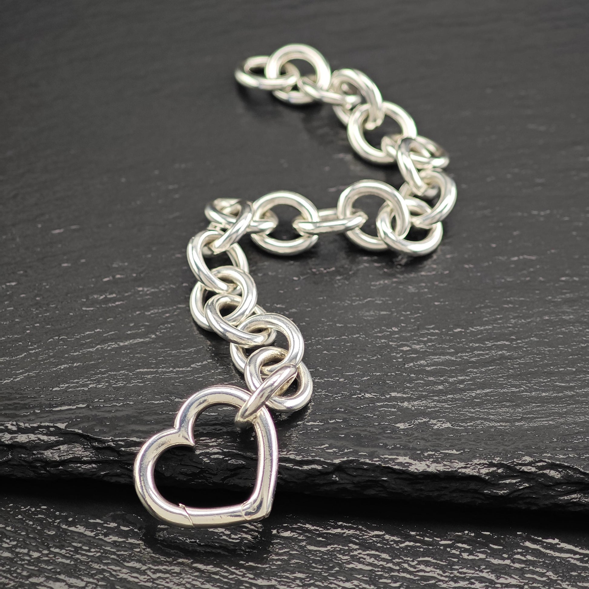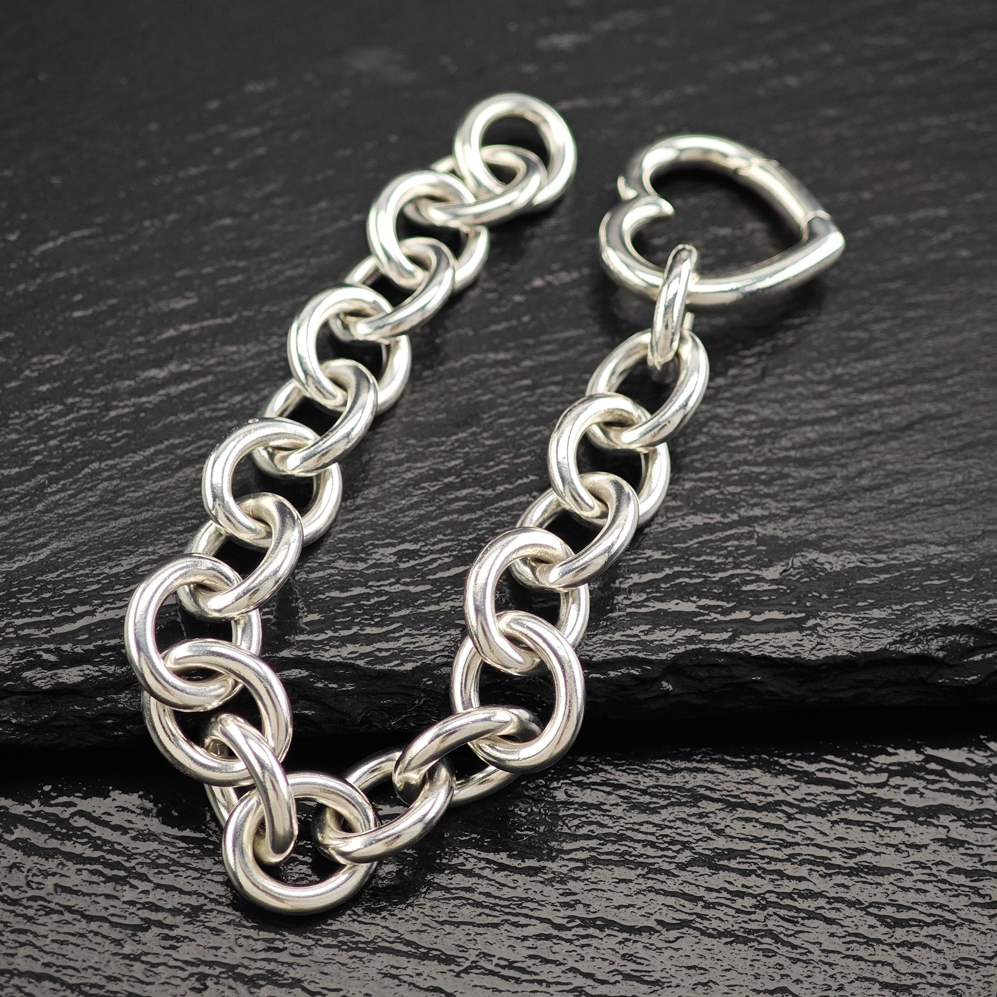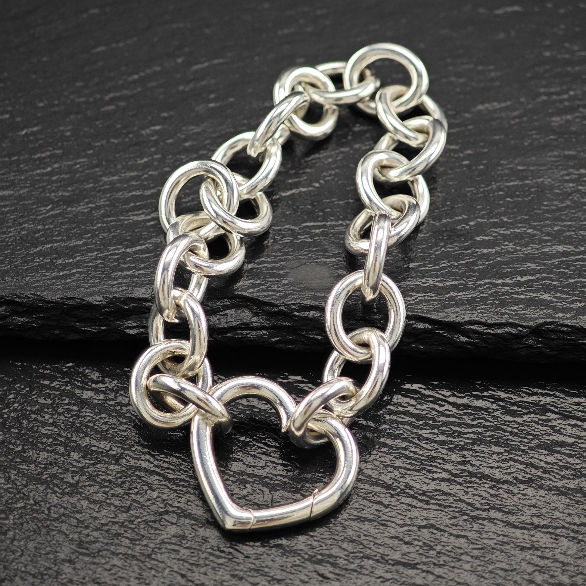 Sterling Silver Large Tiffany Curb Link Bracelet Heart Design