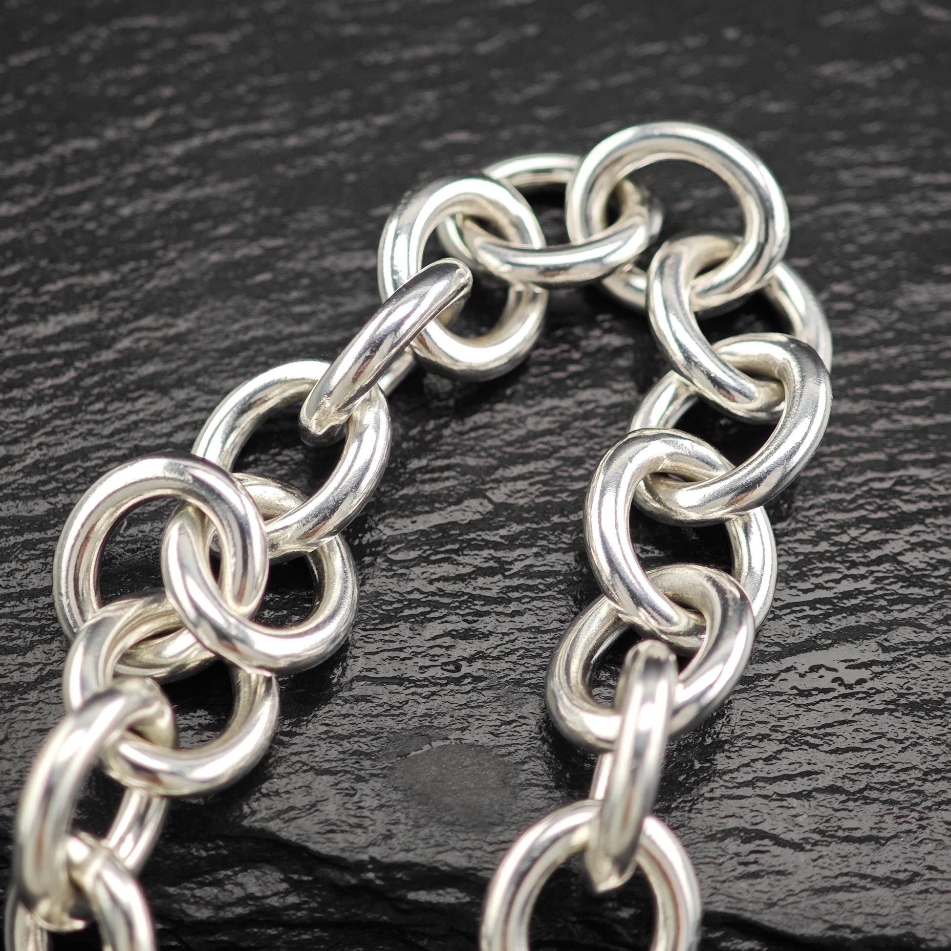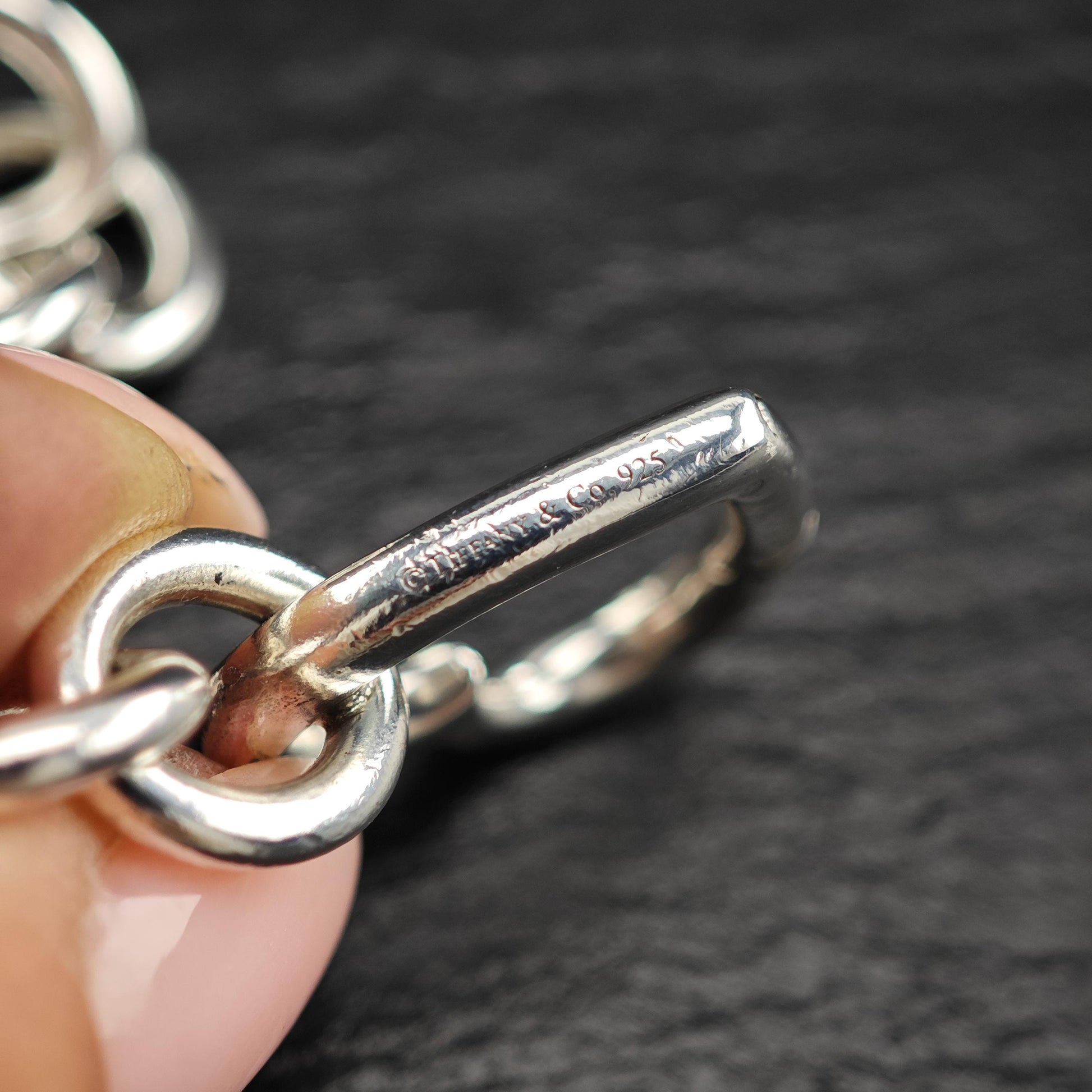 The links of this bracelet measure approximately 12.5 x 14 mm, showcasing the classic curb link design that Tiffany is renowned for. The condition is excellent, with the bracelet having been professionally cleaned and polished, exhibiting only age-appropriate wear, if any.