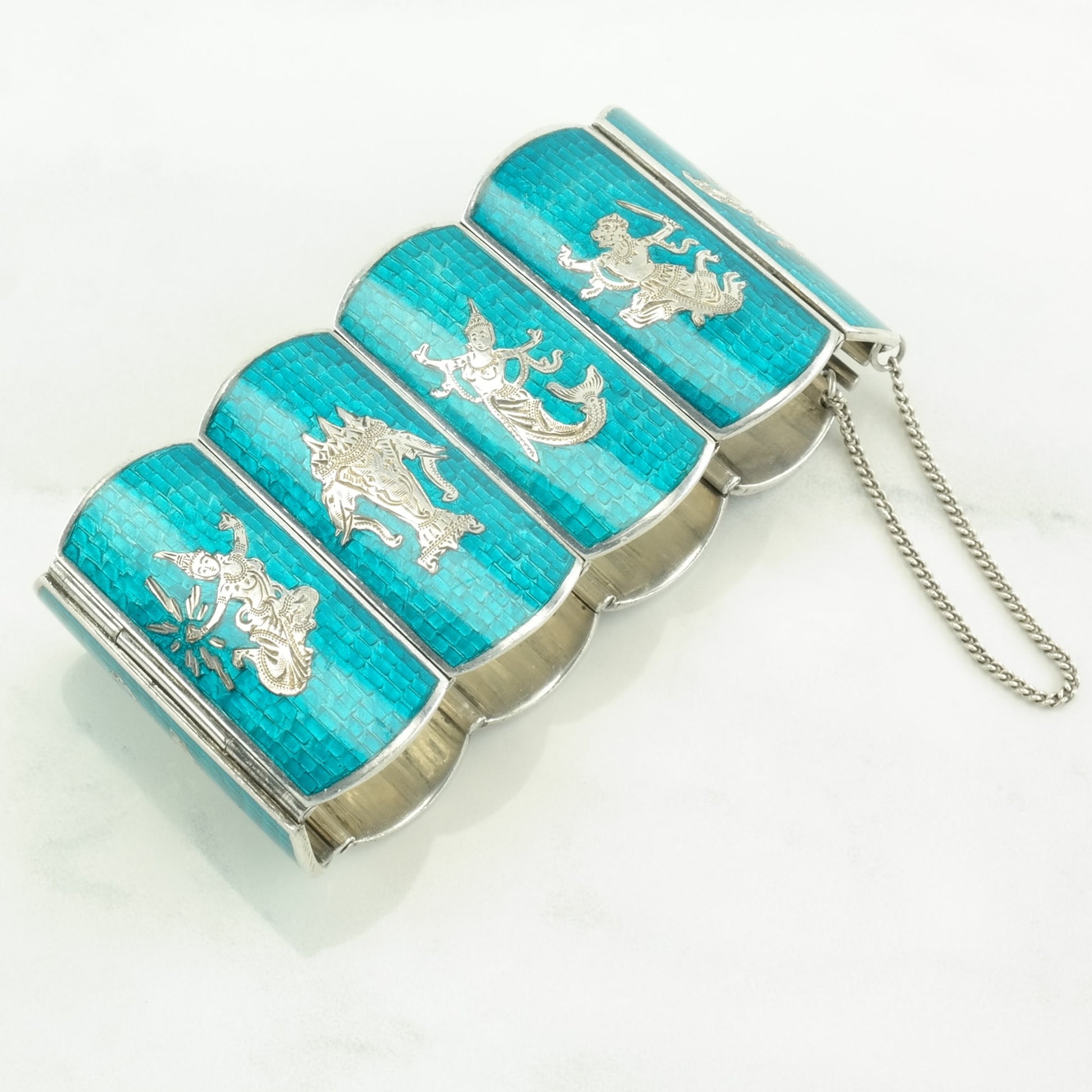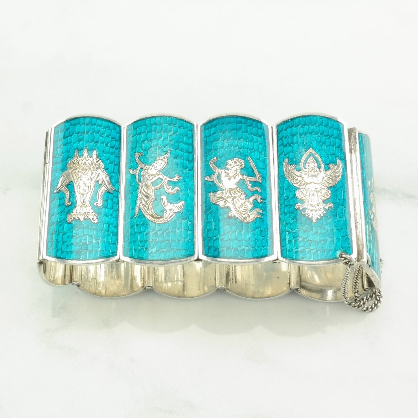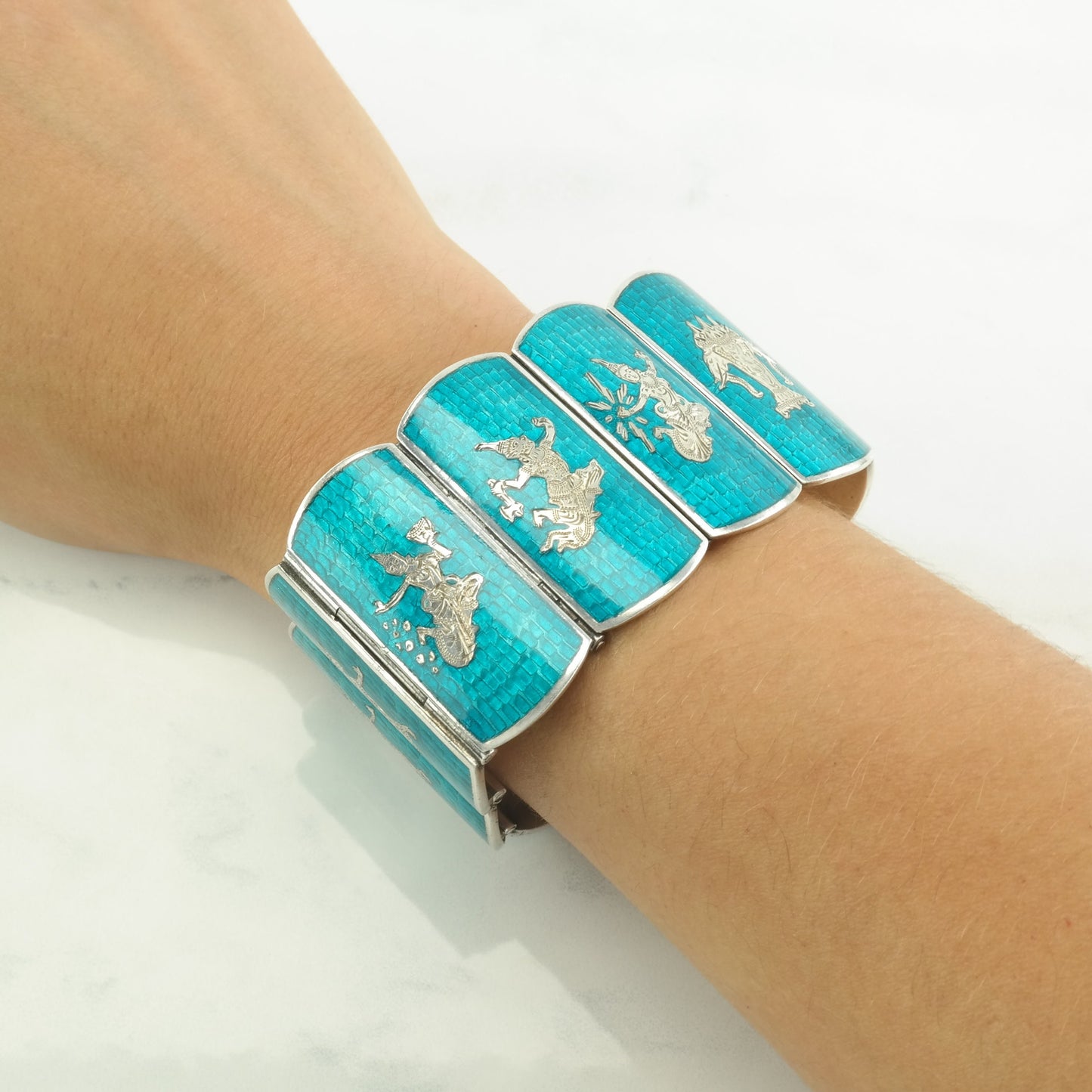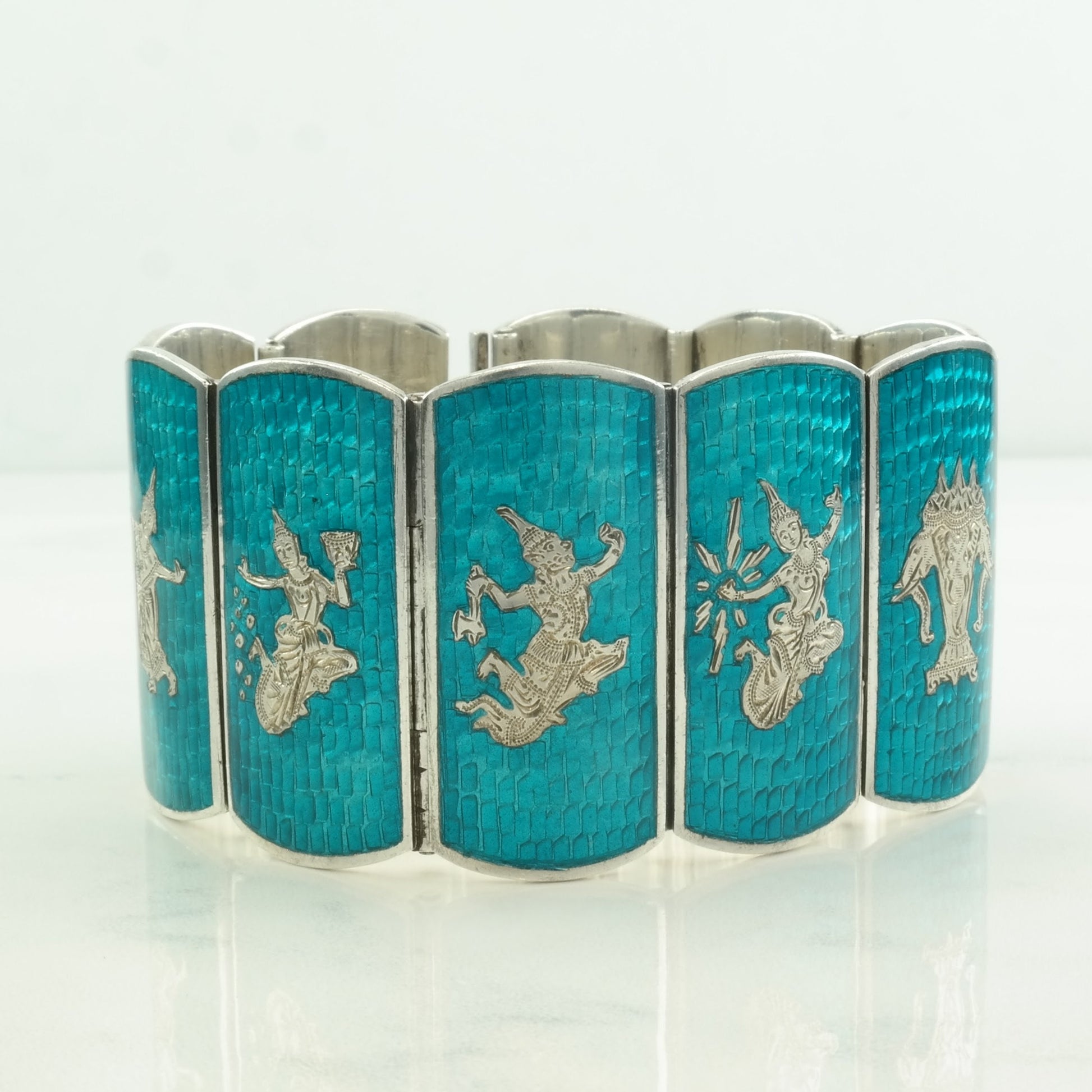 Sterling Silver Link Bracelet Blue Enamel