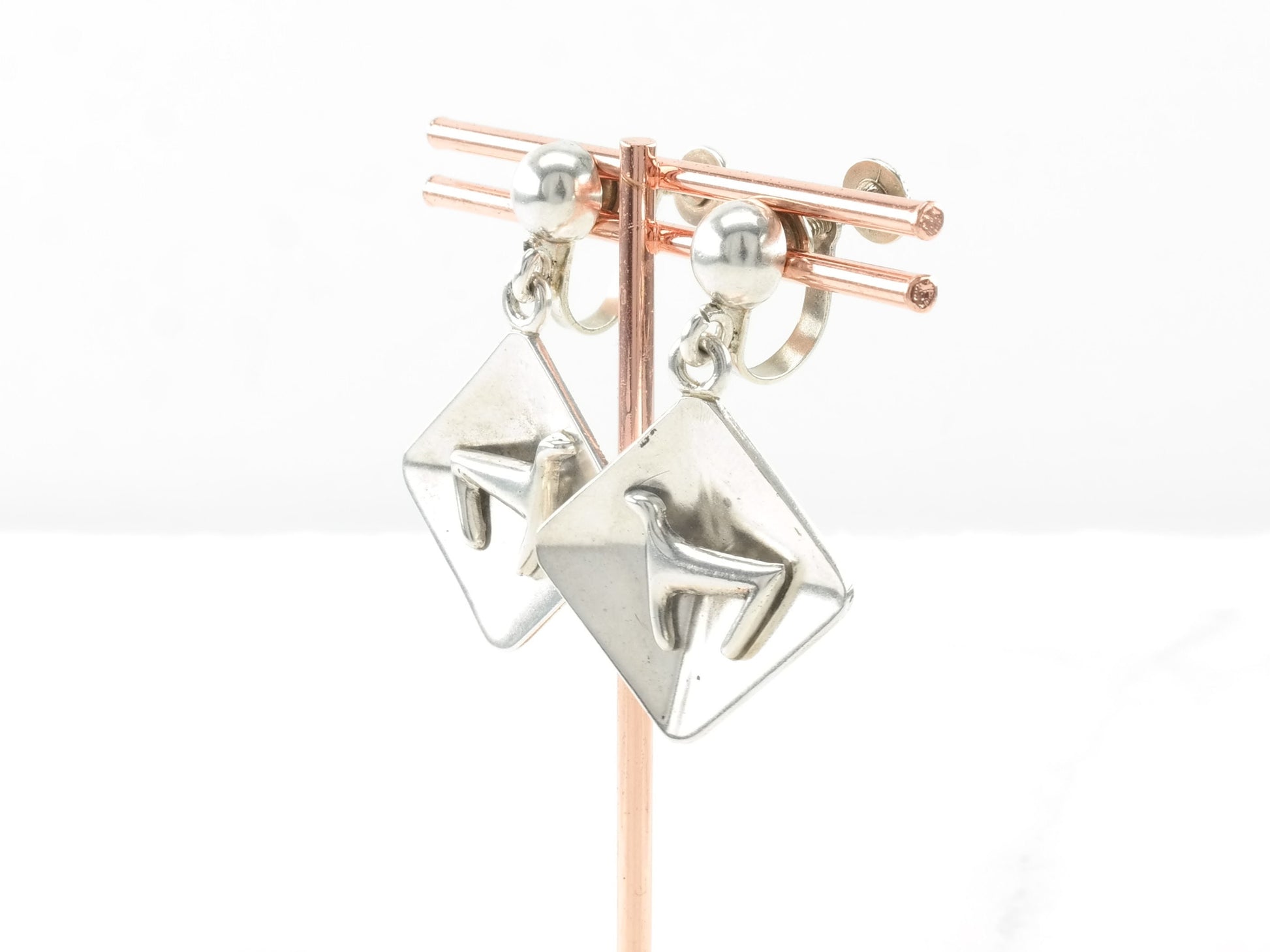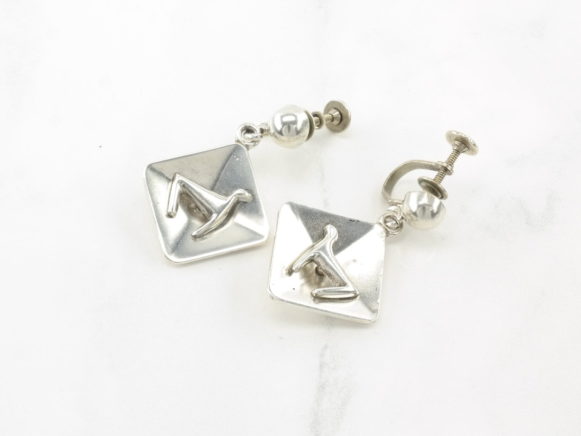 Sterling Silver Modernist Animal Earrings Screw back/Dangle