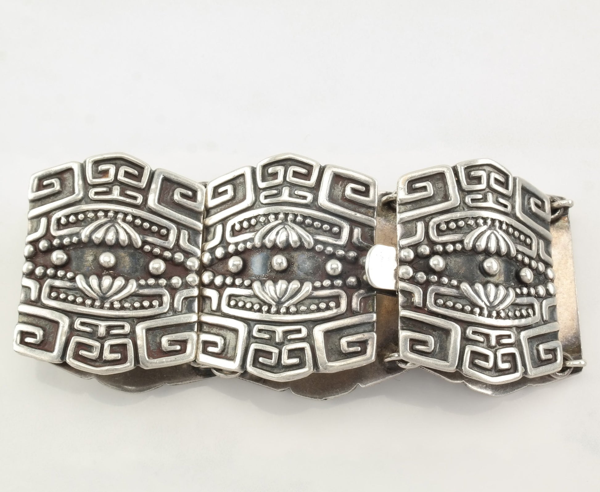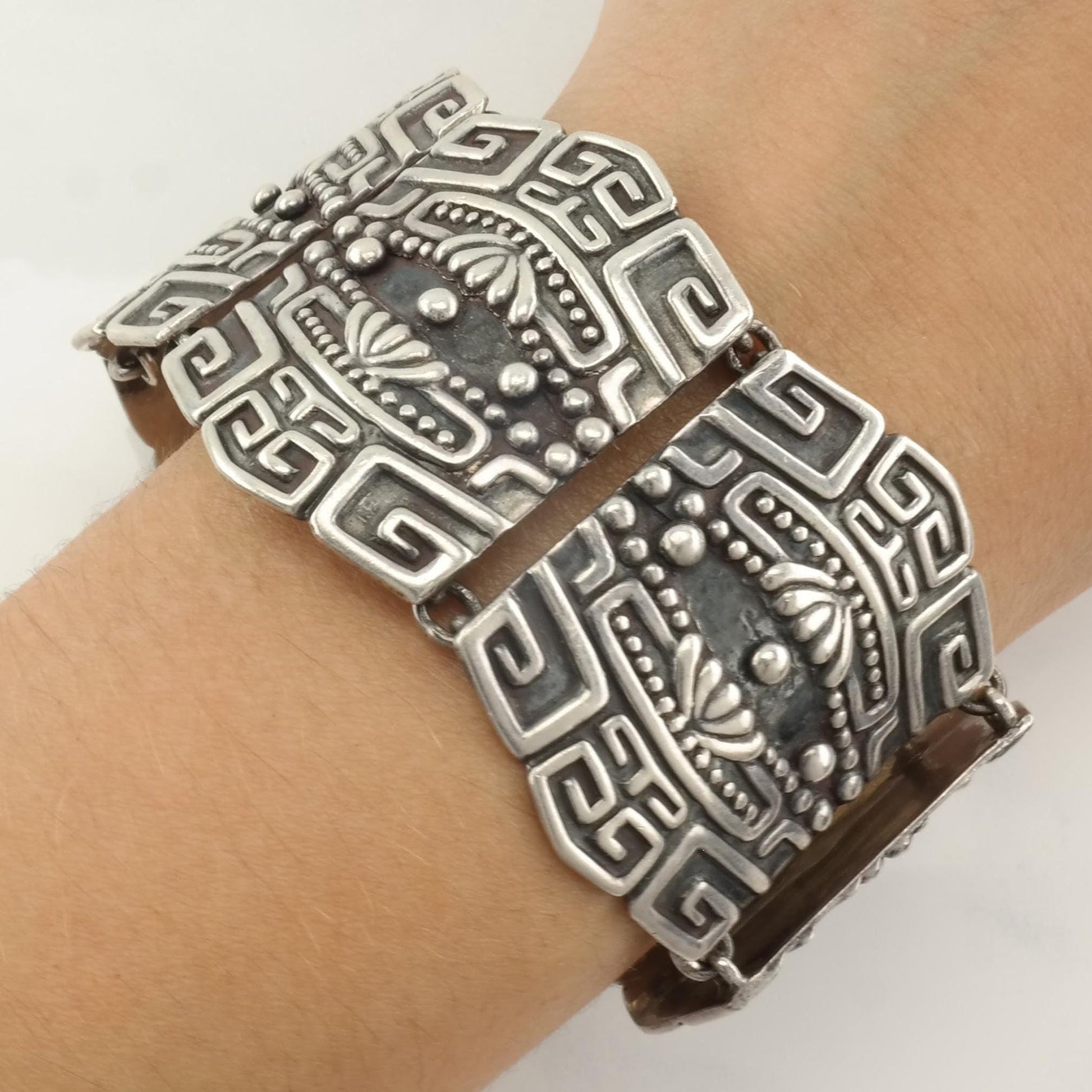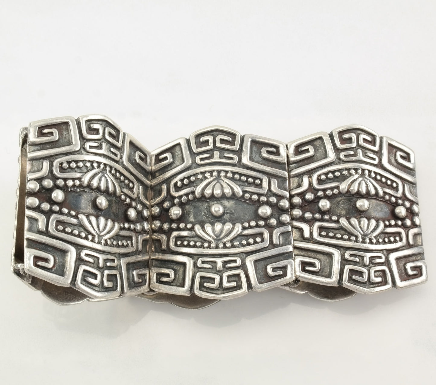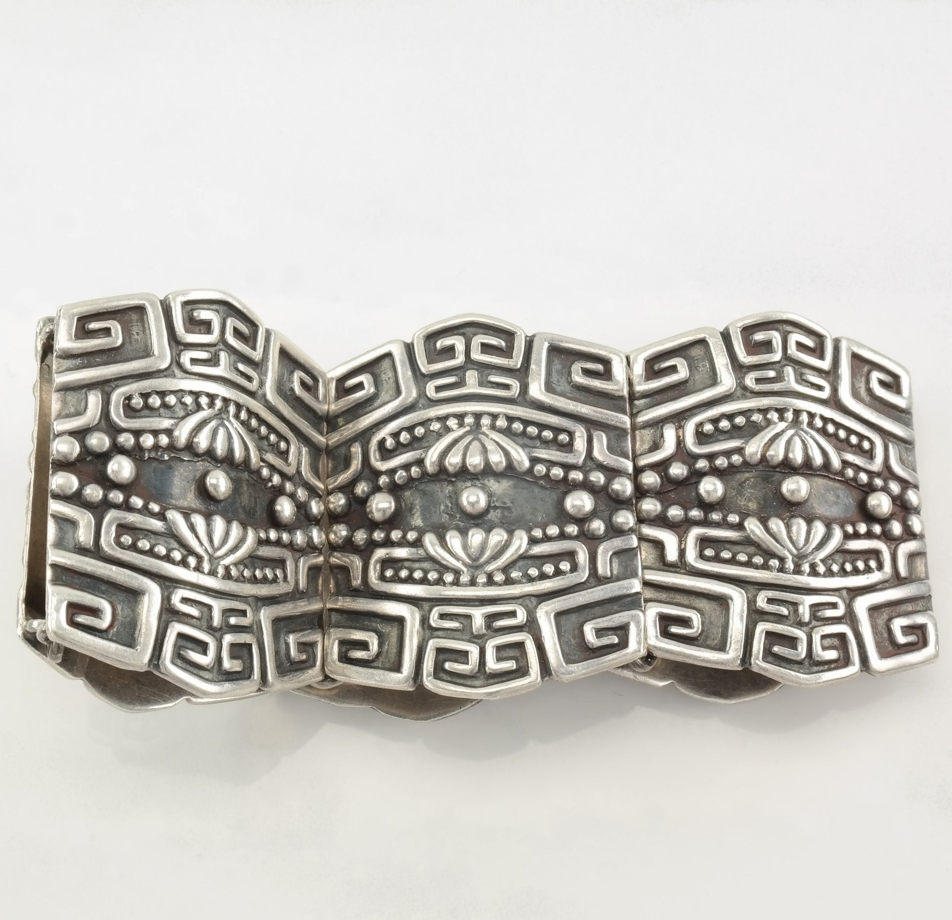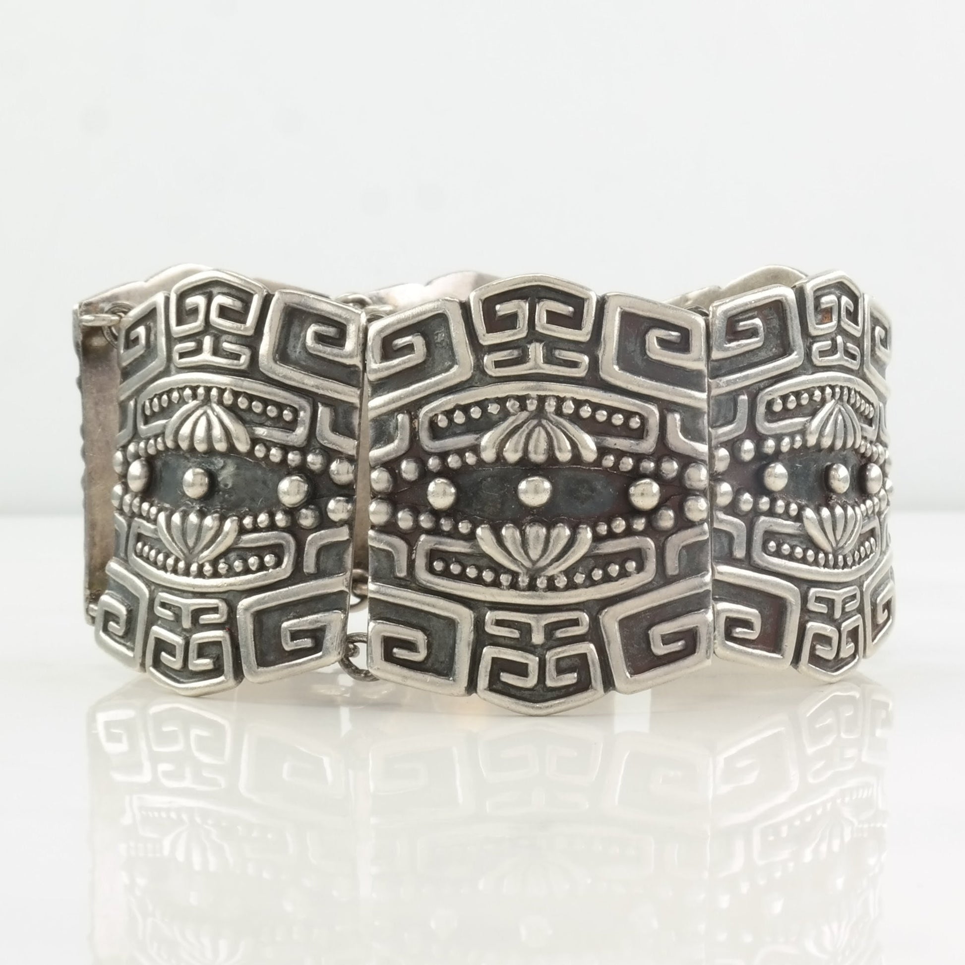 A gorgeous intricate overlay design set in sterling silver. This vintage bracelet will turn heads.