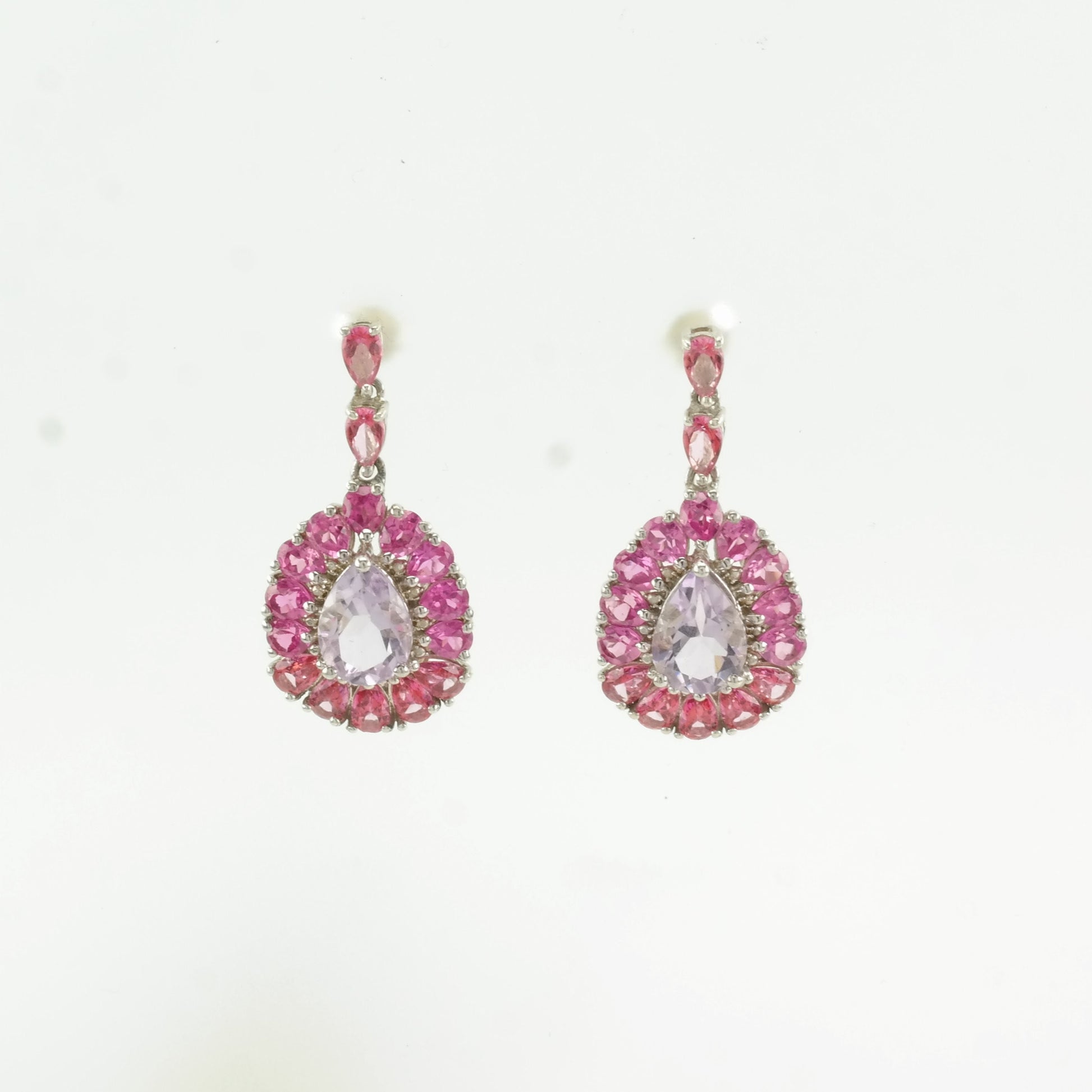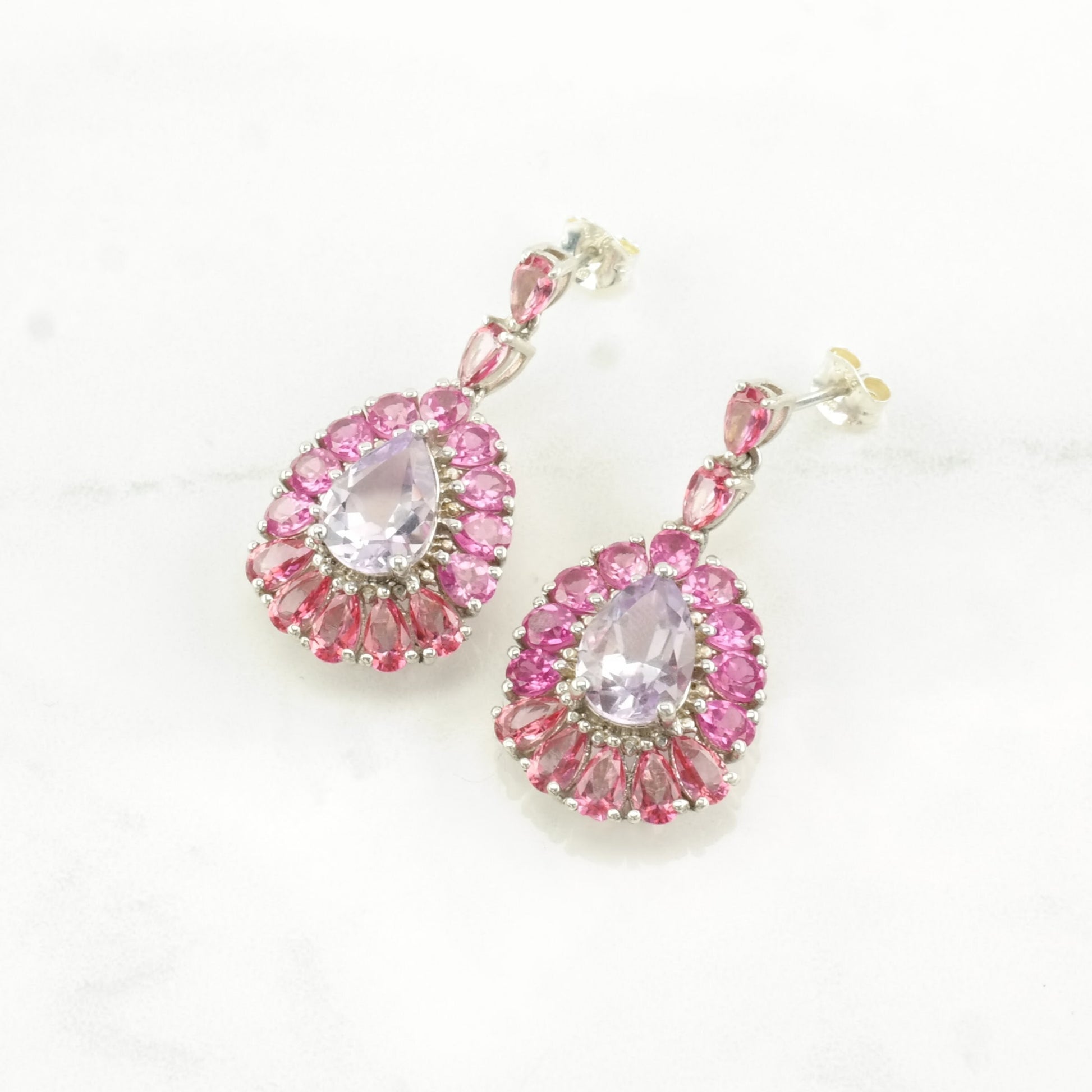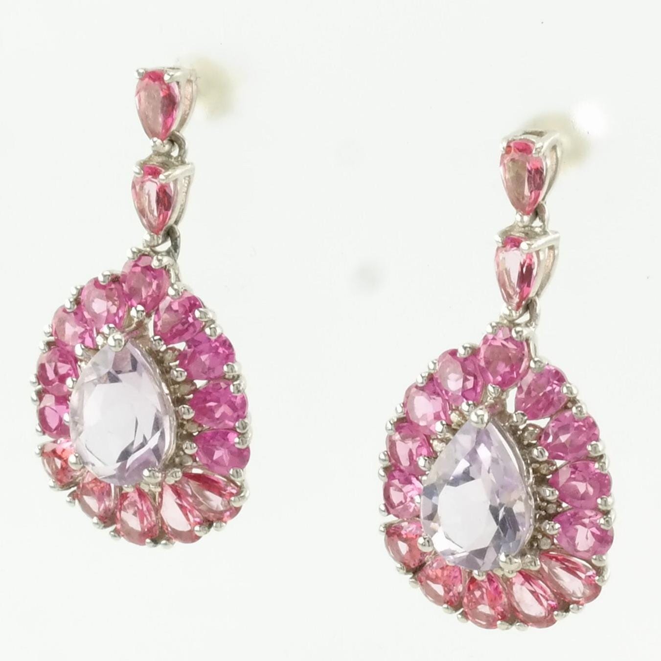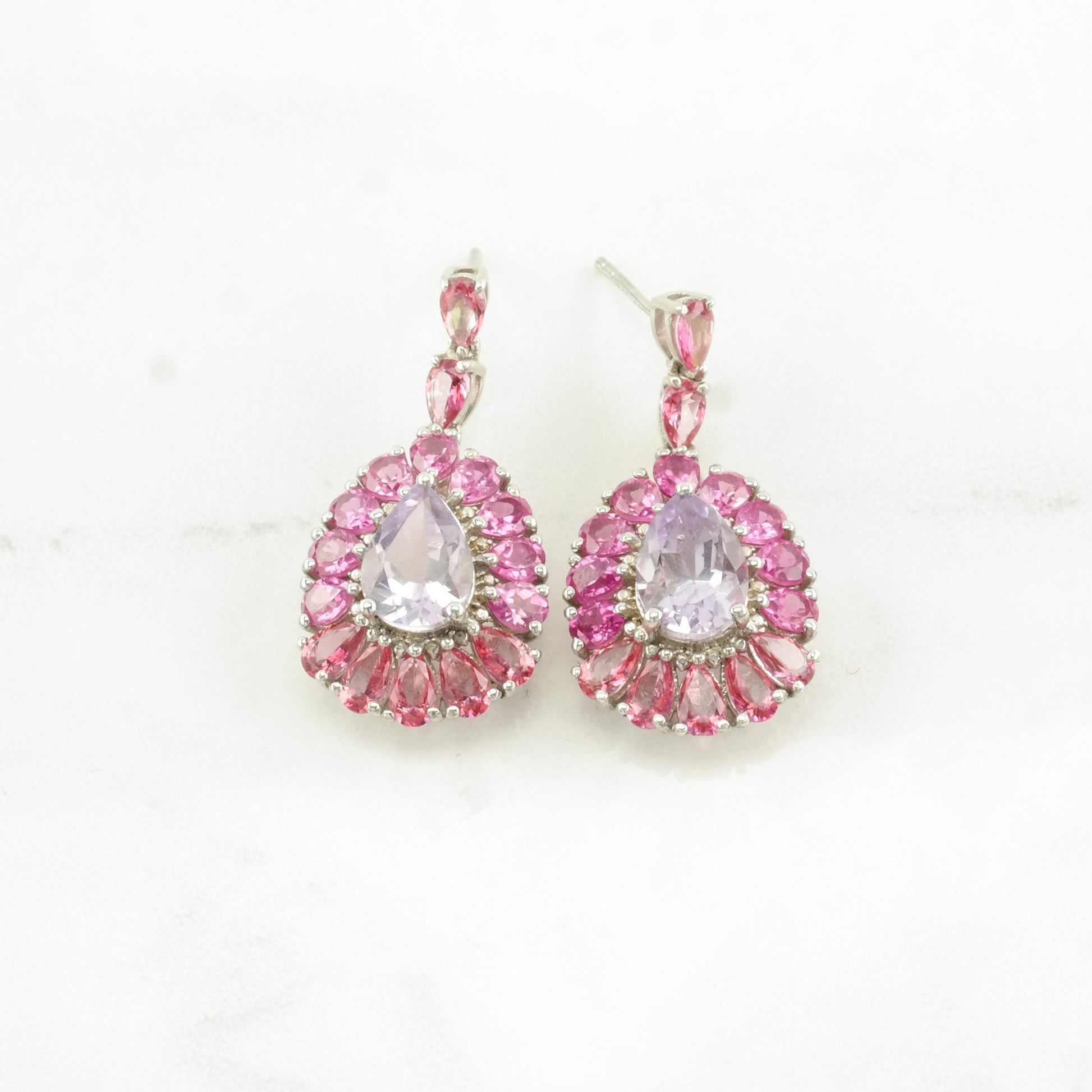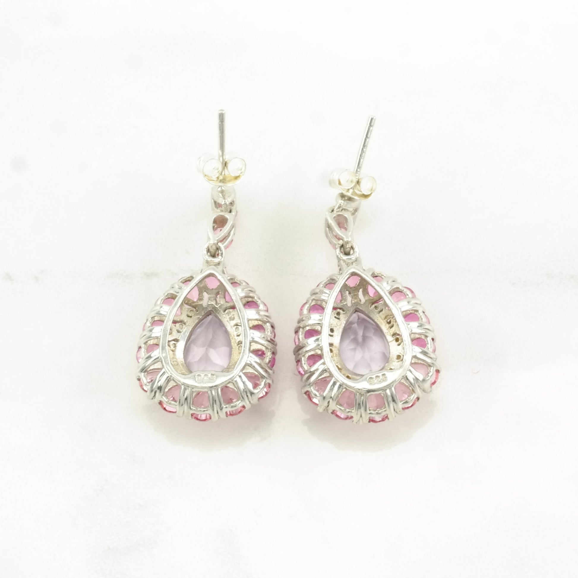 Sterling Silver Pink Lab Sapphire, Created Amethyst Earrings Stud/dangle