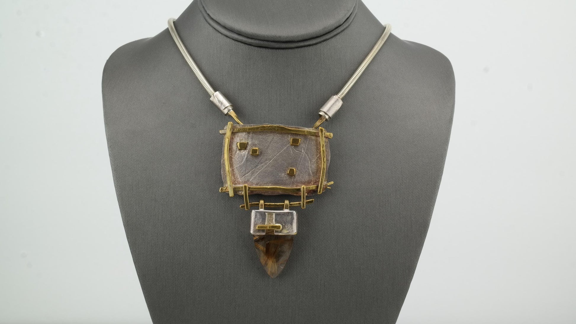 Studio Crafted Sterling Silver & Rutilated Quartz Necklace | Mixed Metals Pendant | Modernist Design
