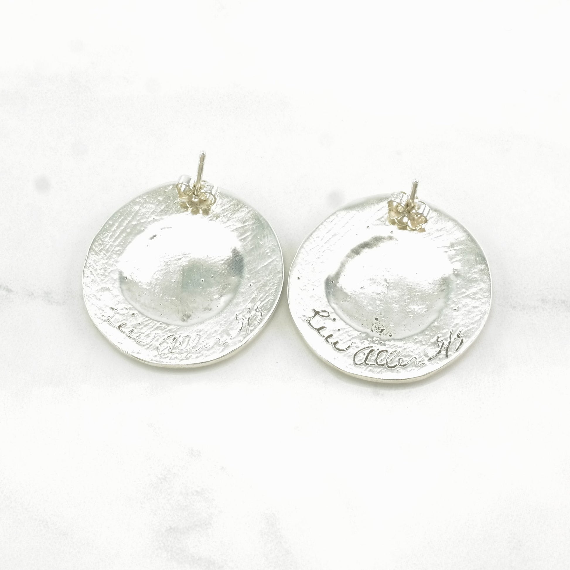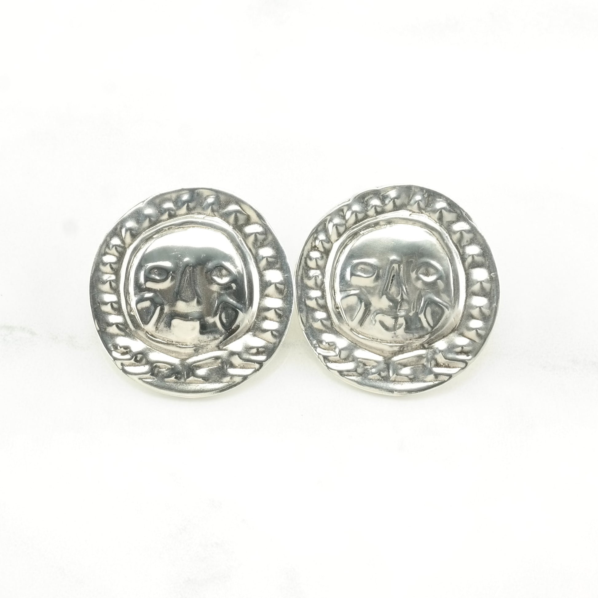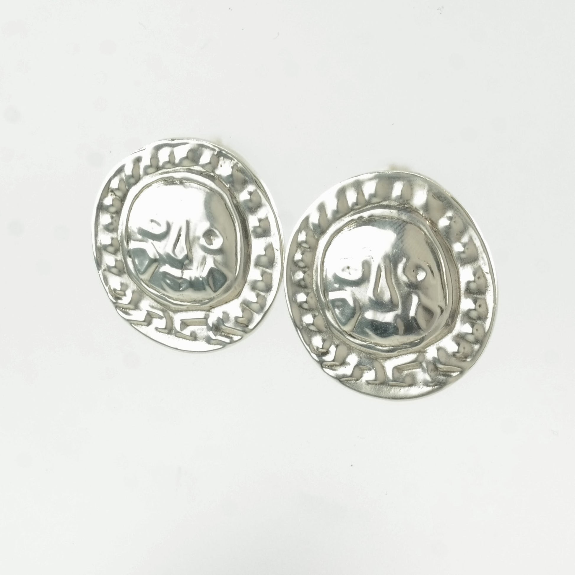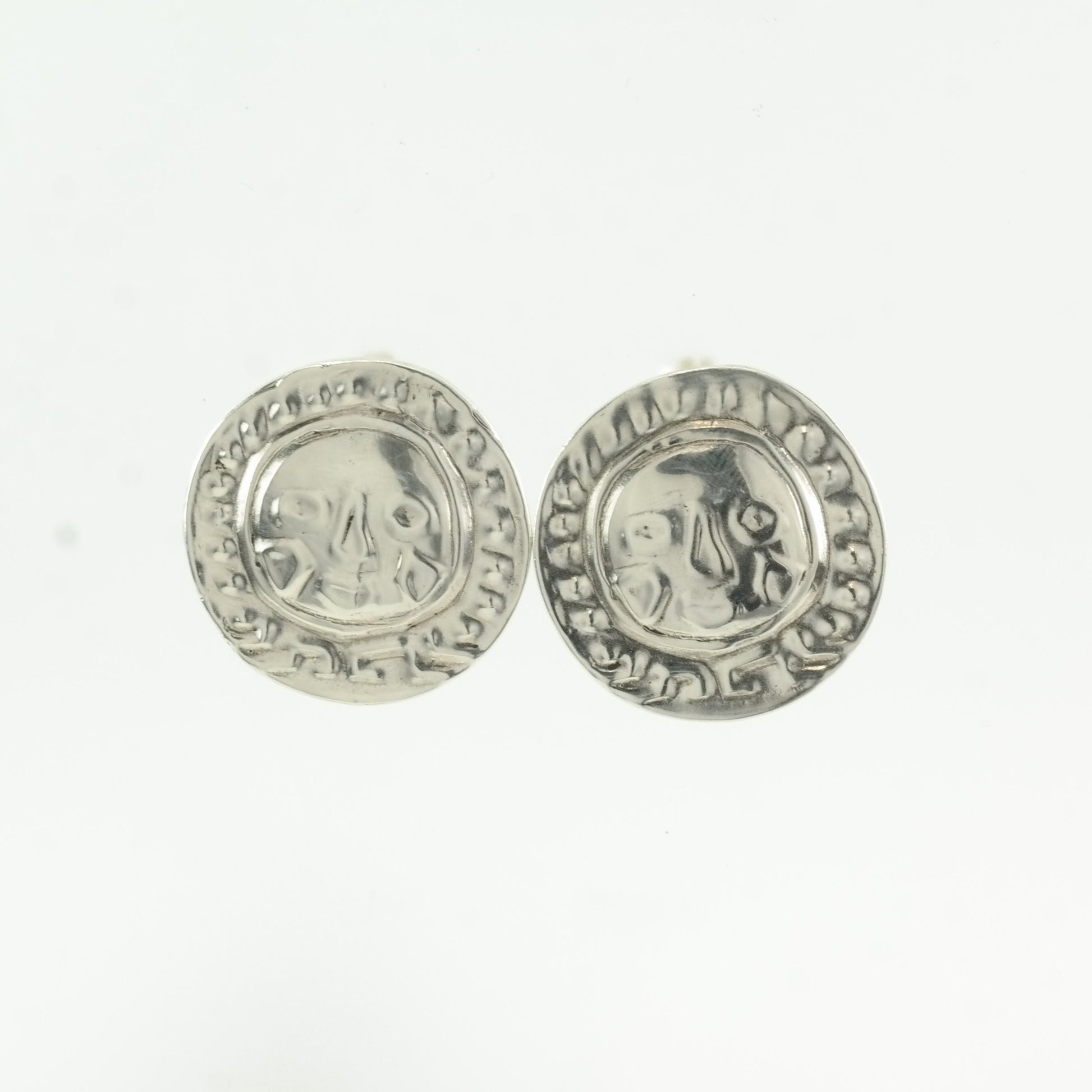 Studio Style Sterling Silver Stamped Face Earrings Stud