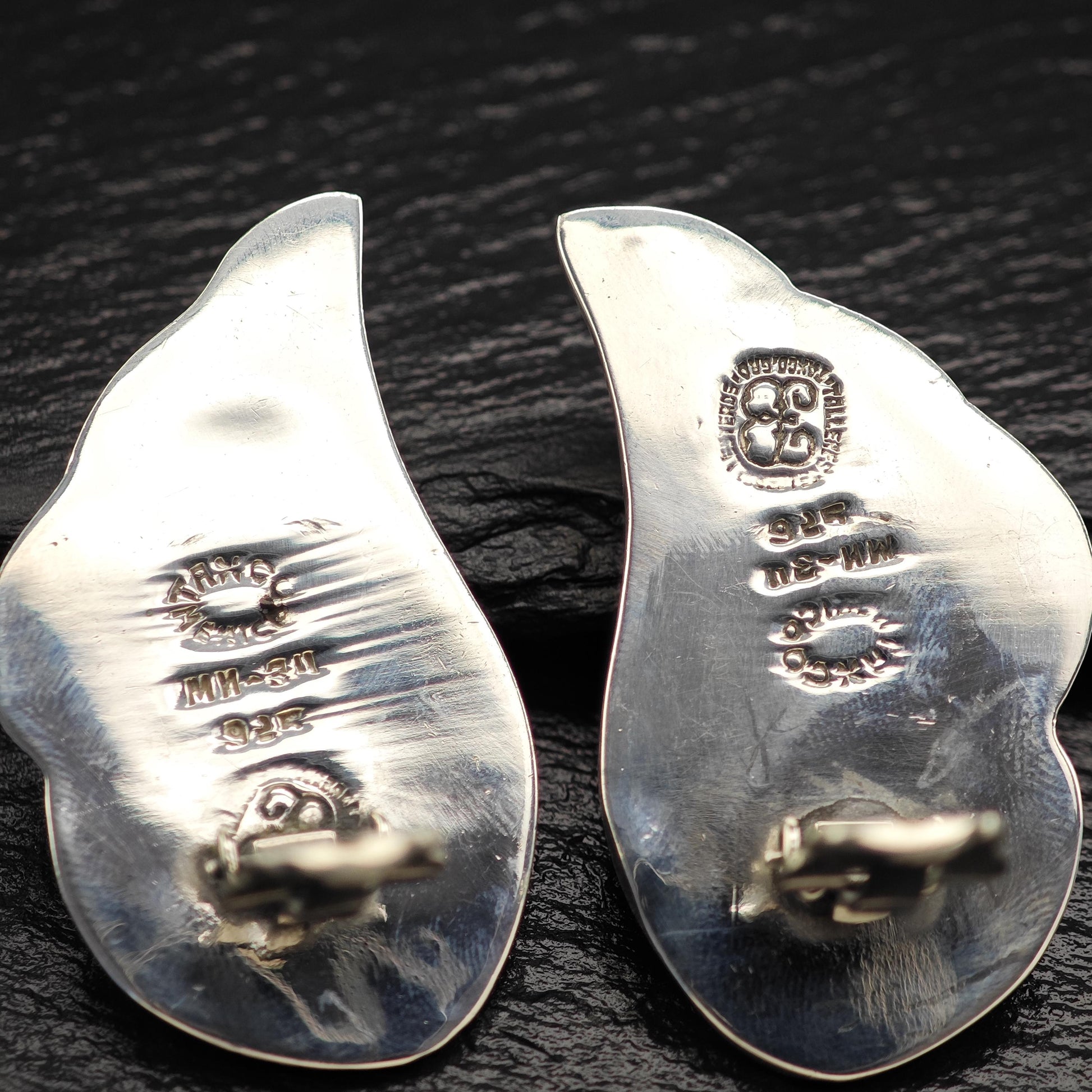 Crafted in Taxco, Mexico, these earrings bear the markings of MM-34 and 925, along with the Talleres de los Ballesteros hallmark, ensuring their authenticity as tested sterling silver. They are in excellent estate condition, having been cleaned and polished to a like-new finish, with only age-appropriate wear, if any.