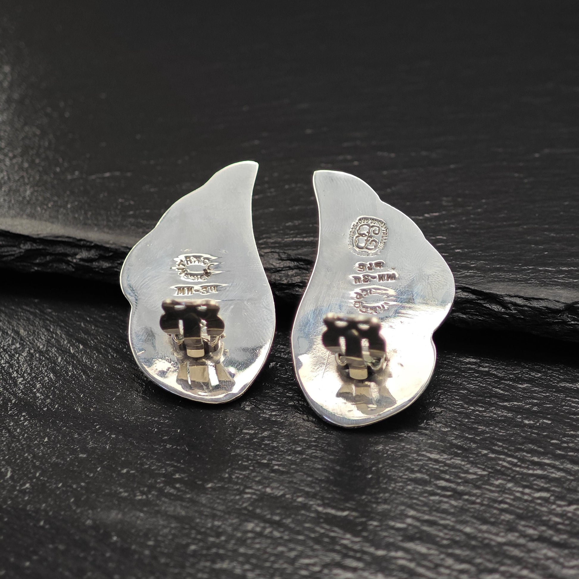 Taxco, Ballesteros Wings Puffy Clip On Earrings Sterling Silver