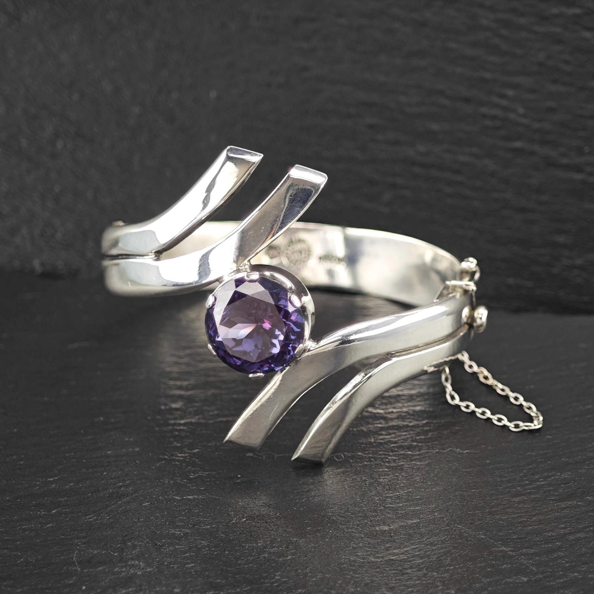 Taxco Color Change Corundum, Bangle Bracelet Sterling Silver